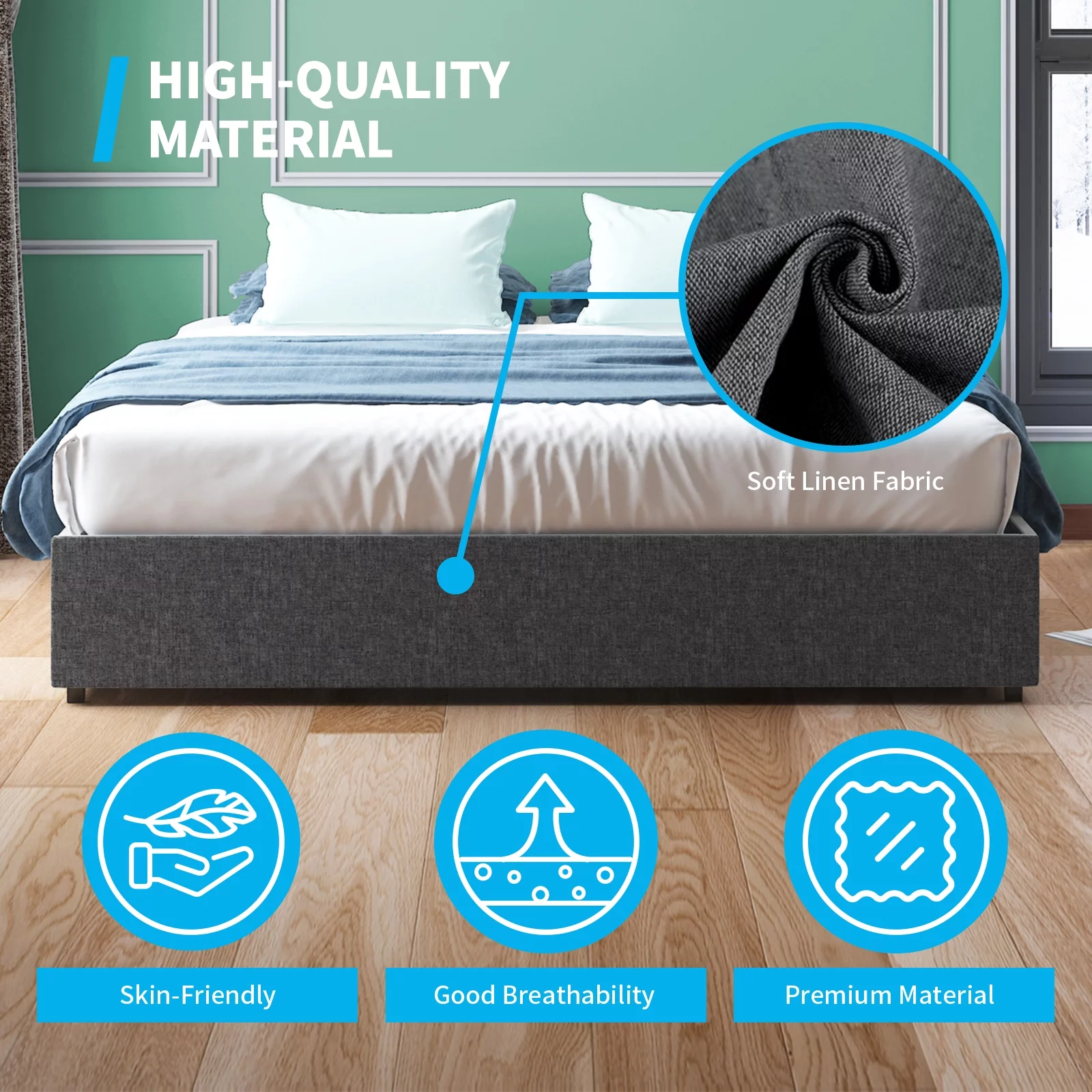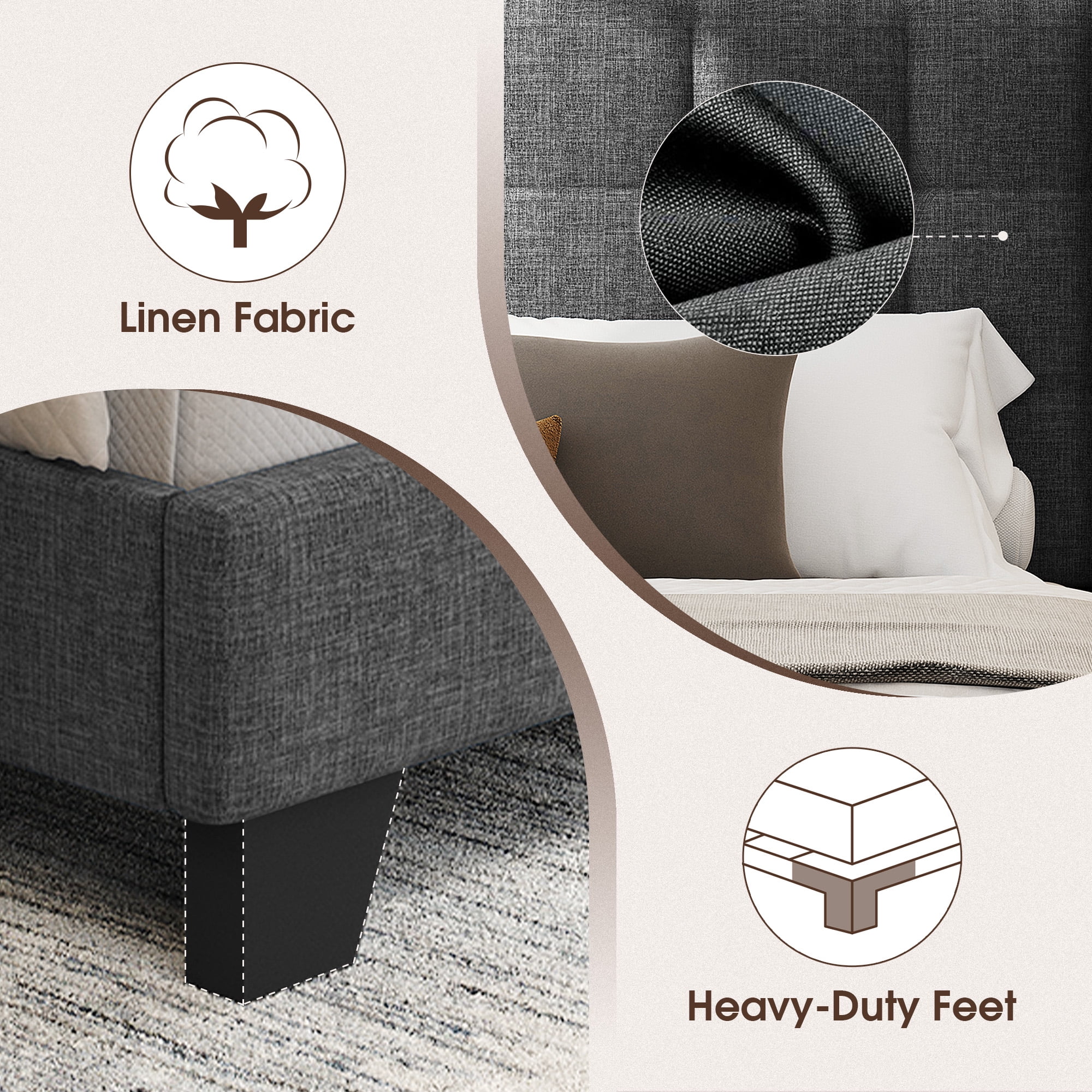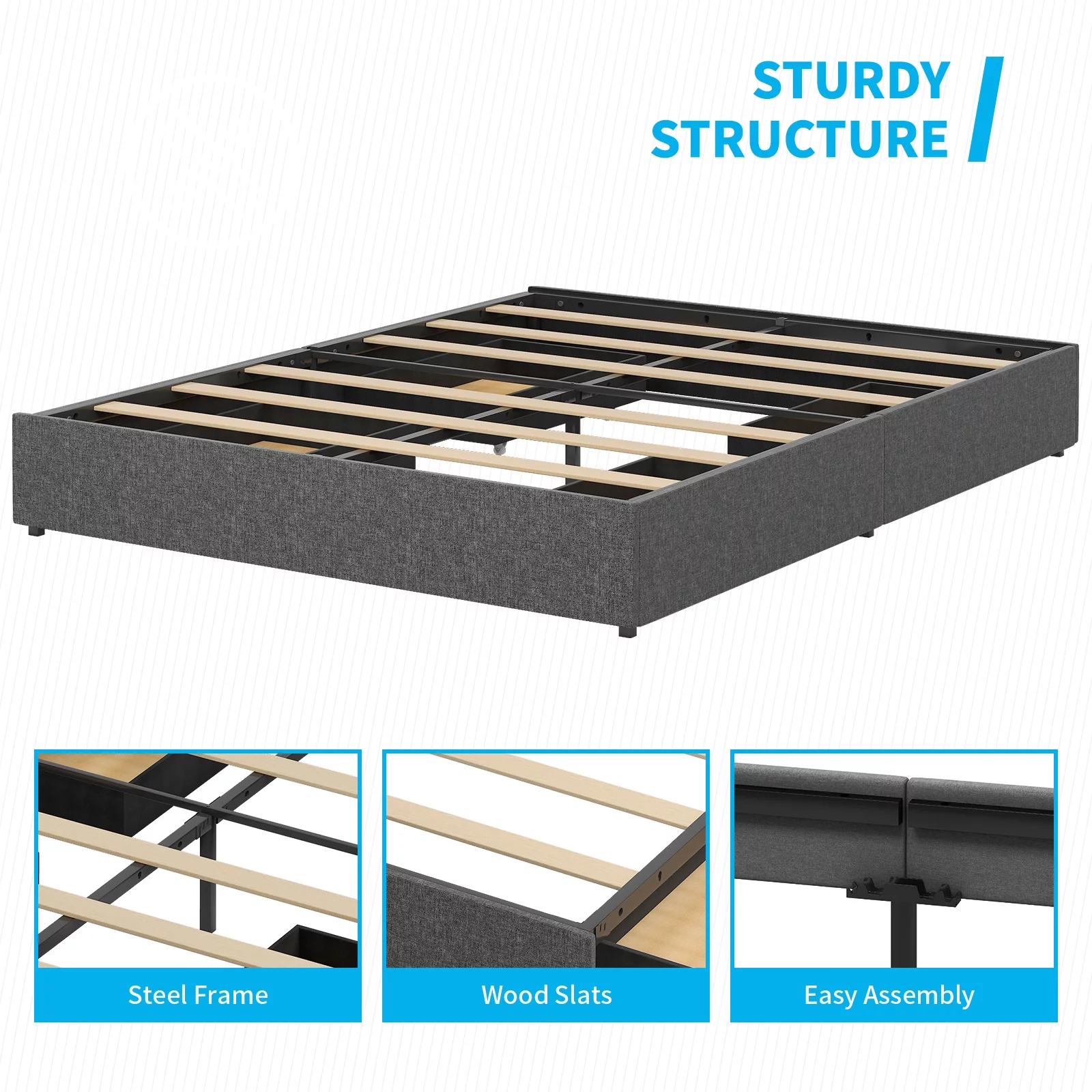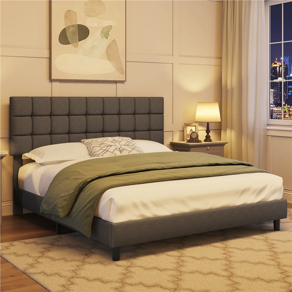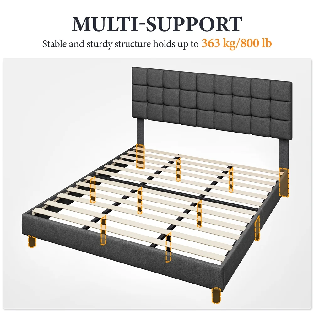 Queen Bed Frame, Solid and Stable, Noise Free, No Box Spring Needed, Easy Assembly