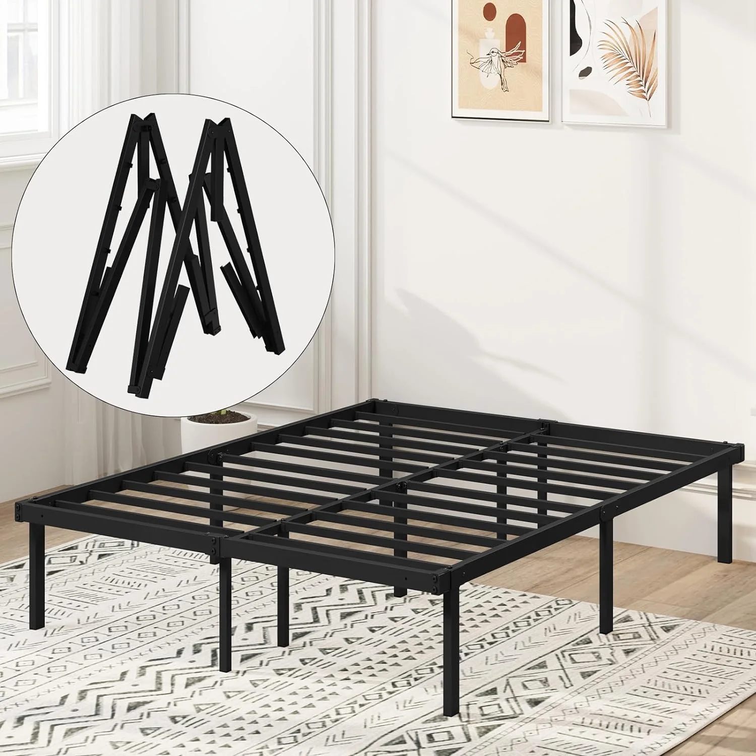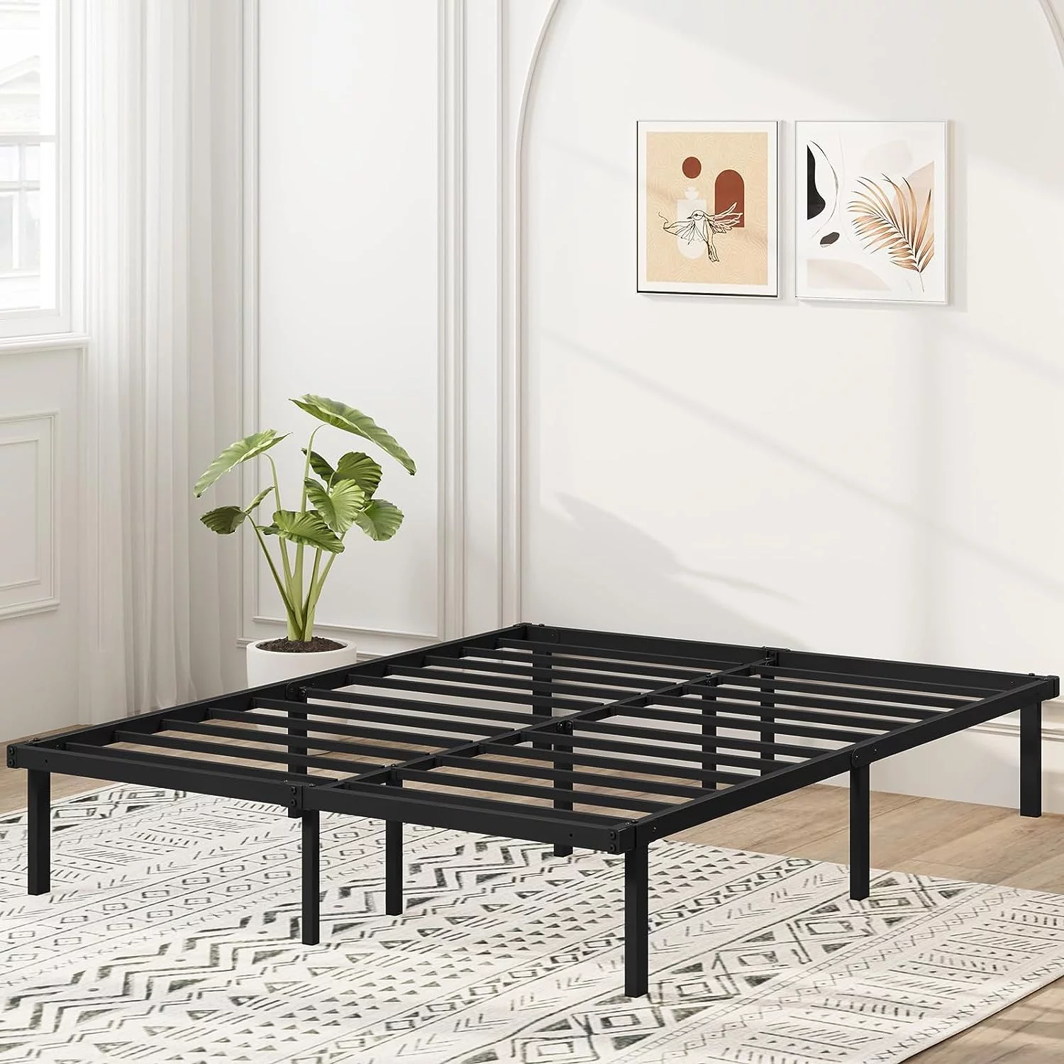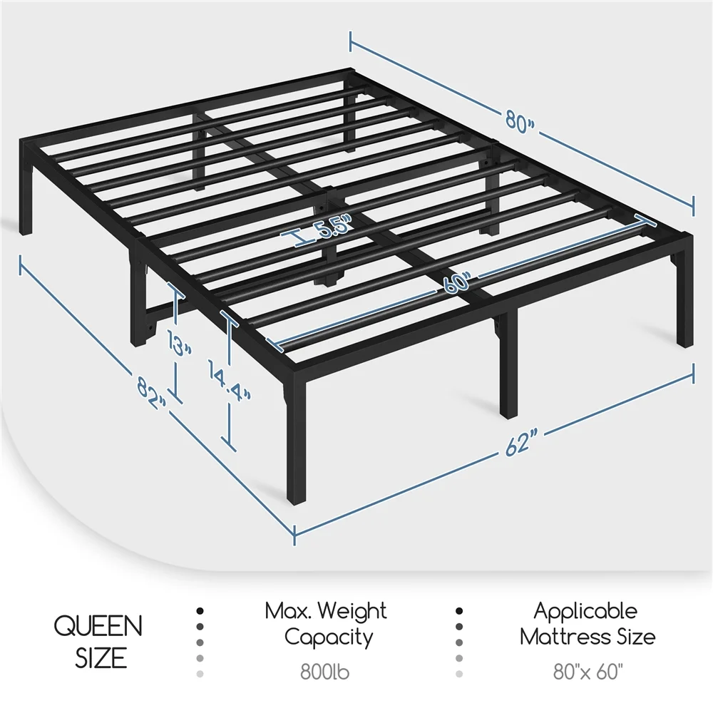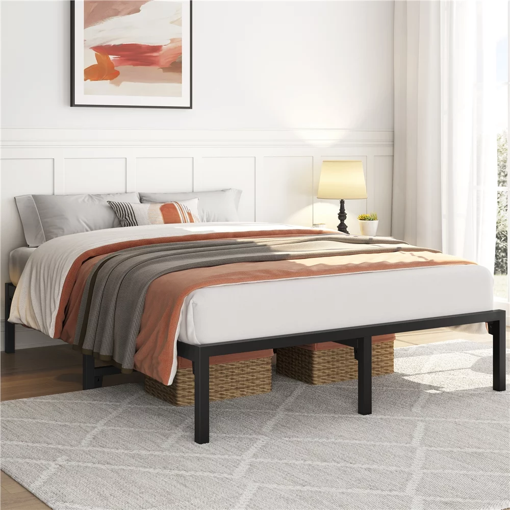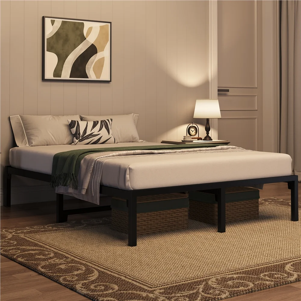 Topeakmart 13" Modern Queen Size Metal Bed Frame No Screws and Box Spring Needed,Black