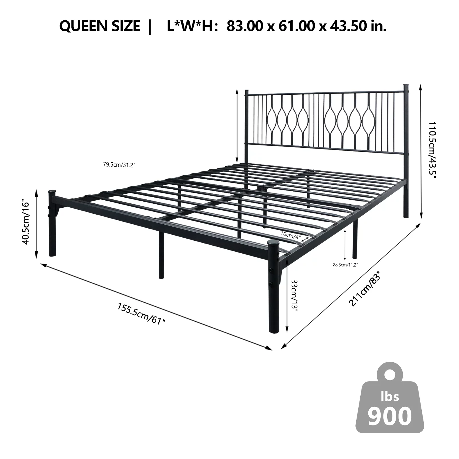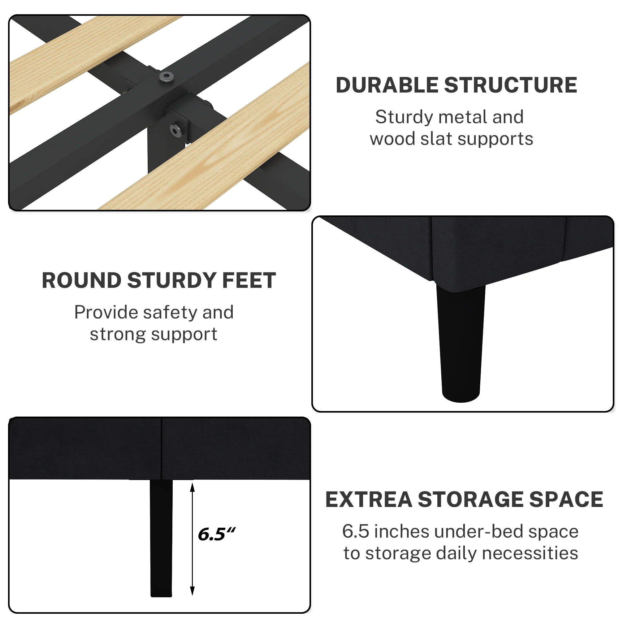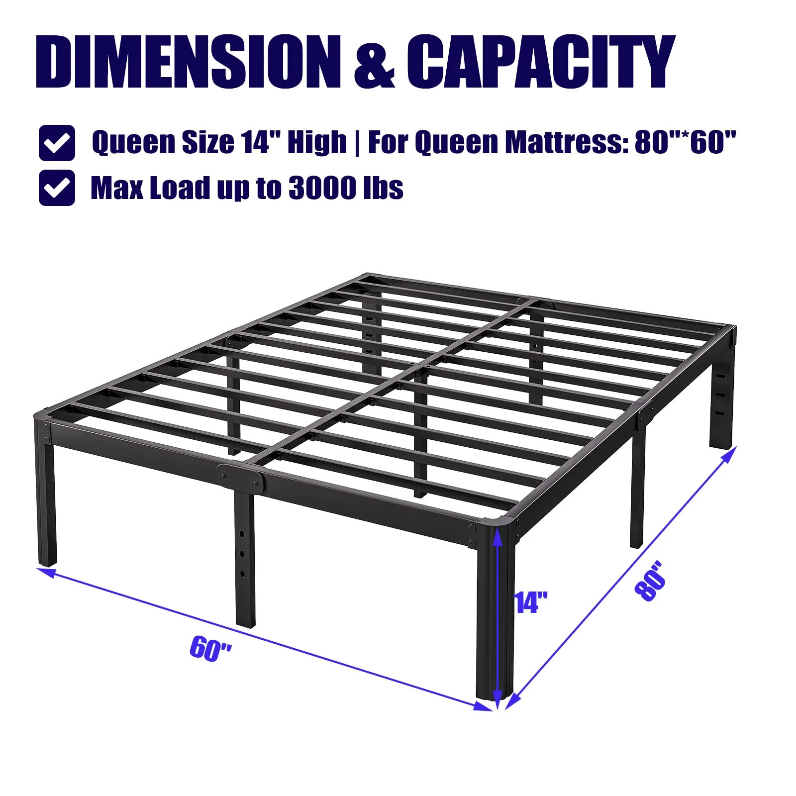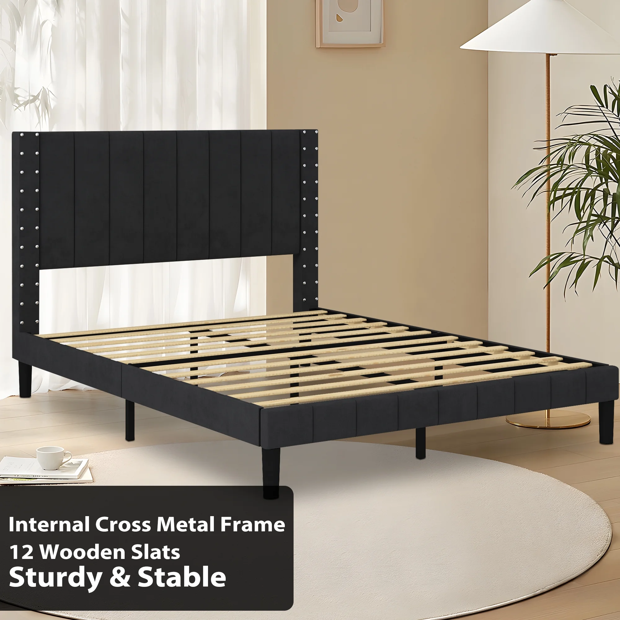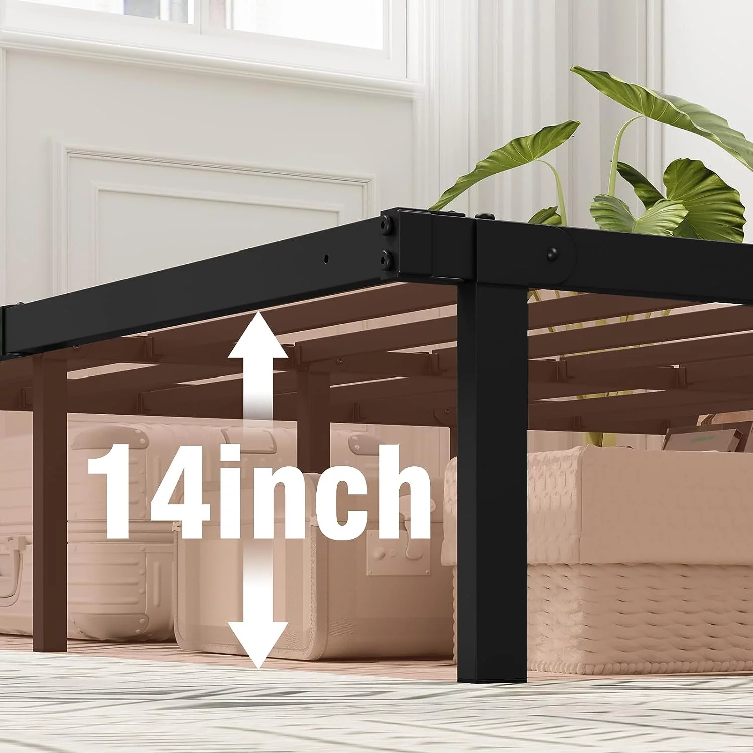 Topeakmart 13" Modern Queen Size Metal Bed Frame No Screws and Box Spring Needed,Black