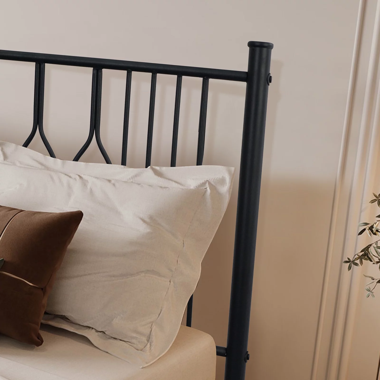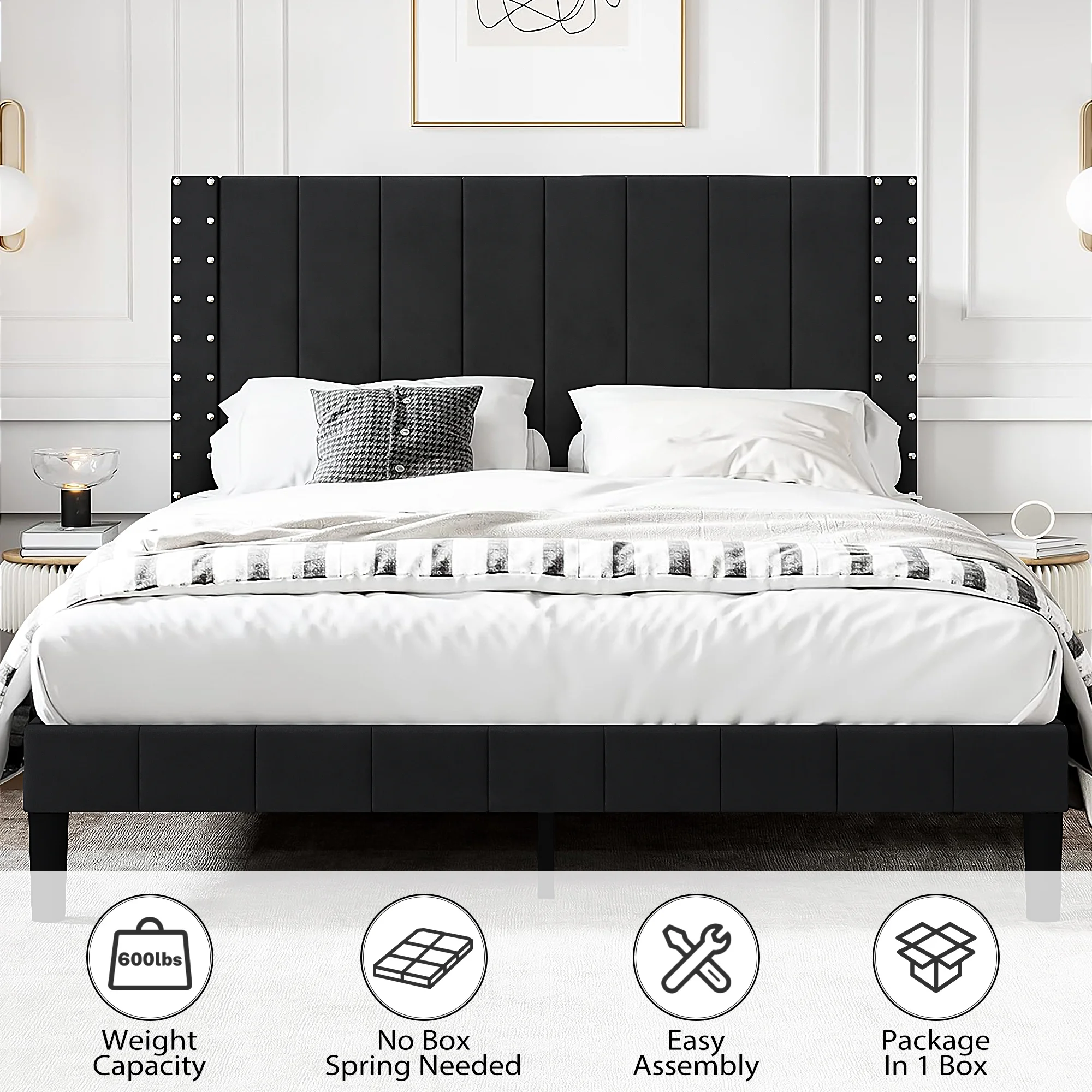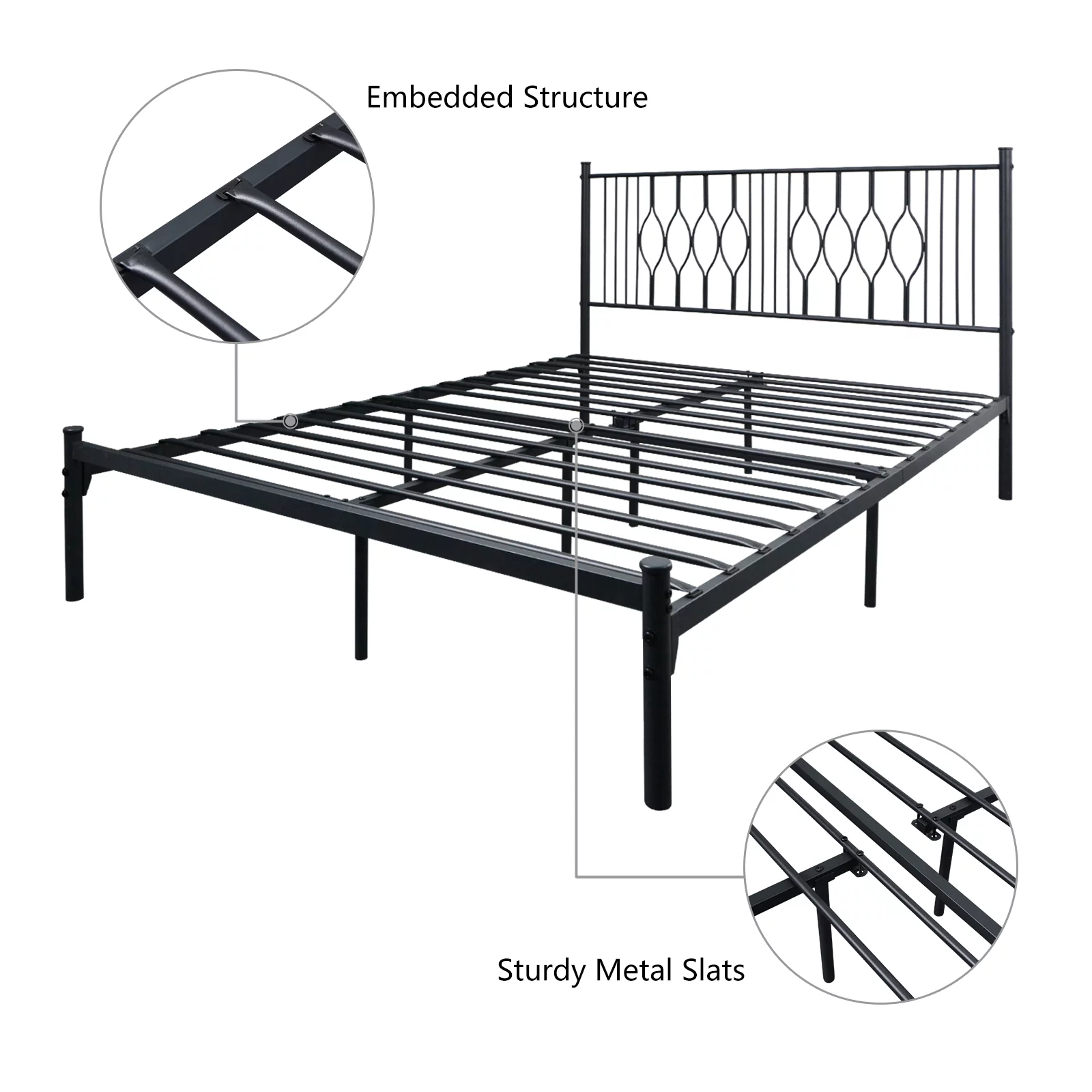 Muumblus Metal Platform Bed Frame, Queen Size Bed Frame with Headboard No Box Spring Needed, Black