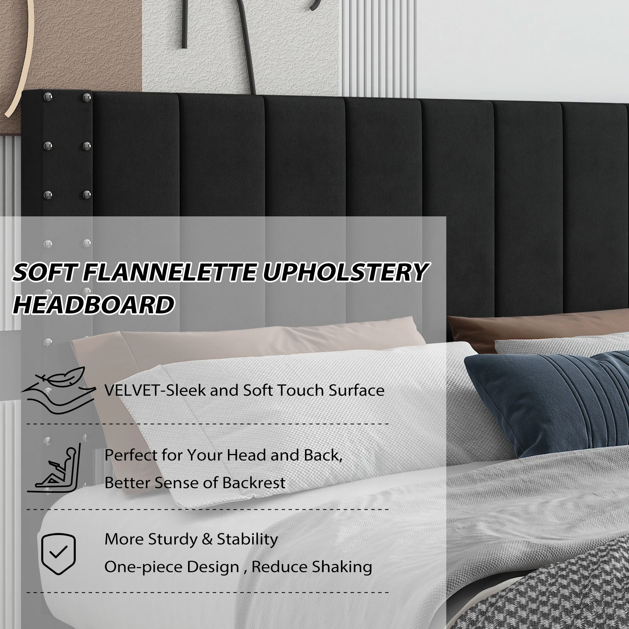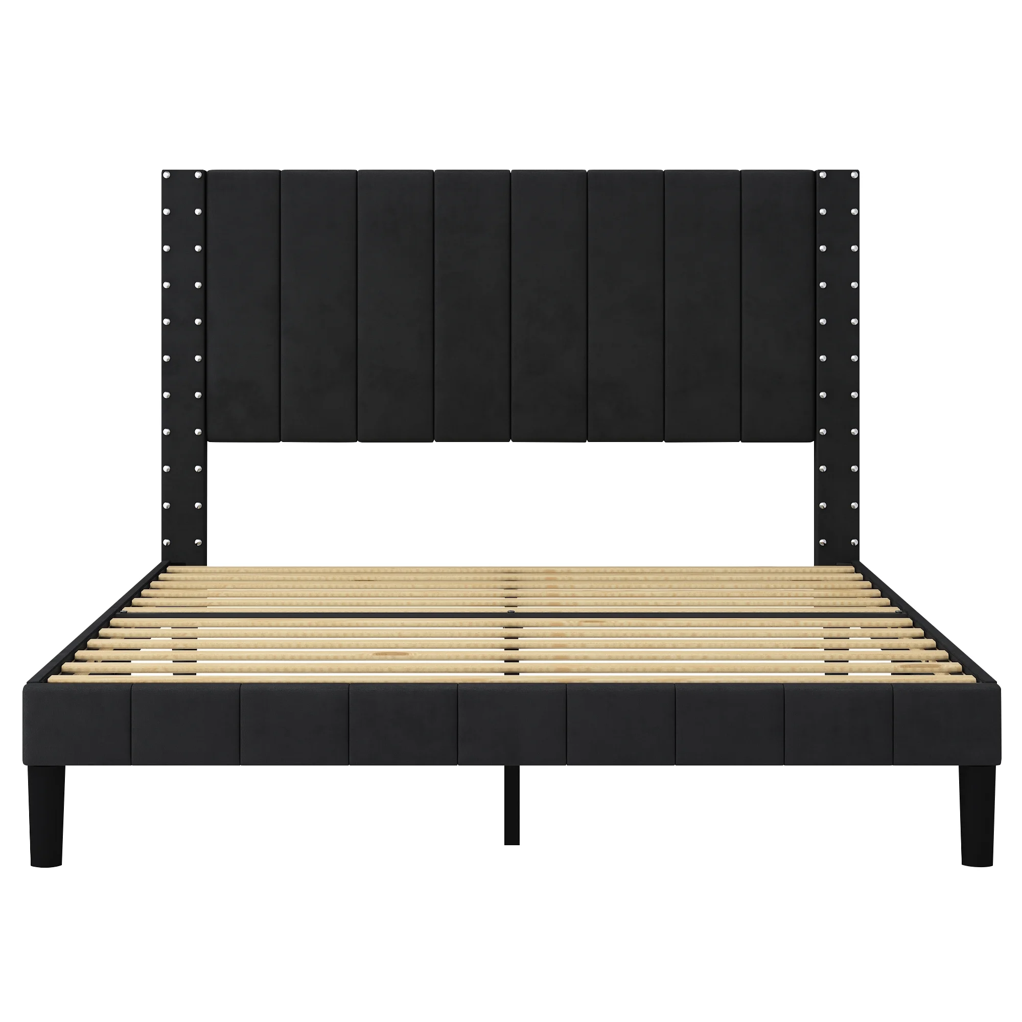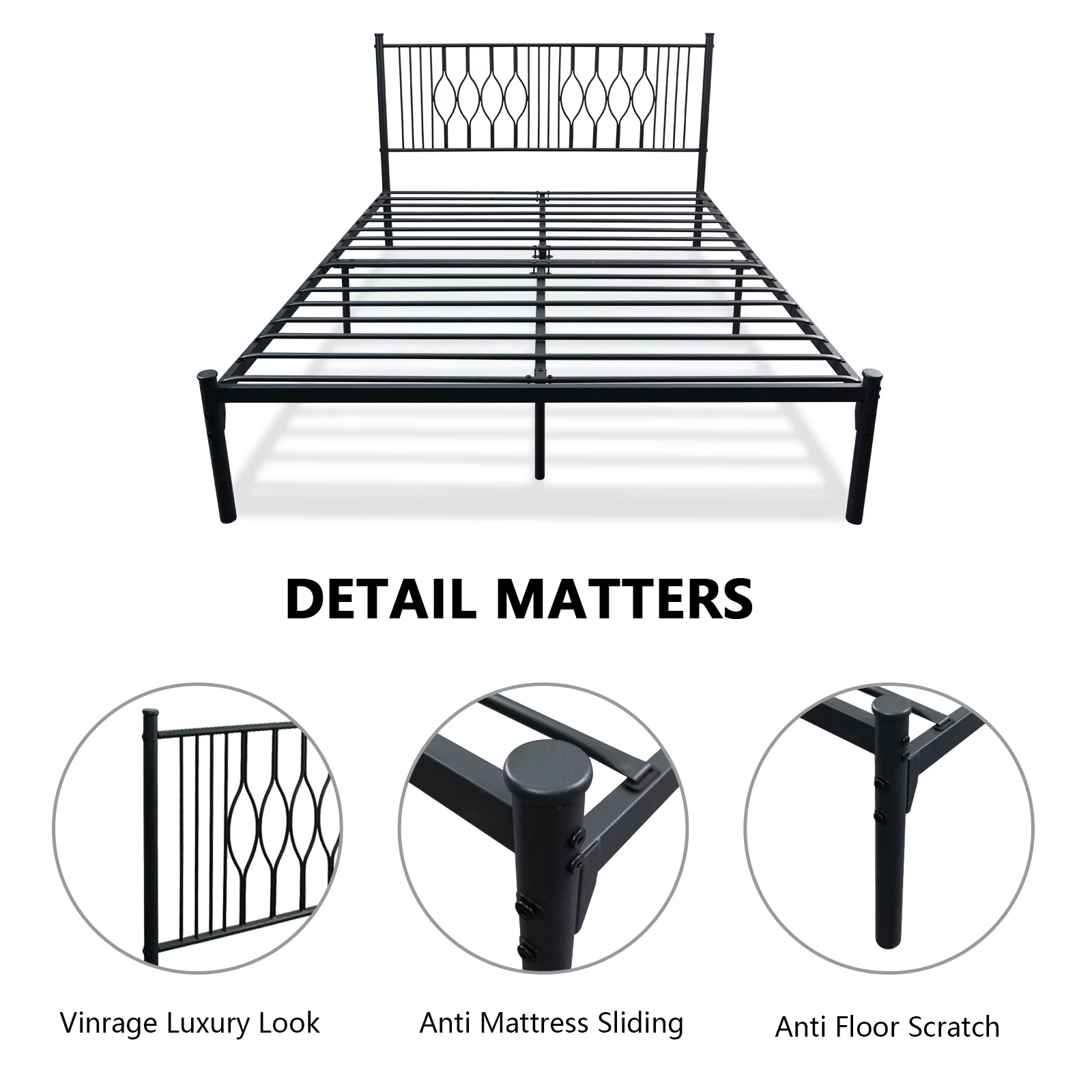 Muumblus Metal Platform Bed Frame, Queen Size Bed Frame with Headboard No Box Spring Needed, Black