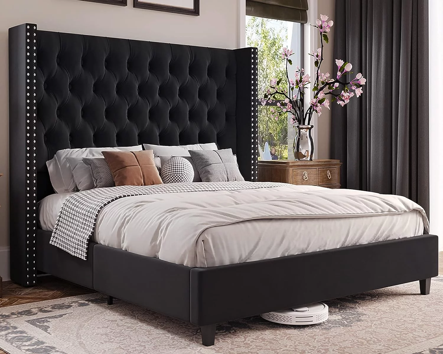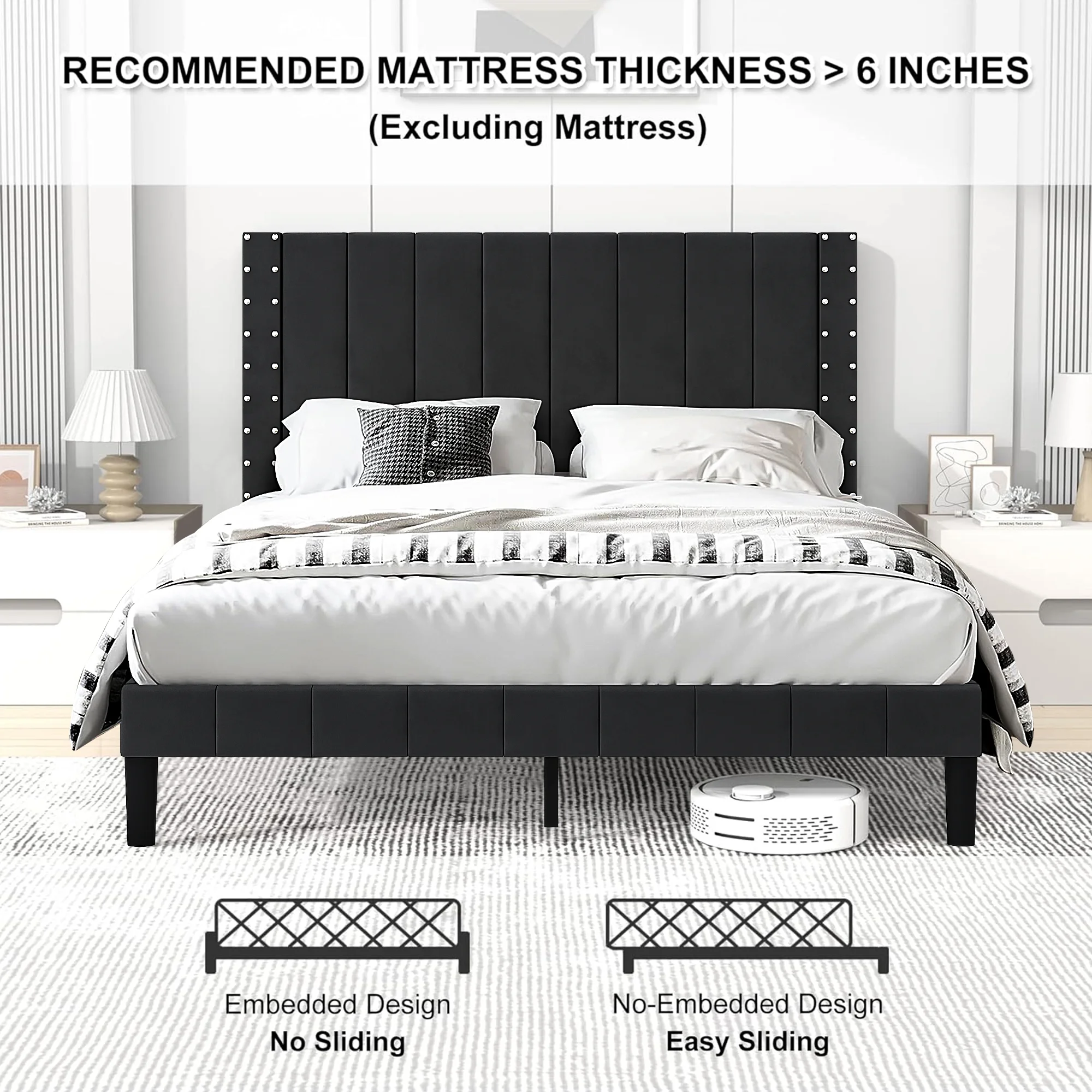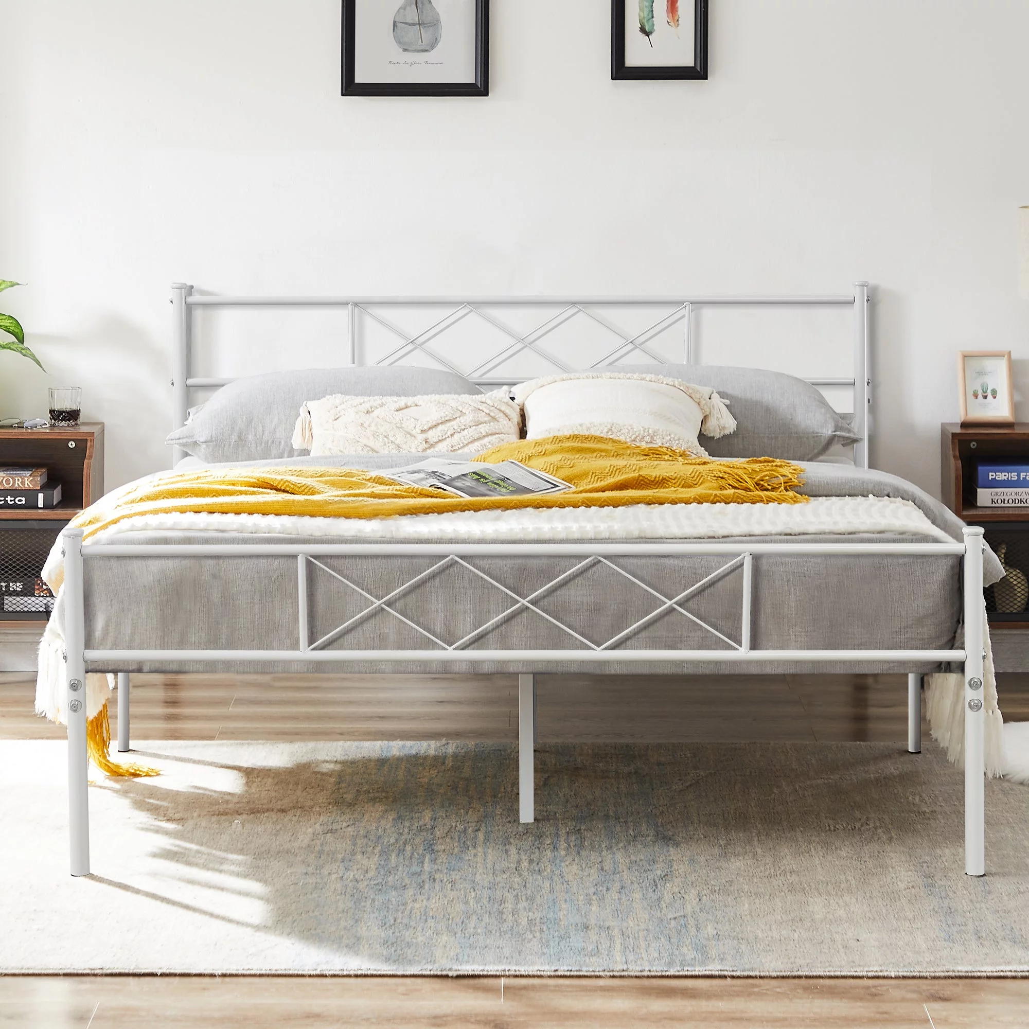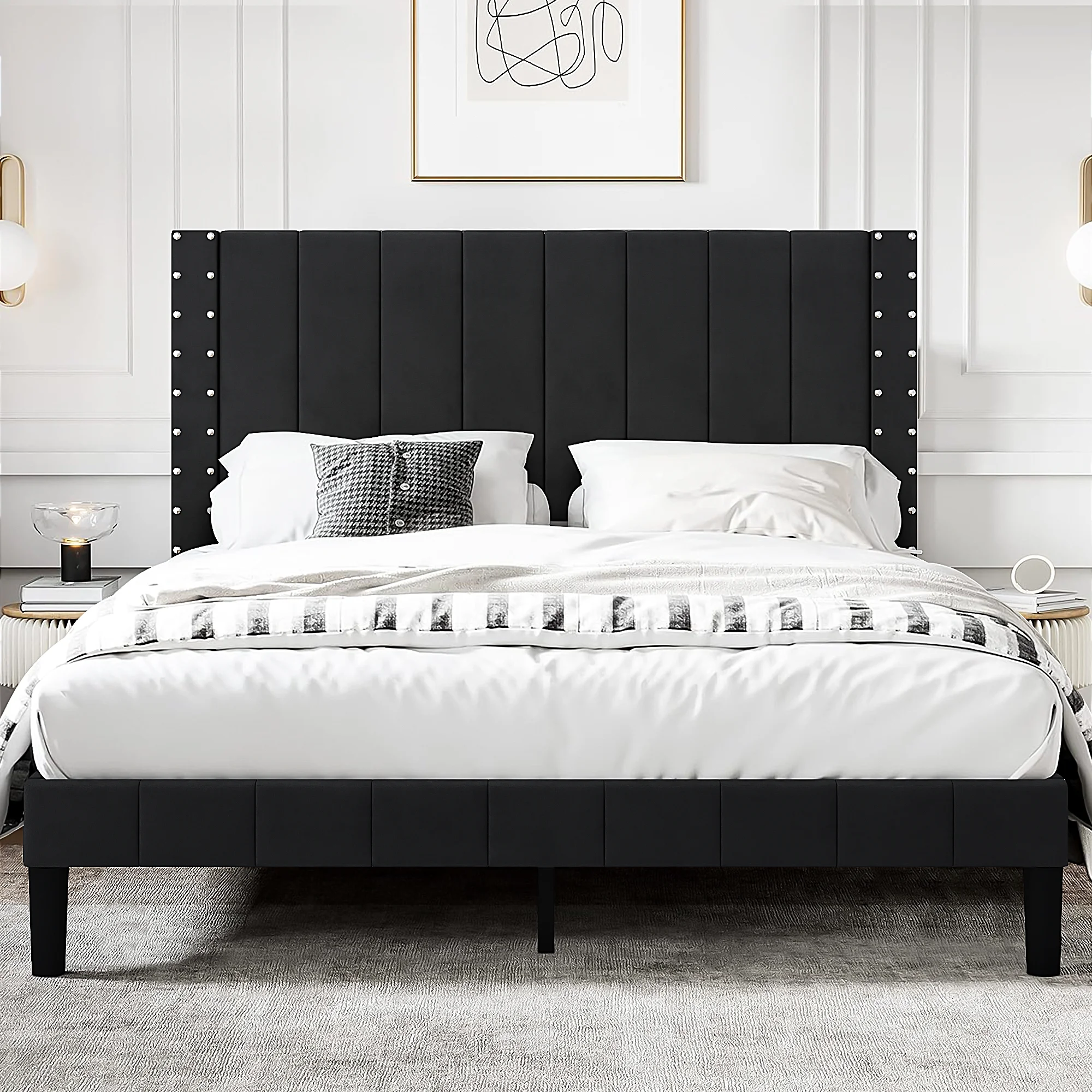 VECELO 3-Piece White Bedroom Sets Include Queen Bed Frame + 2 Nightstands