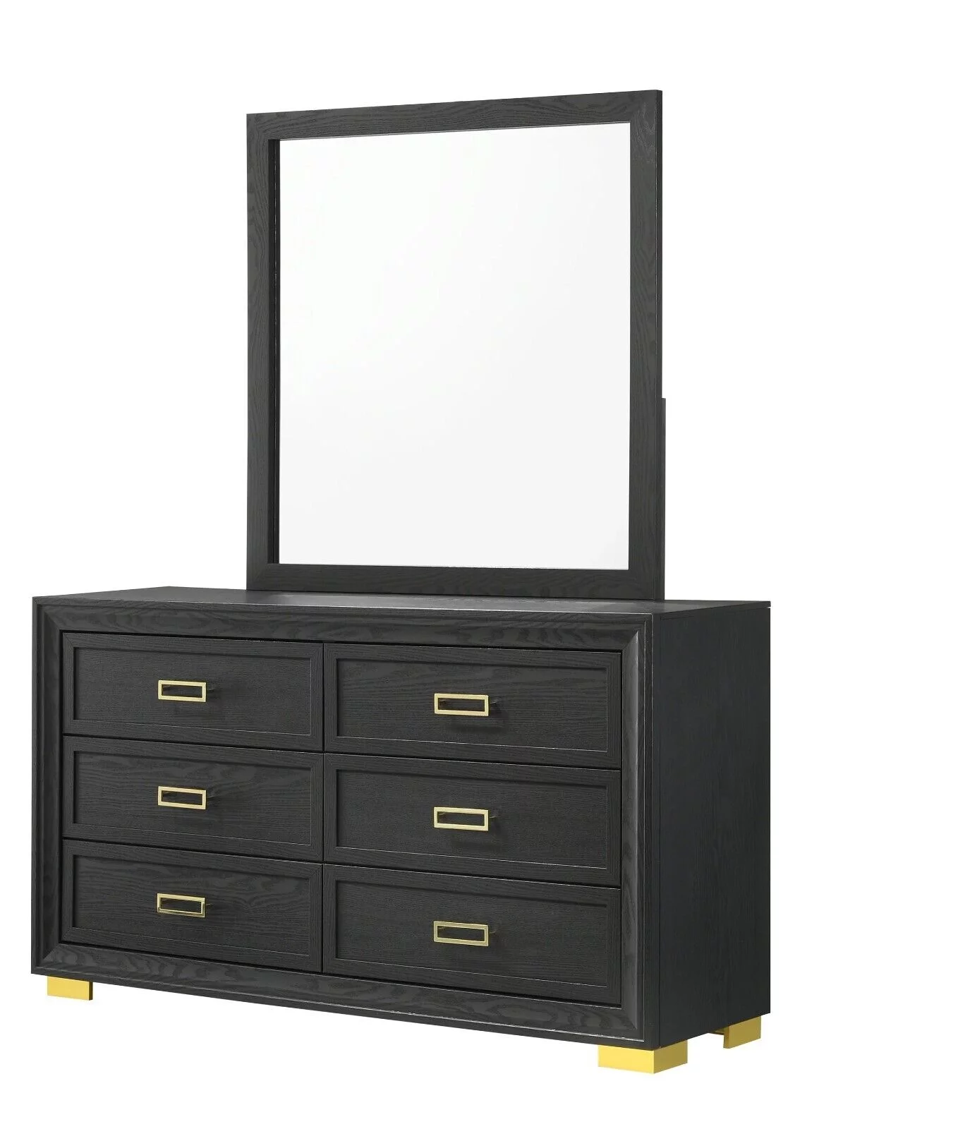 Modern Glam 5pc Bedroom Set King Size Panel Bed Furniture Gold Black Finish