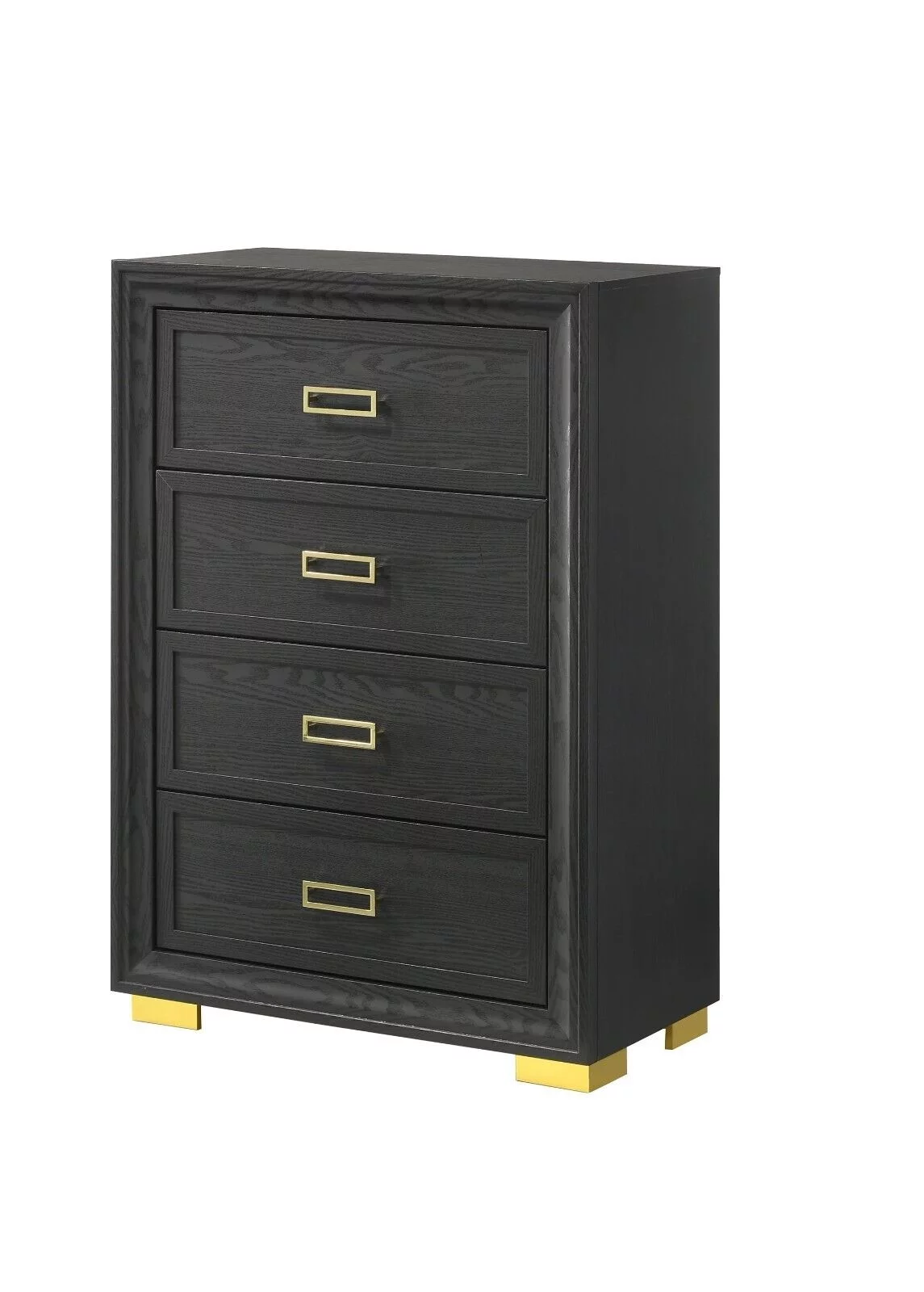 Modern Glam 3pc Bedroom Set King Size Panel Bed Chest Nightstand Furniture Gold Black Finish