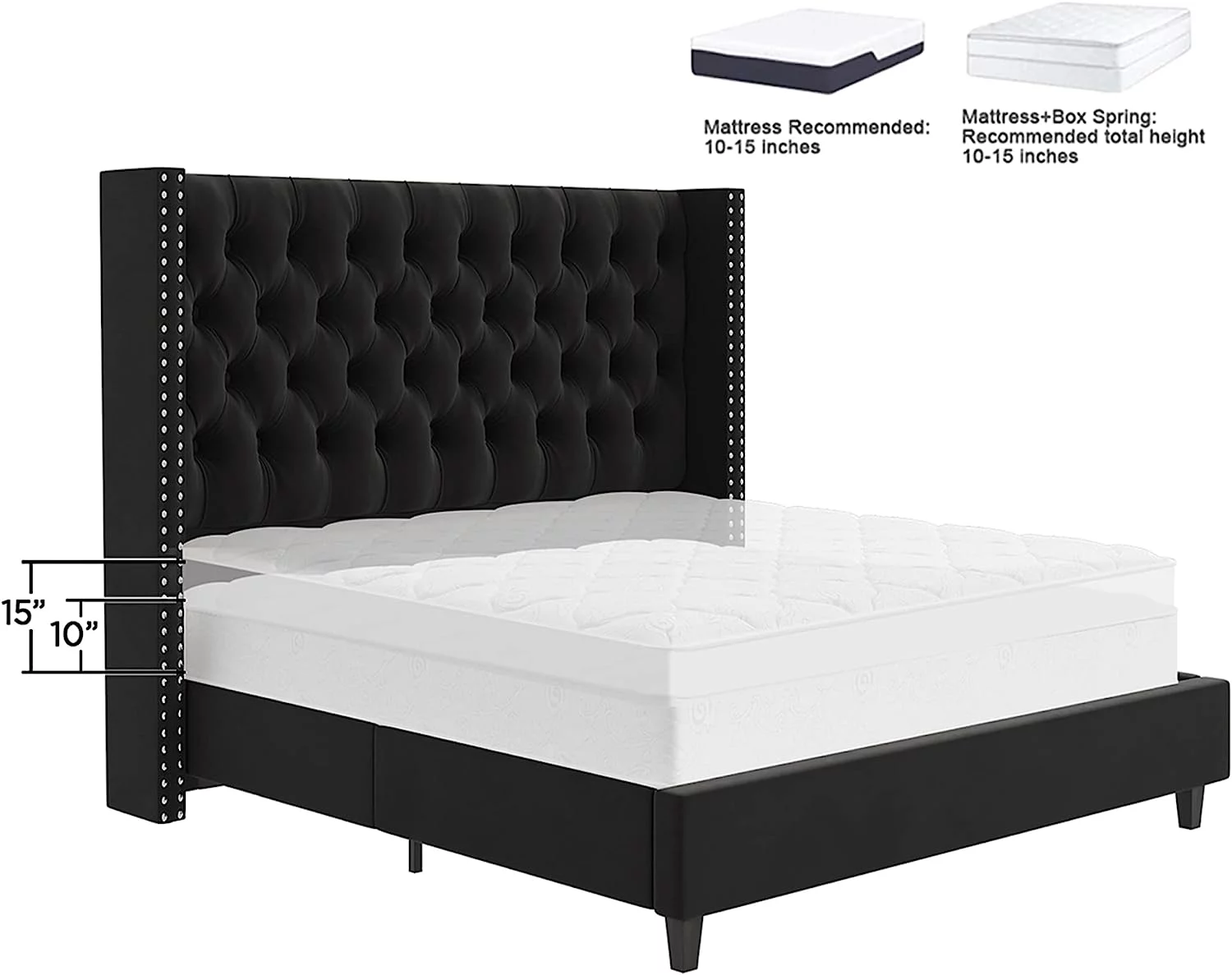 Wayton, 8" Split Sturdy Fully Assembled Wood Box Spring for Mattress, Queen, White