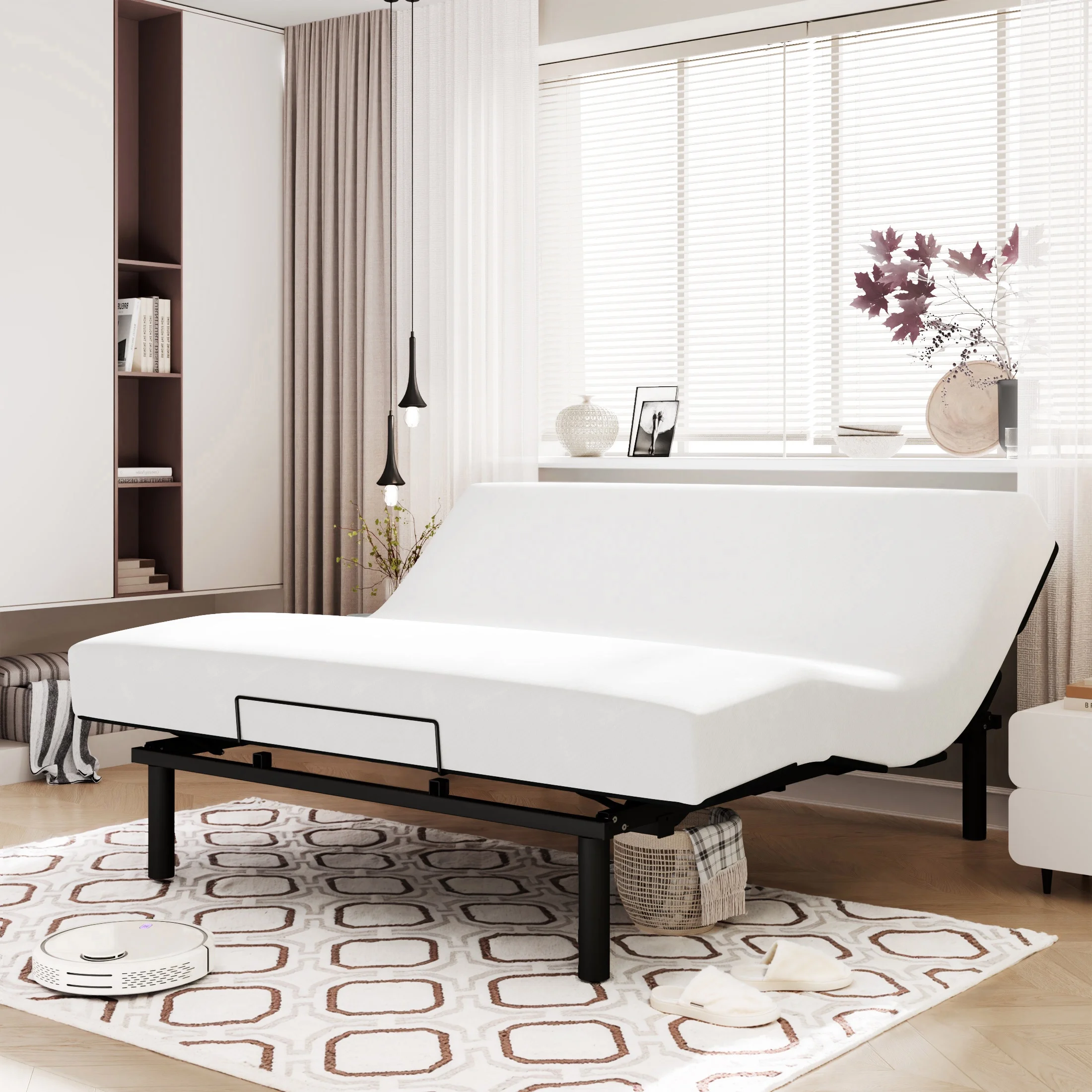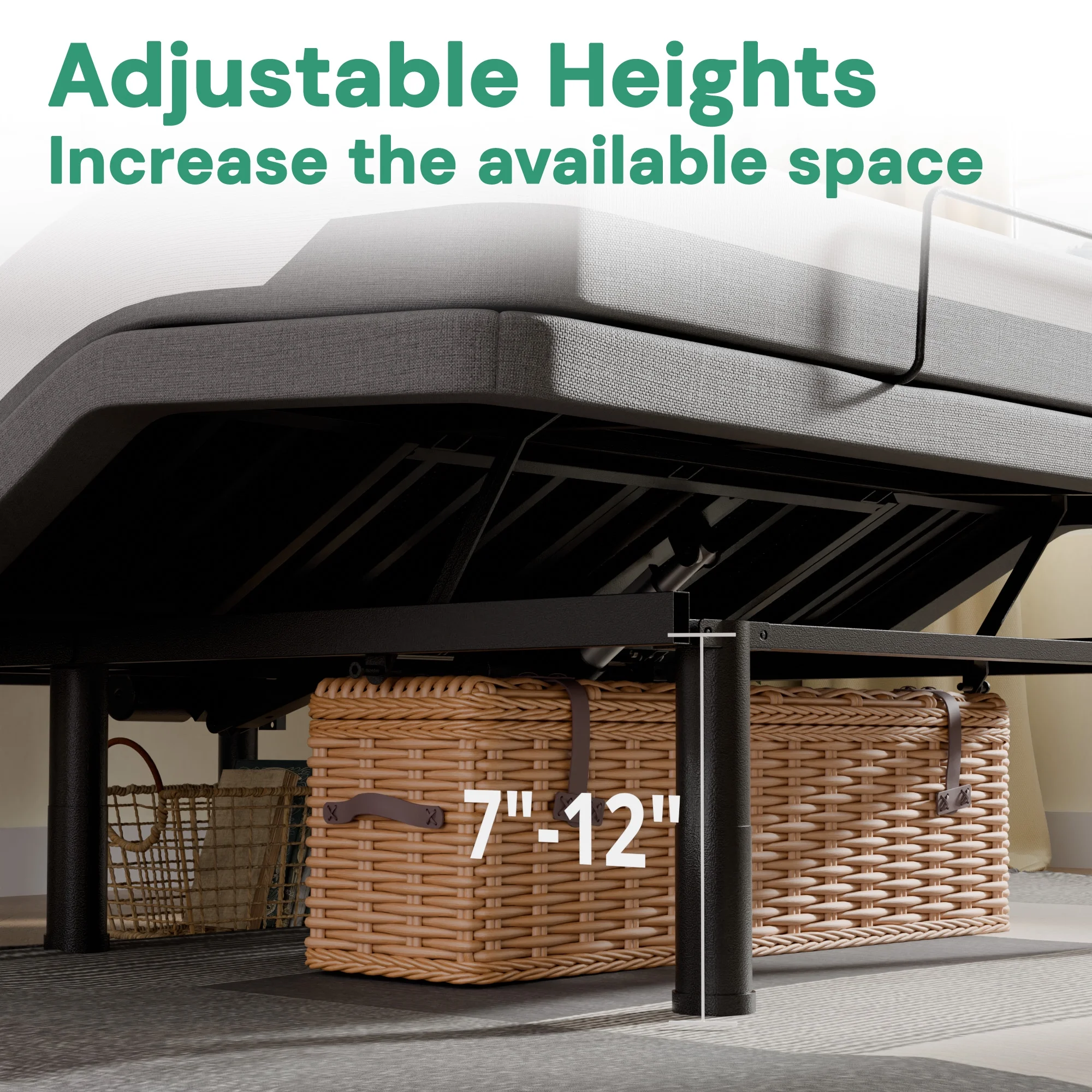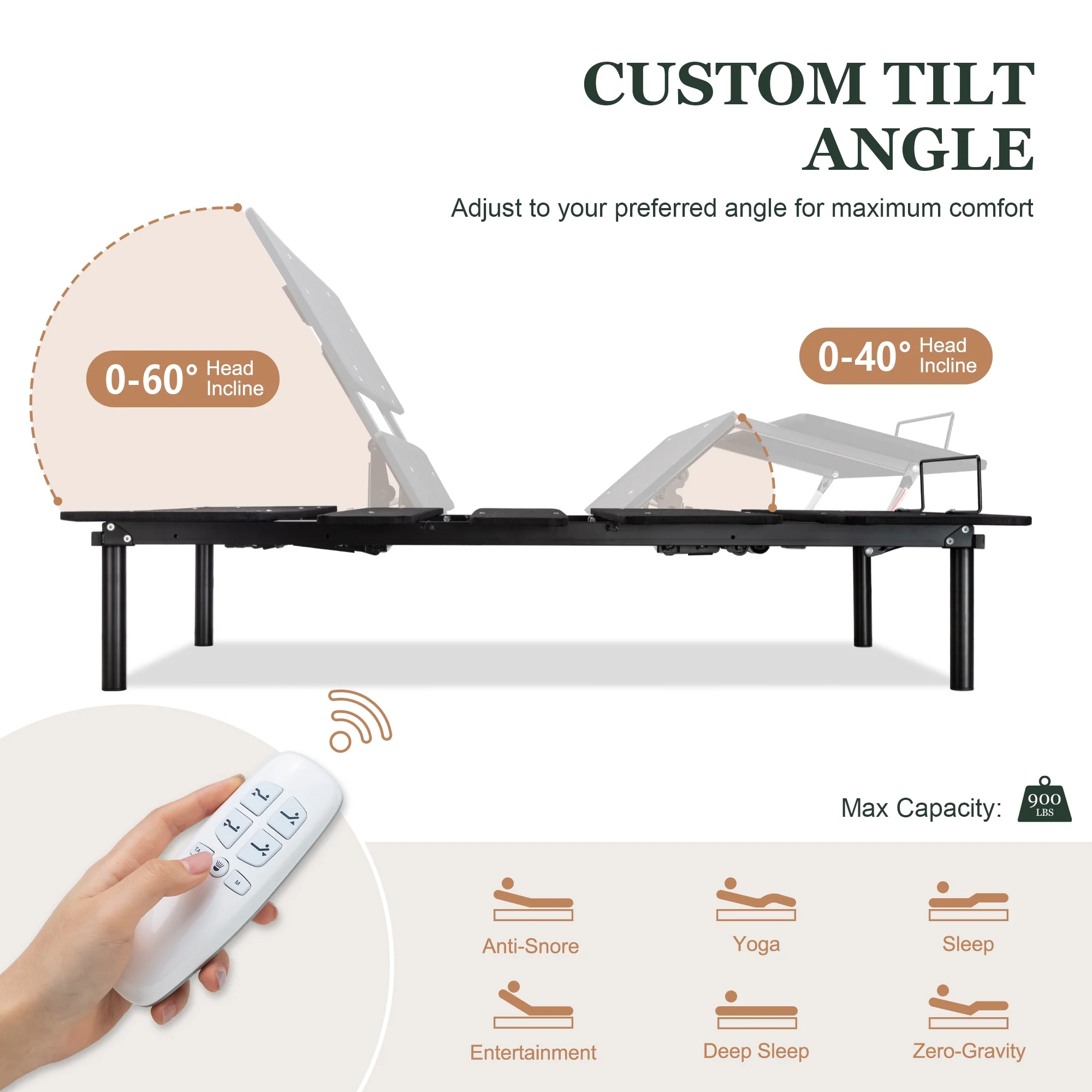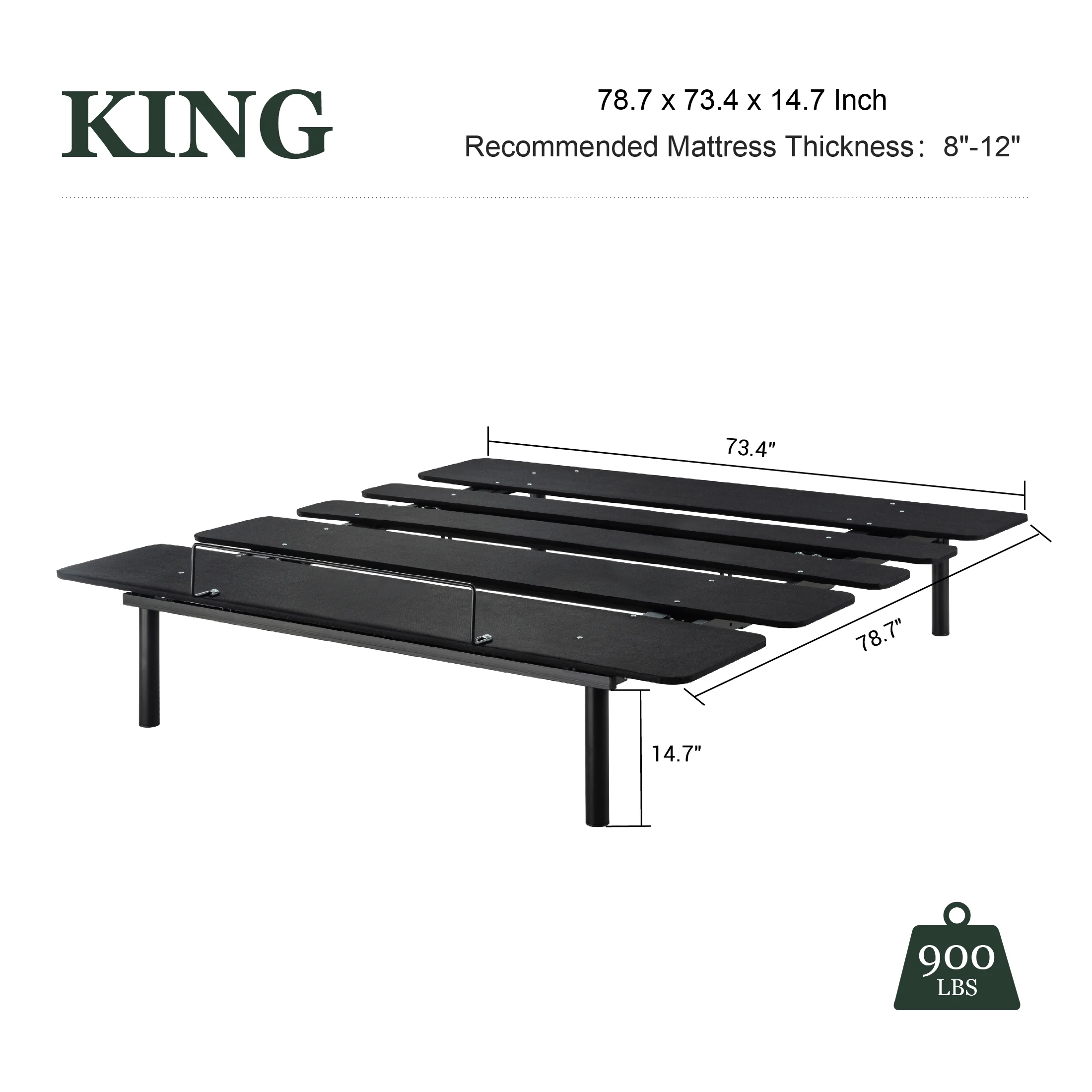 Amolife King Size Adjustable Bed Base Frame with independent Head and Foot Incline, Wireless Remote Control with Quiet Motor