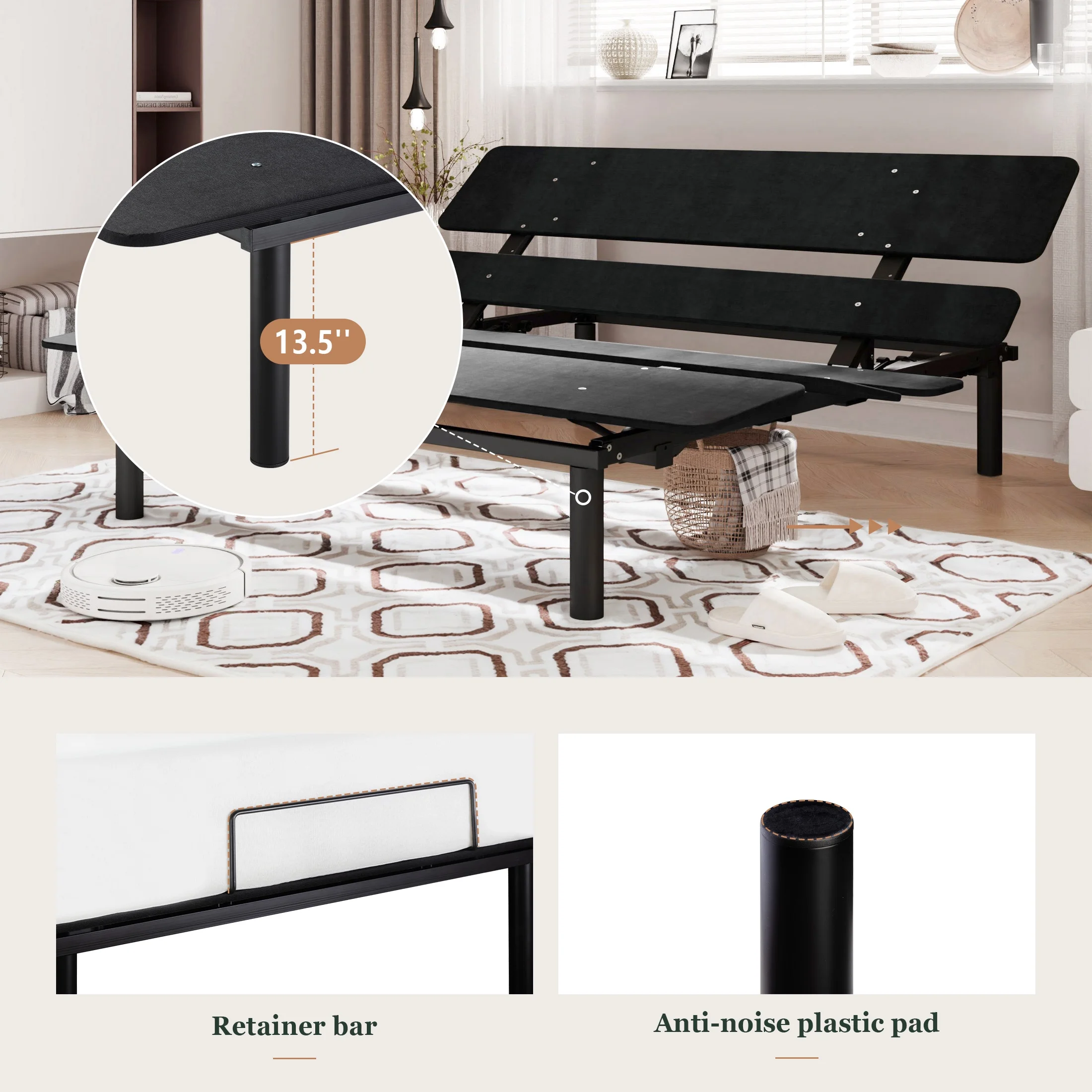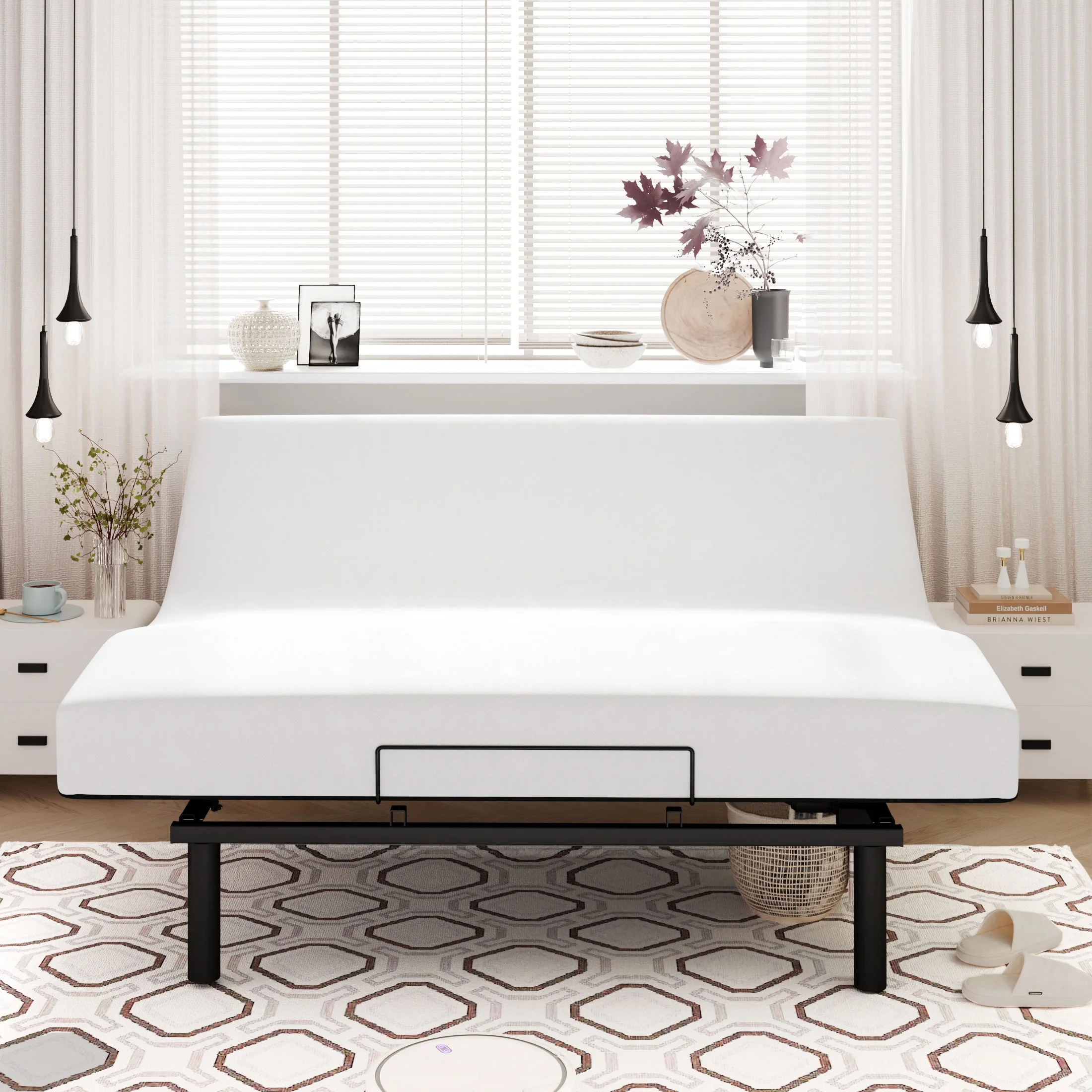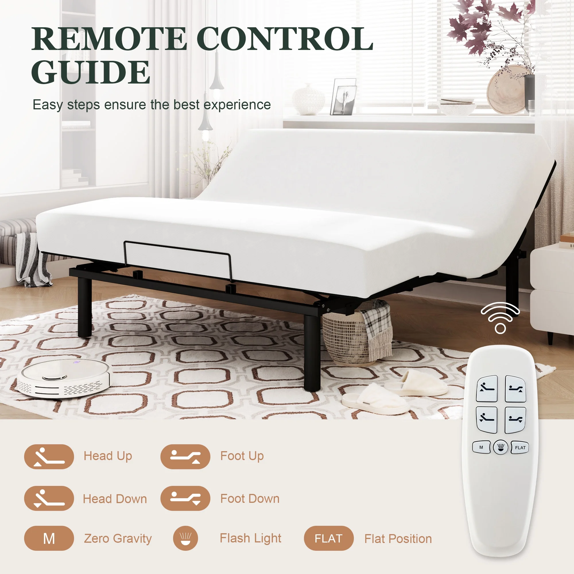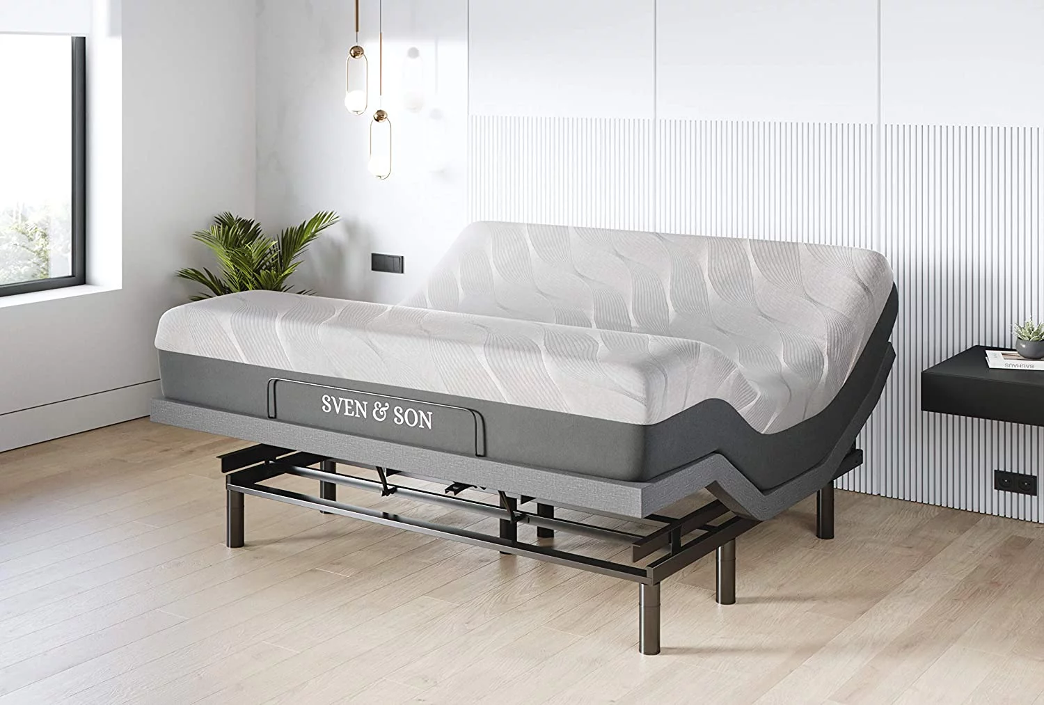 Amolife King Size Adjustable Bed Base Frame with independent Head and Foot Incline, Wireless Remote Control with Quiet Motor