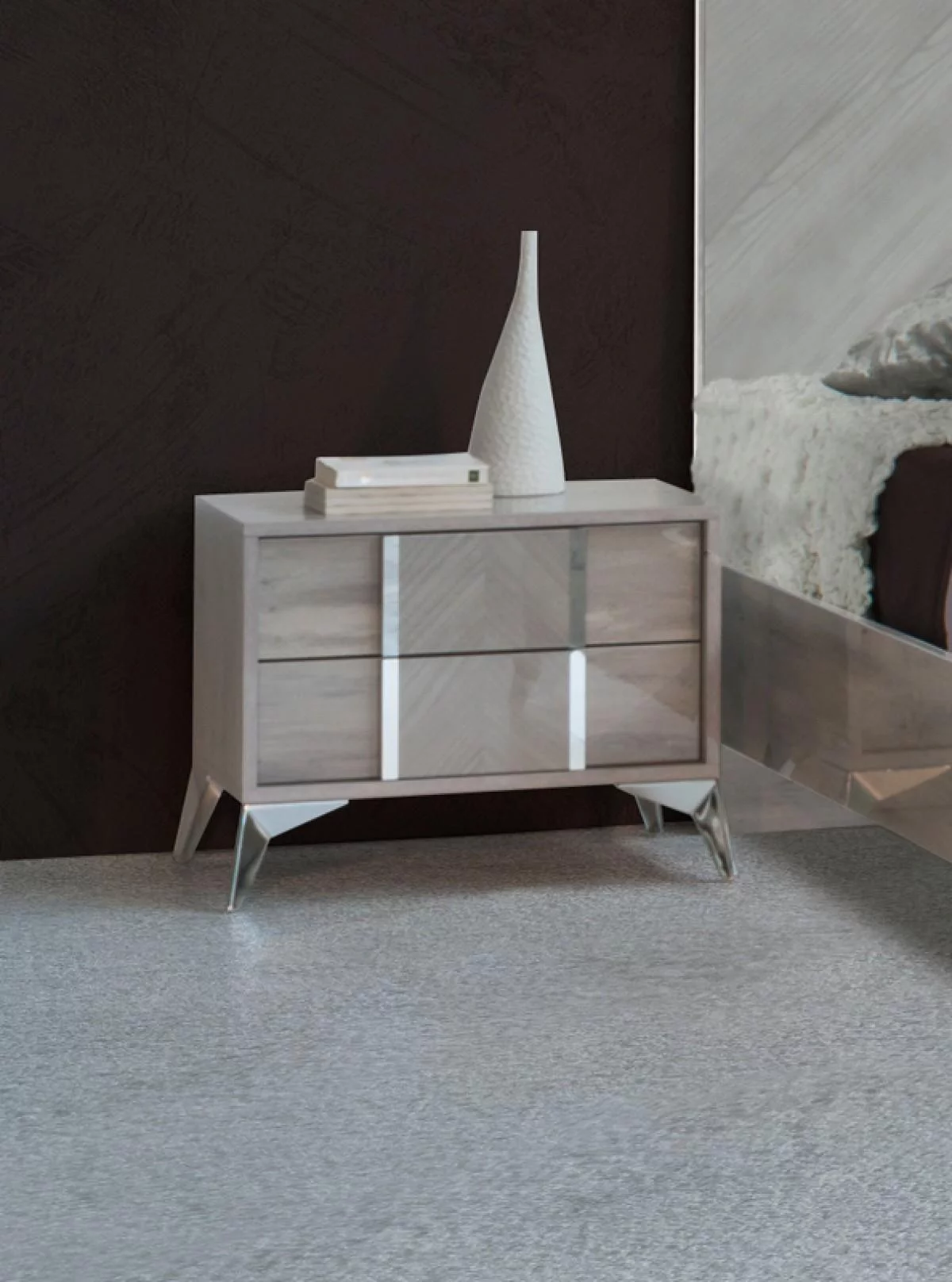Modern Light Grey Lacquer & Wenge Veneer King Size Bedroom Set 3Pcs J&M Porto