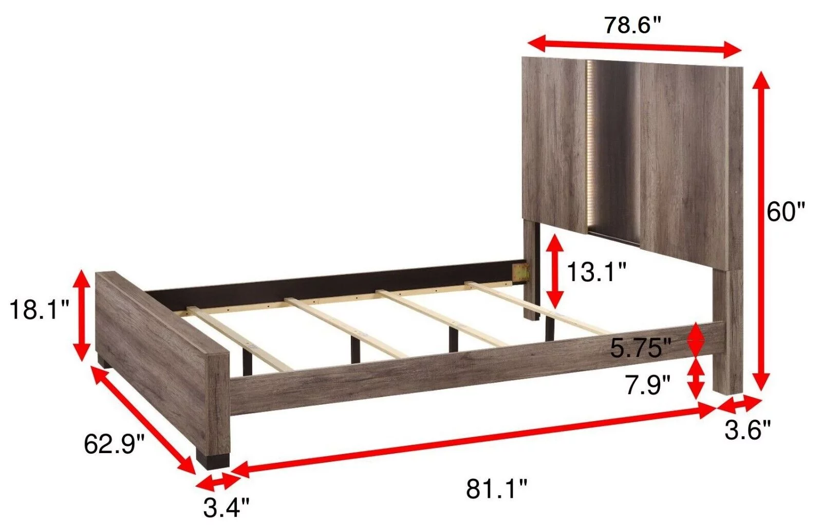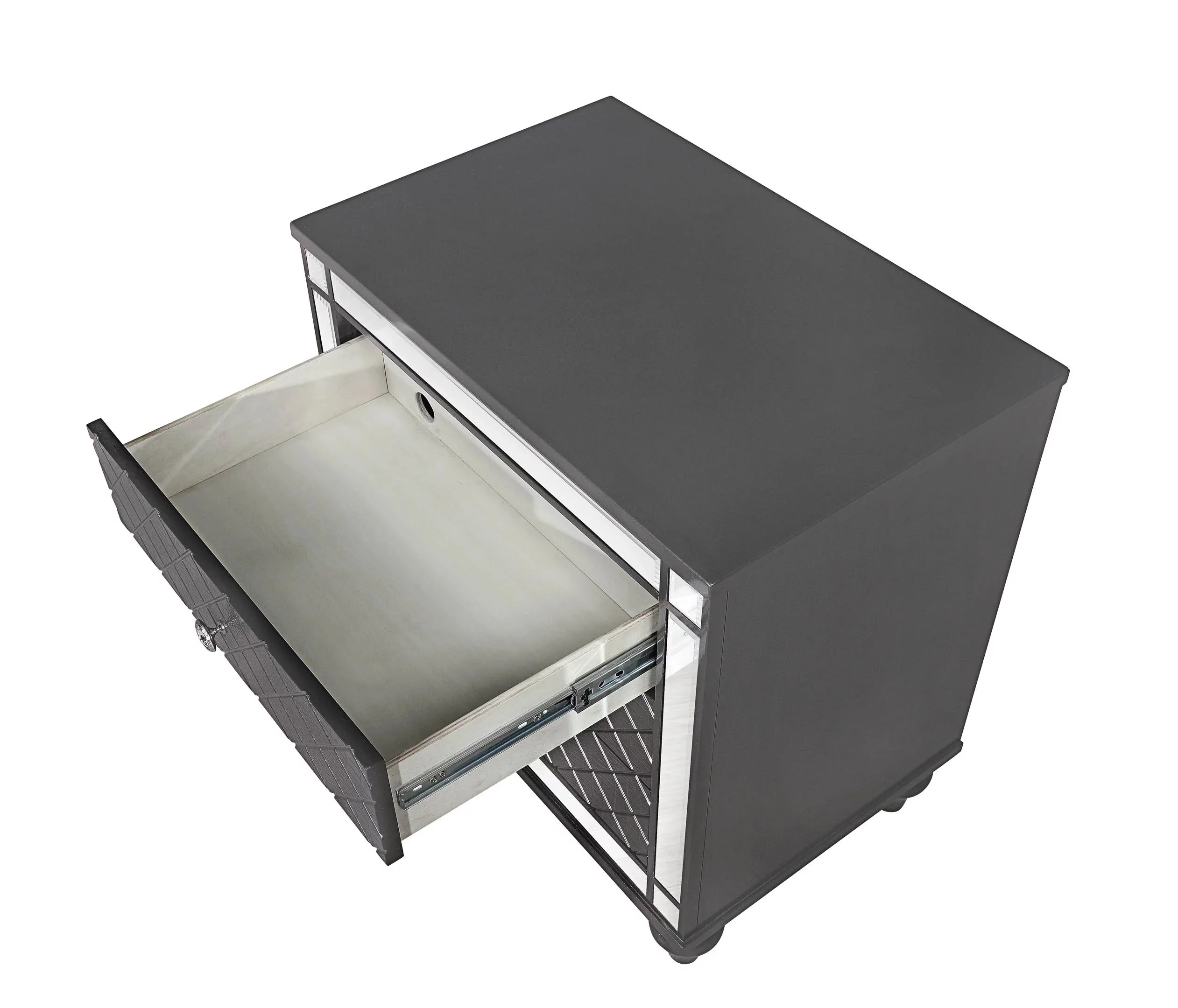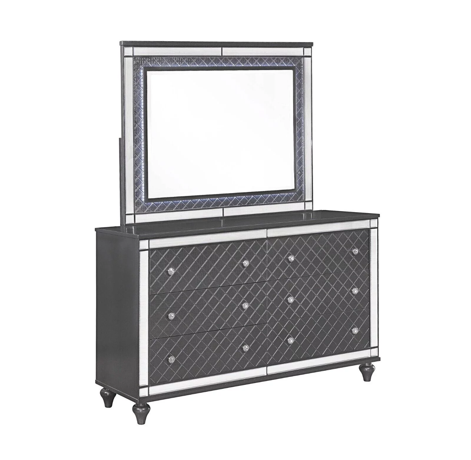 6pc Modern Glam Style LED HB Gray Charcoal Finish King Size Panel Bedroom Set Solid Wood Furniture