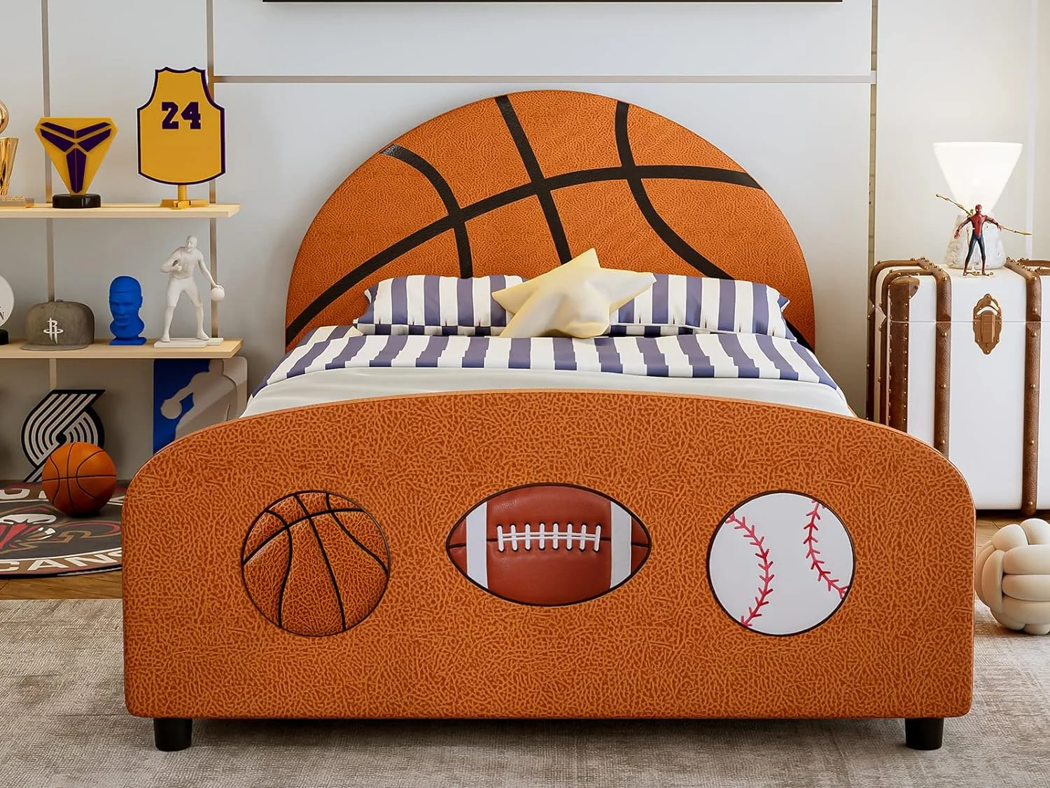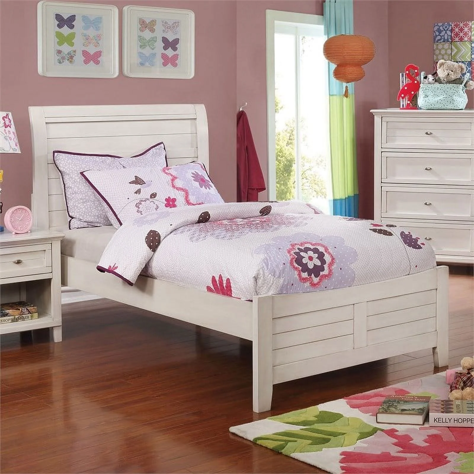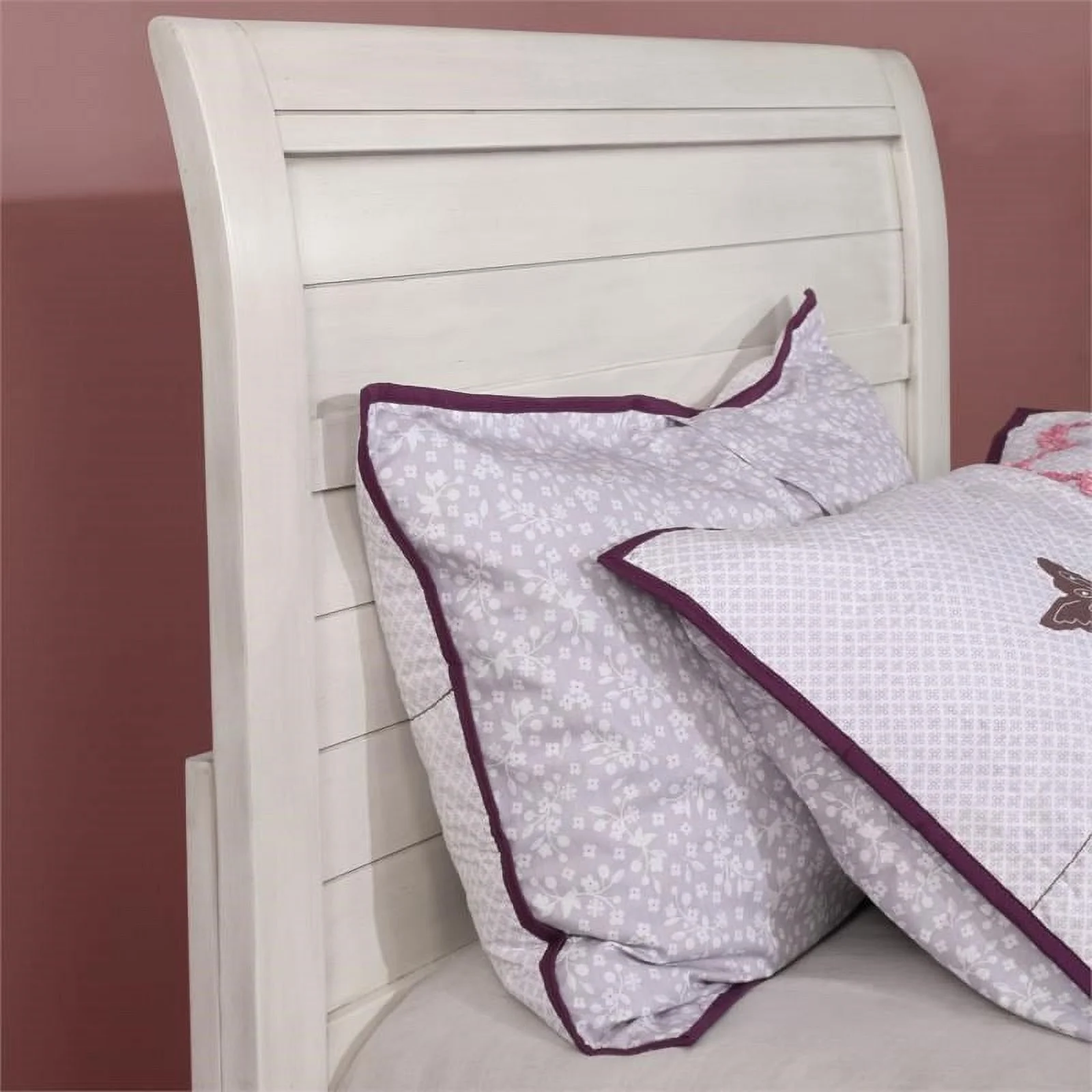 Roseberry Kids Transitional Wood Full Bed with Curved Headboard in White