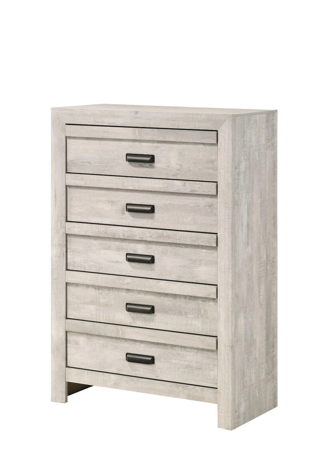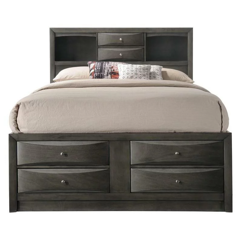 Contemporary King Size 6pc Master Bedroom Set Captains Bed Gray Finish Solid Wood Furniture