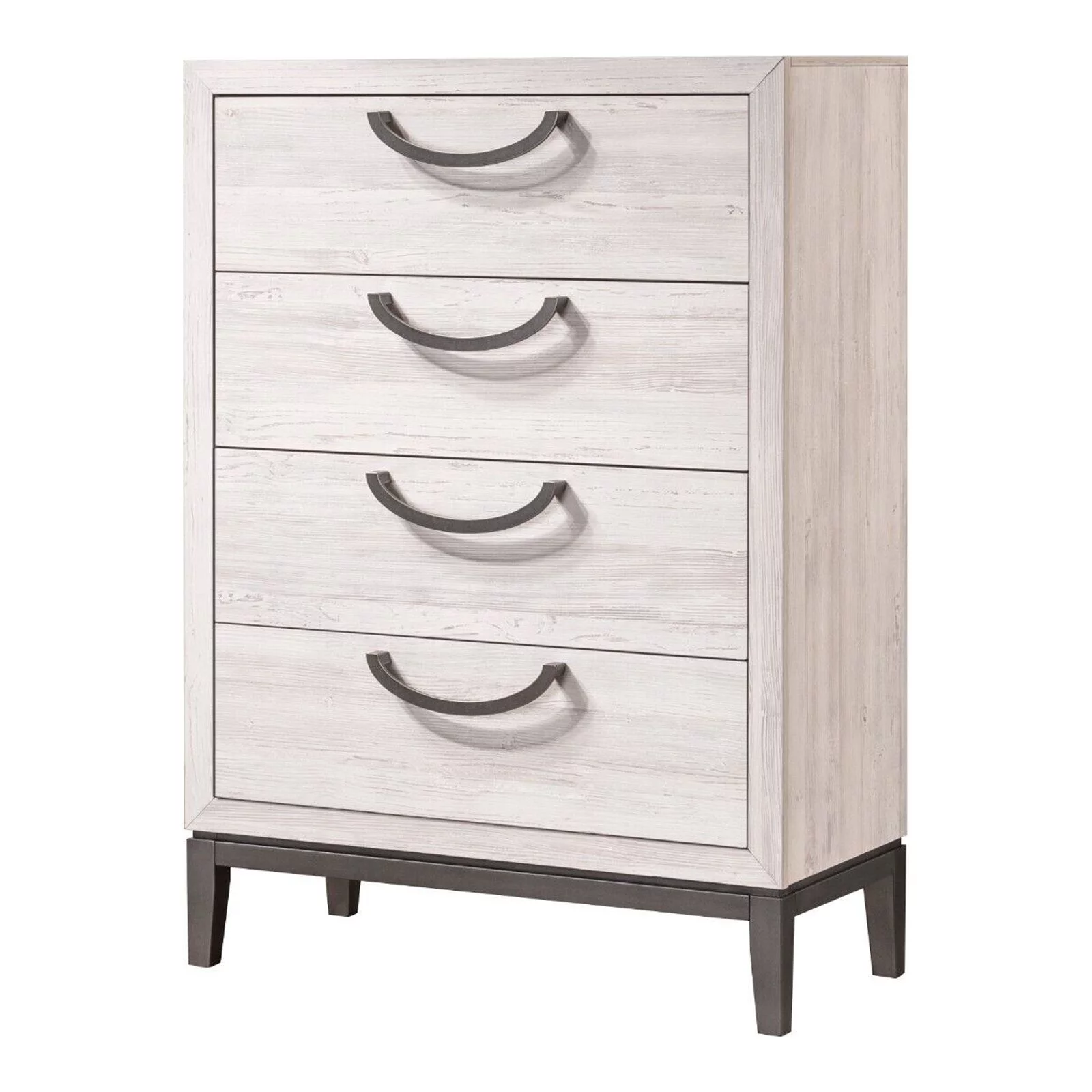4pc Beautiful White Finish King Size Panel Bed Set Wooden Master Bedroom Furniture