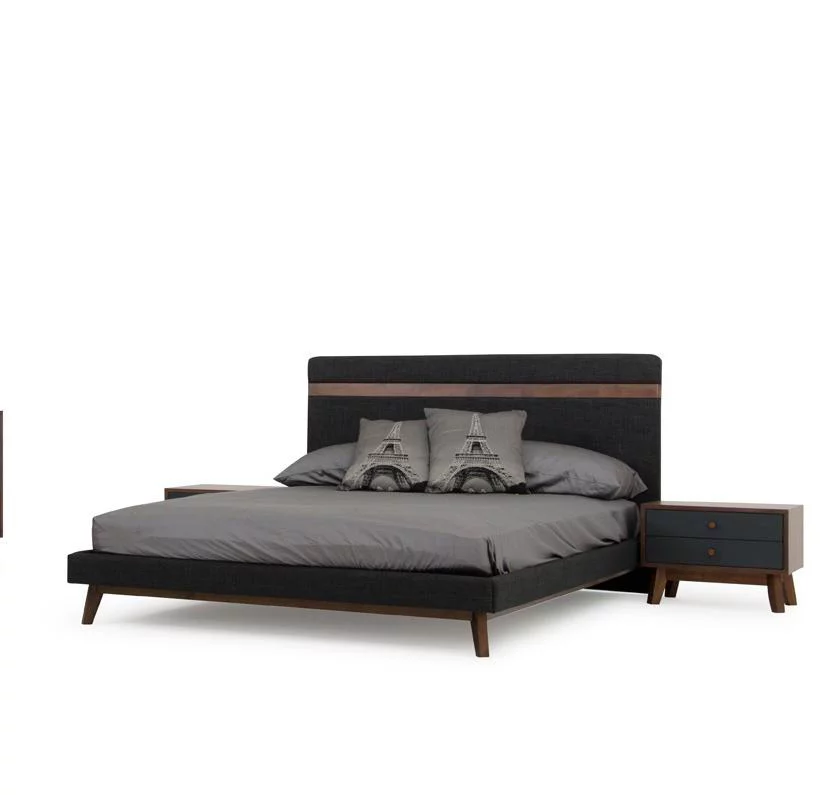 Modern Grey Fabric & Walnut King Size Bedroom Set 3 Pcs VIG Nova Domus Dali