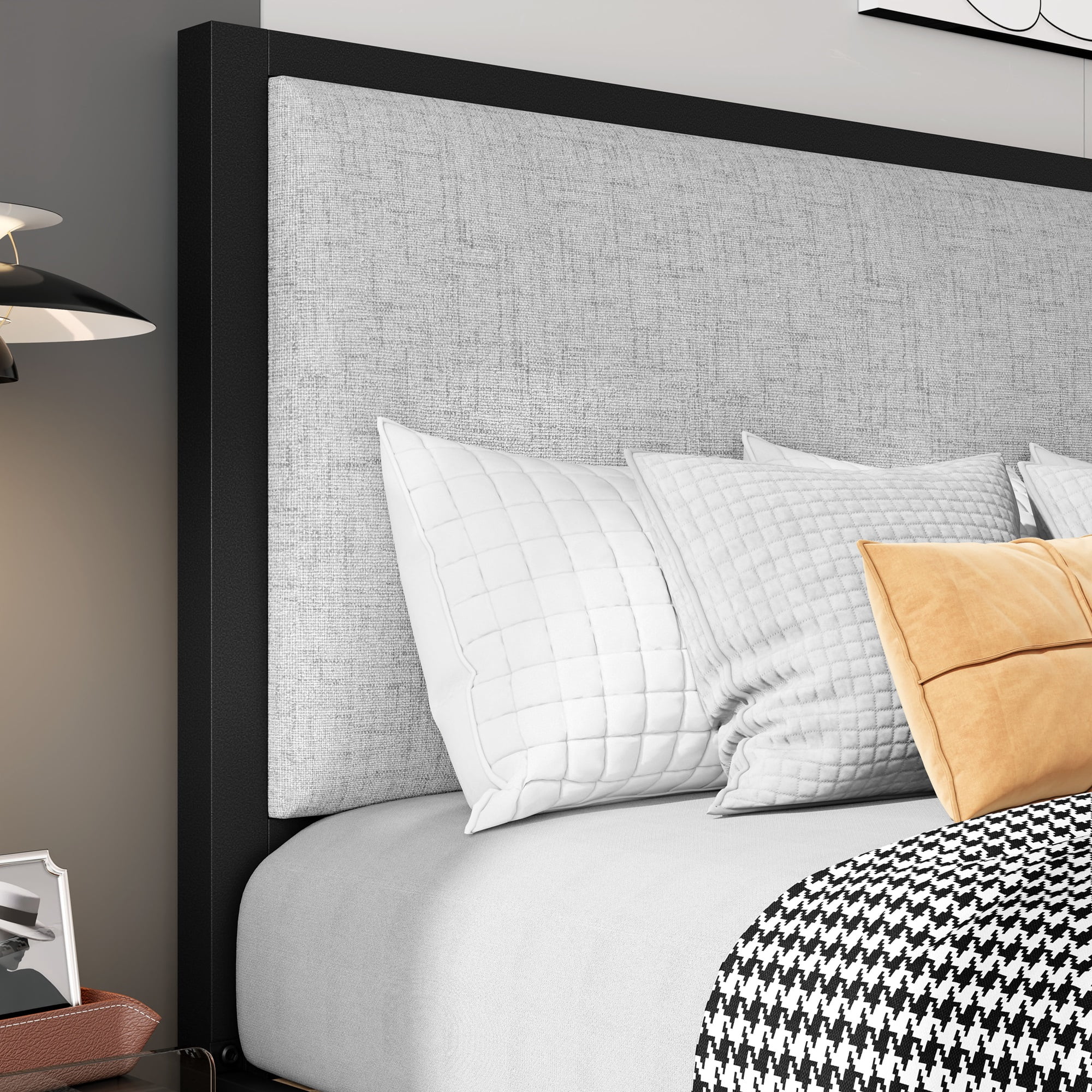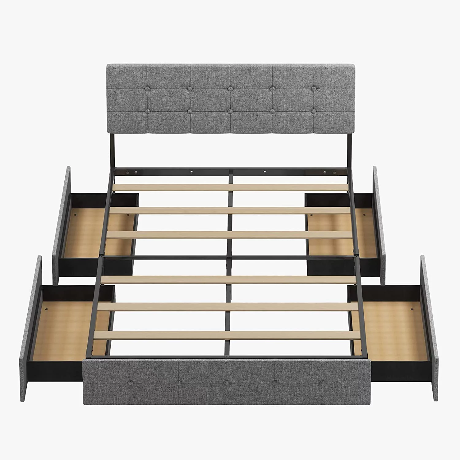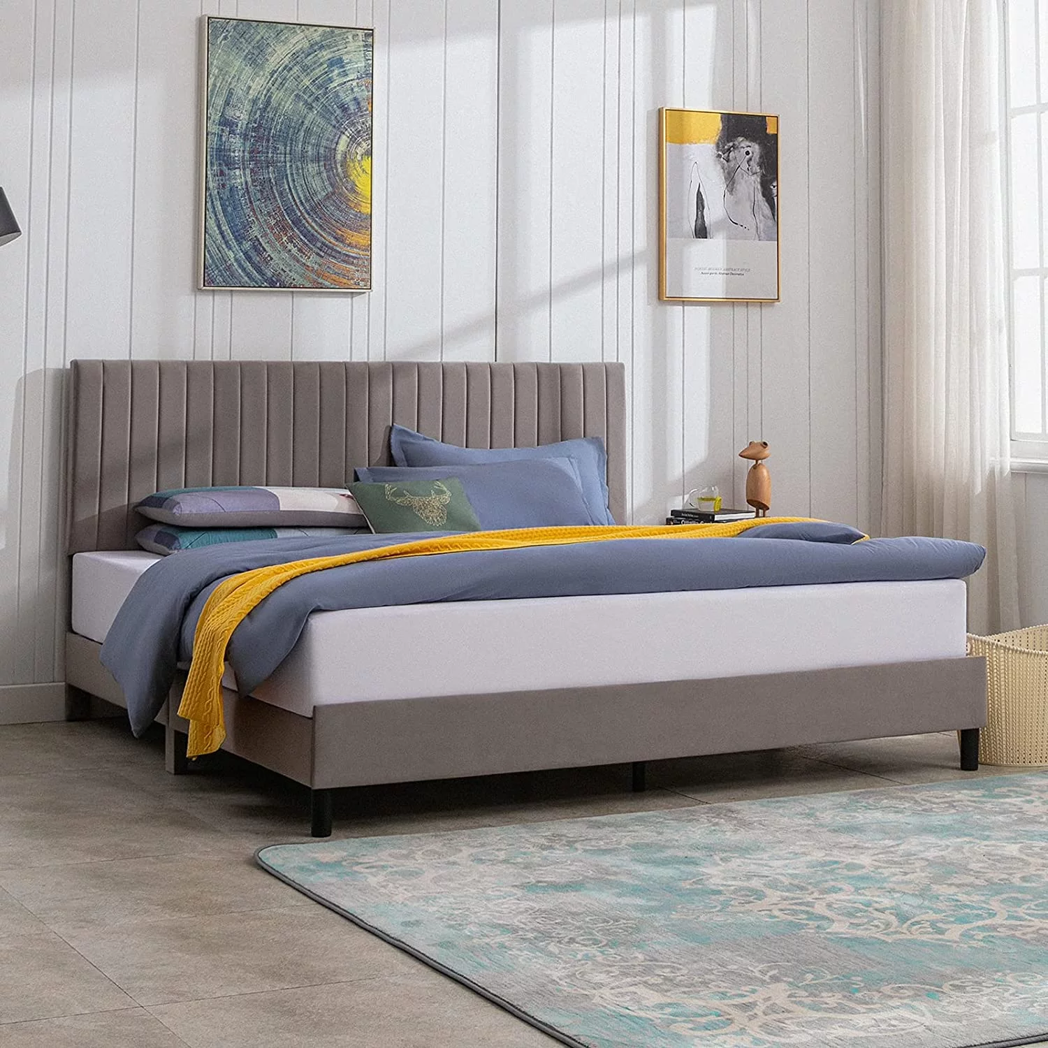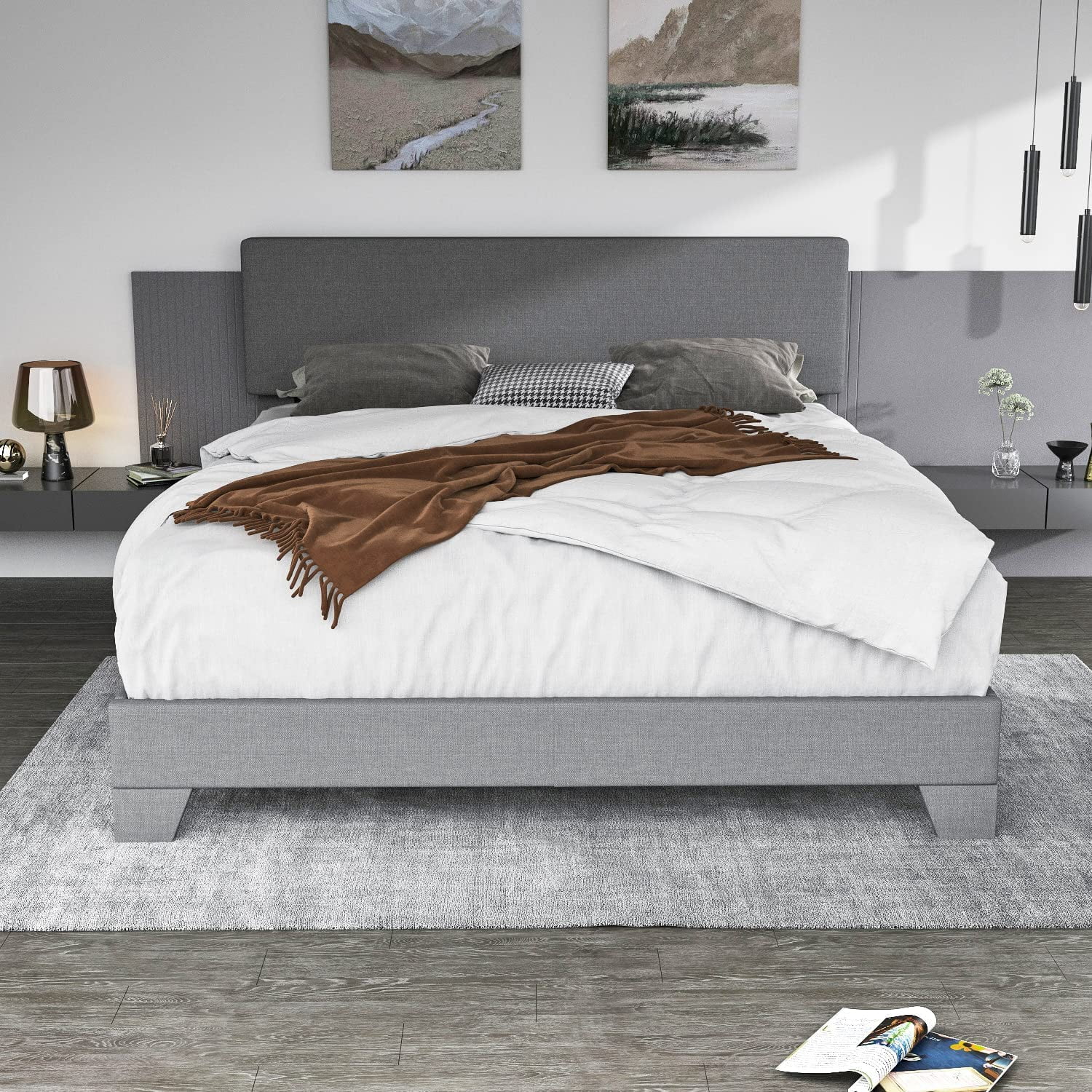 SHA CERLIN Grey King Size Platform Bed Frame with Fabric Headboard & Underbed Storage, Adult
