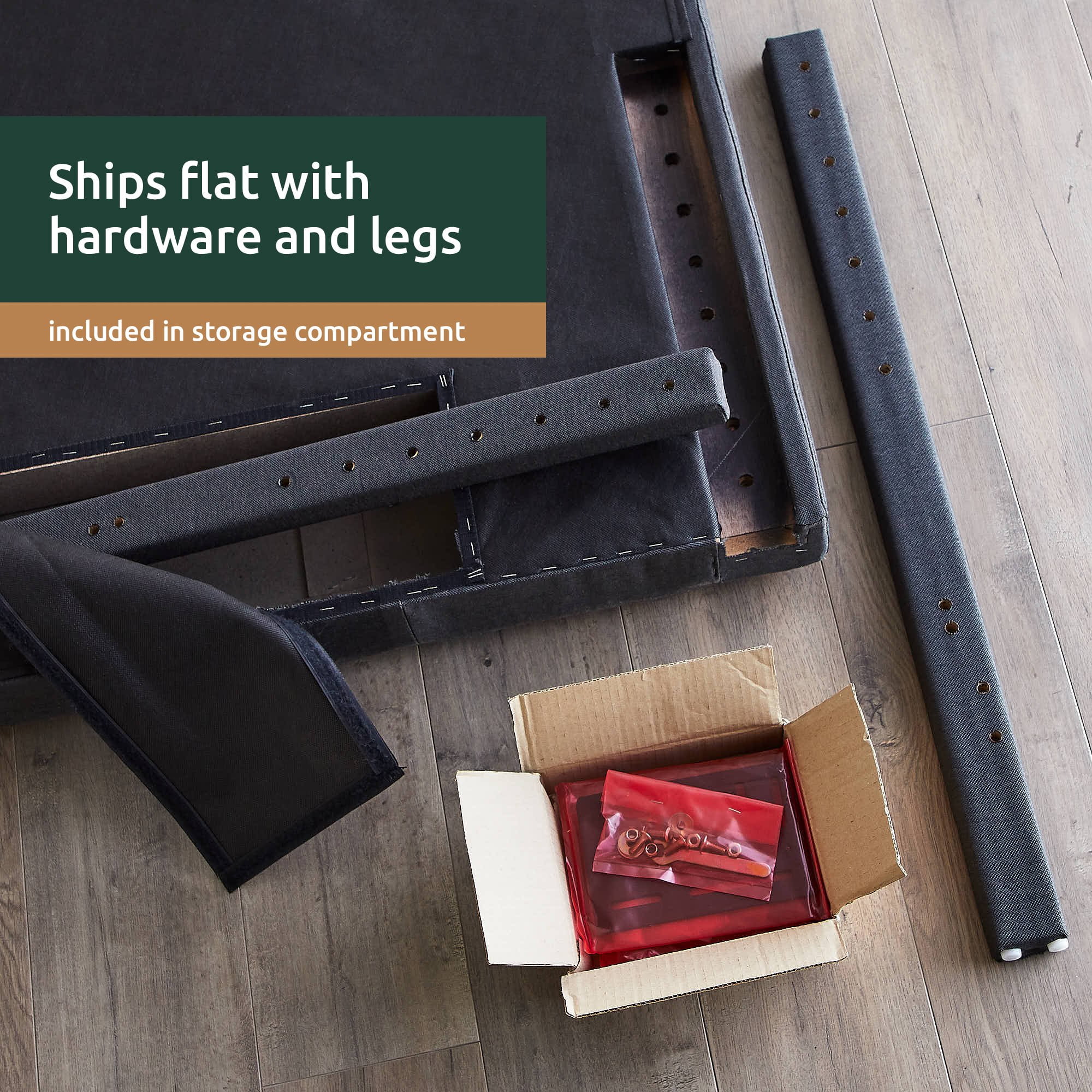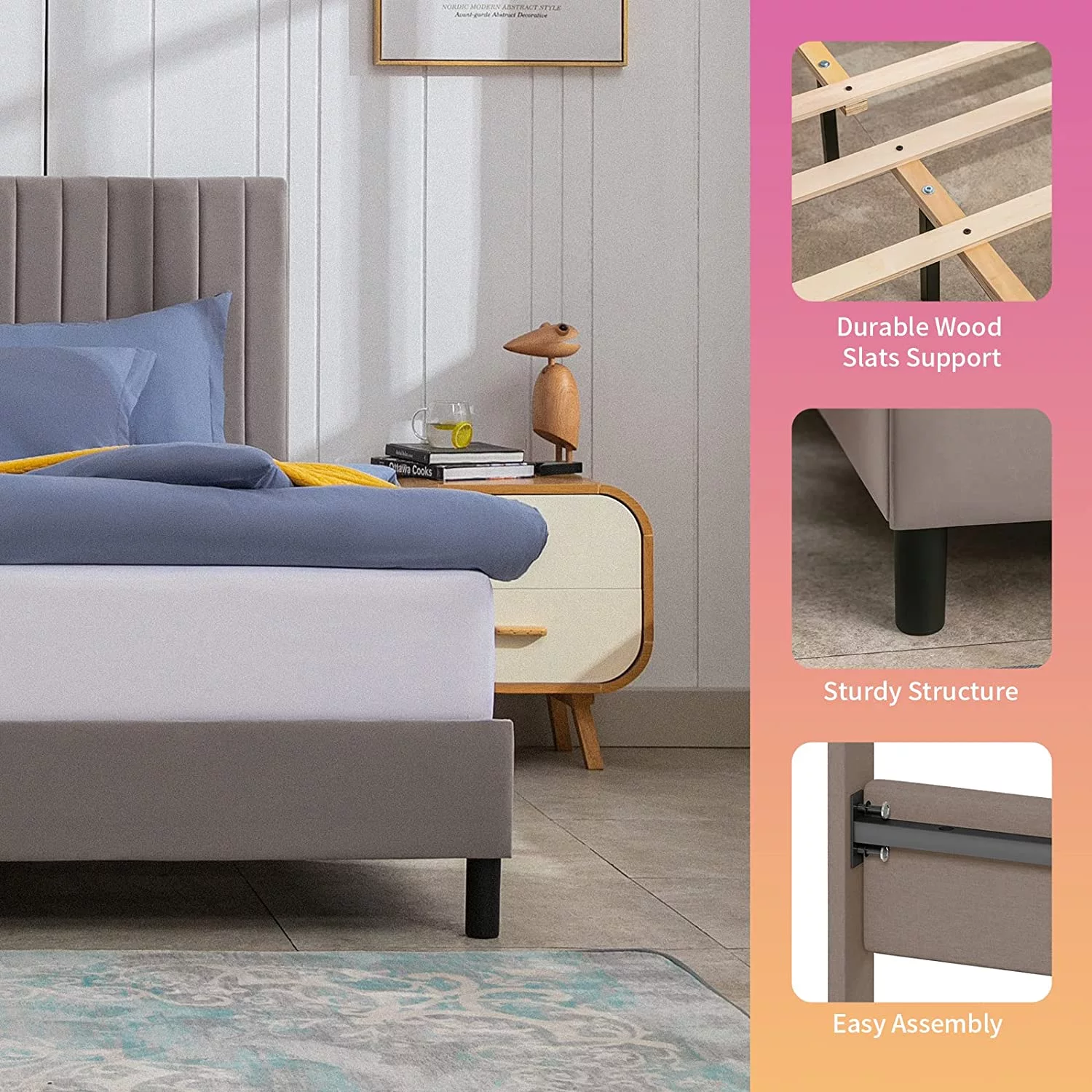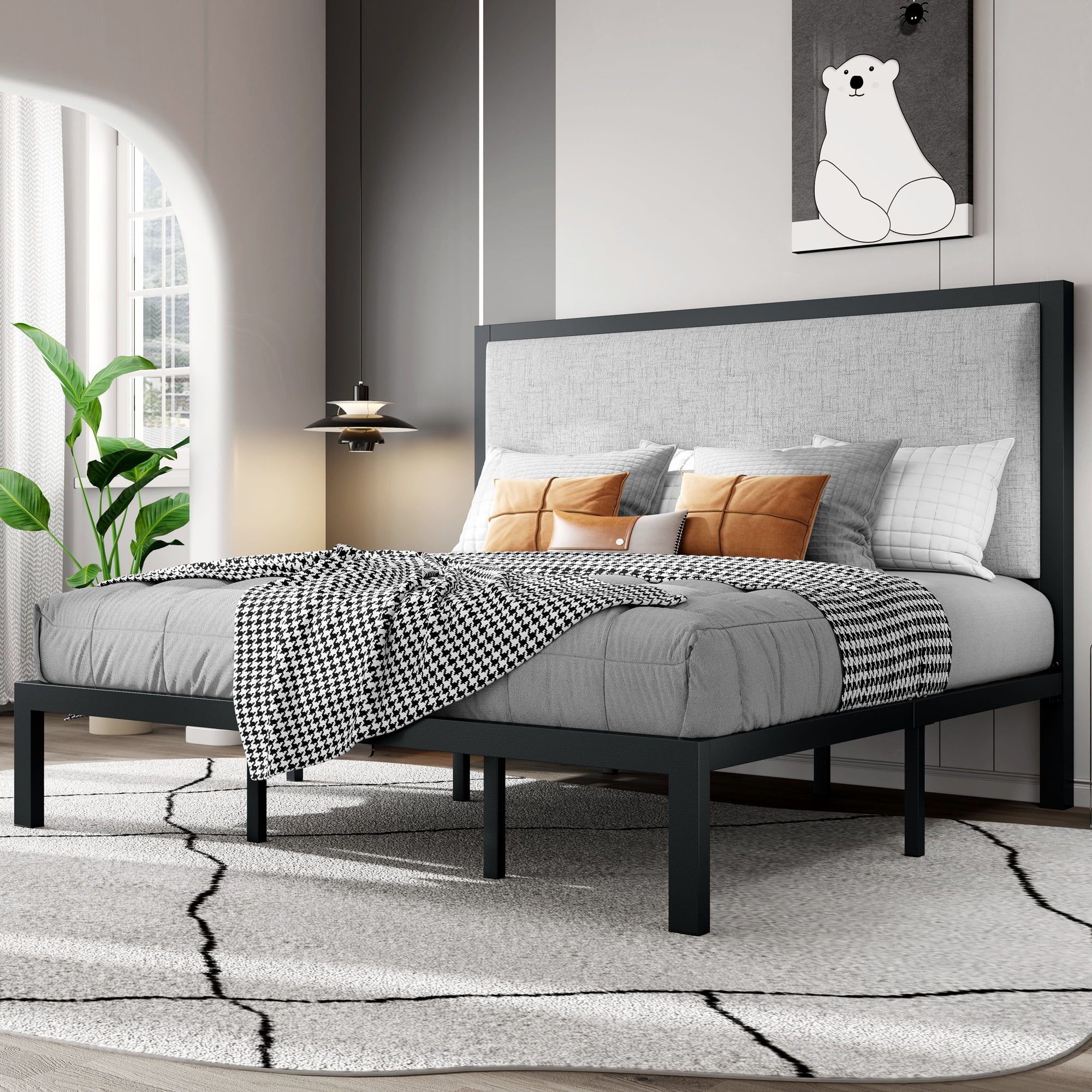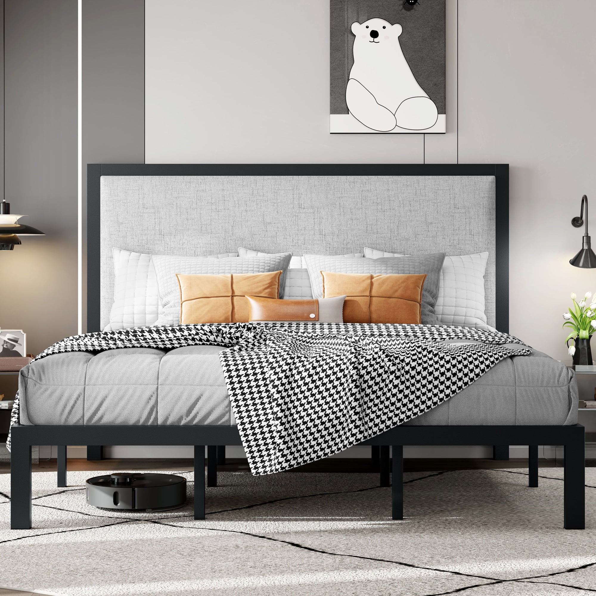SHA CERLIN Grey King Size Platform Bed Frame with Fabric Headboard & Underbed Storage, Adult