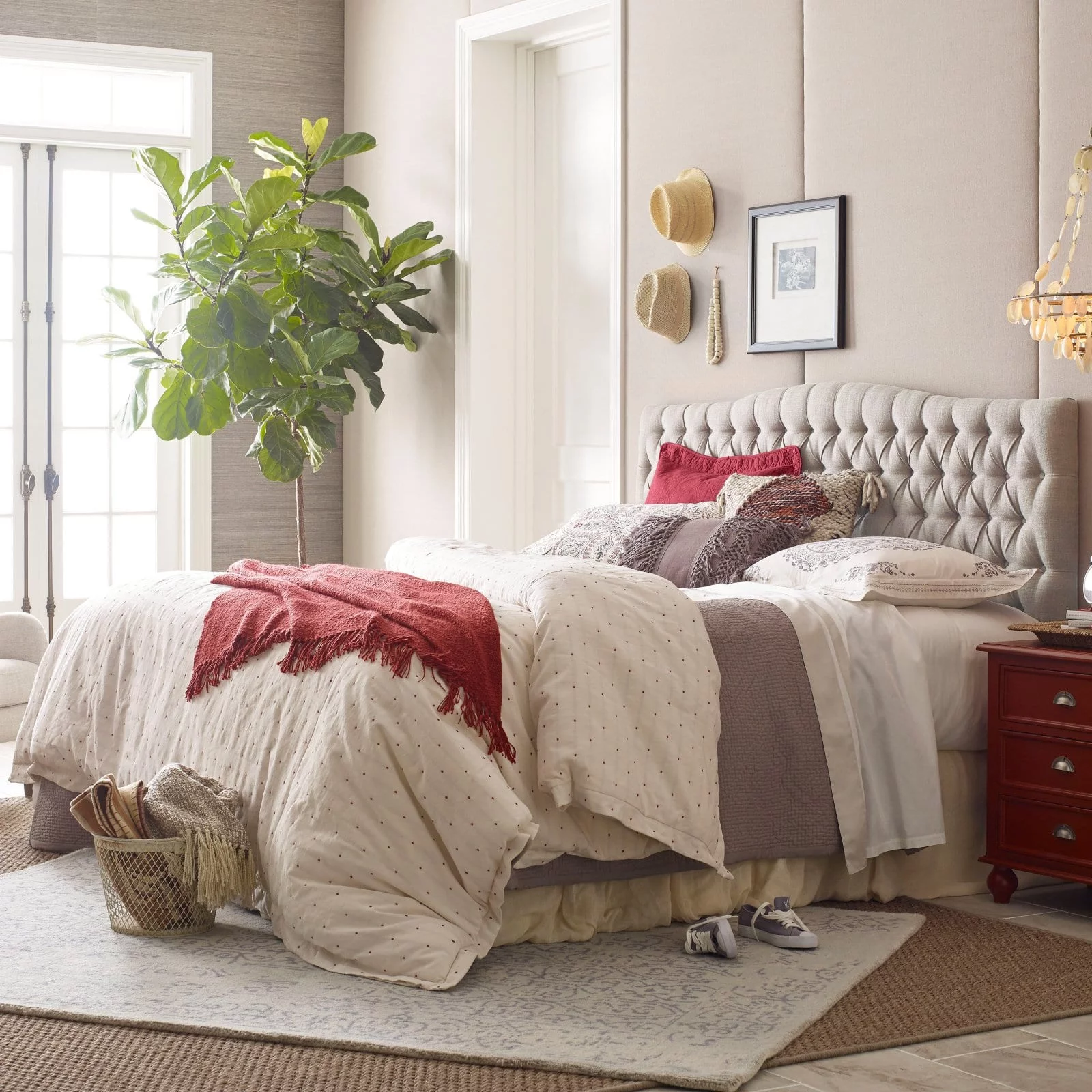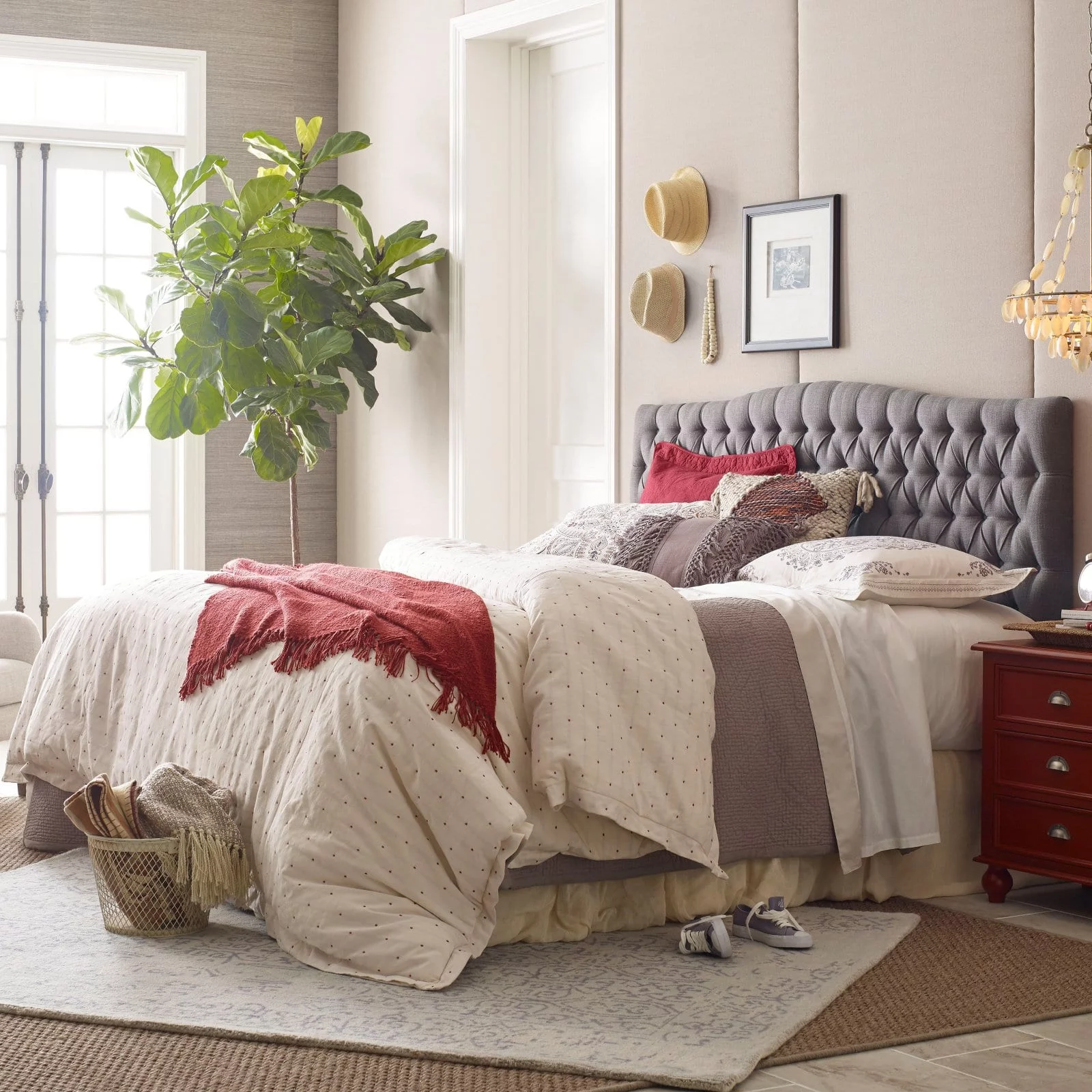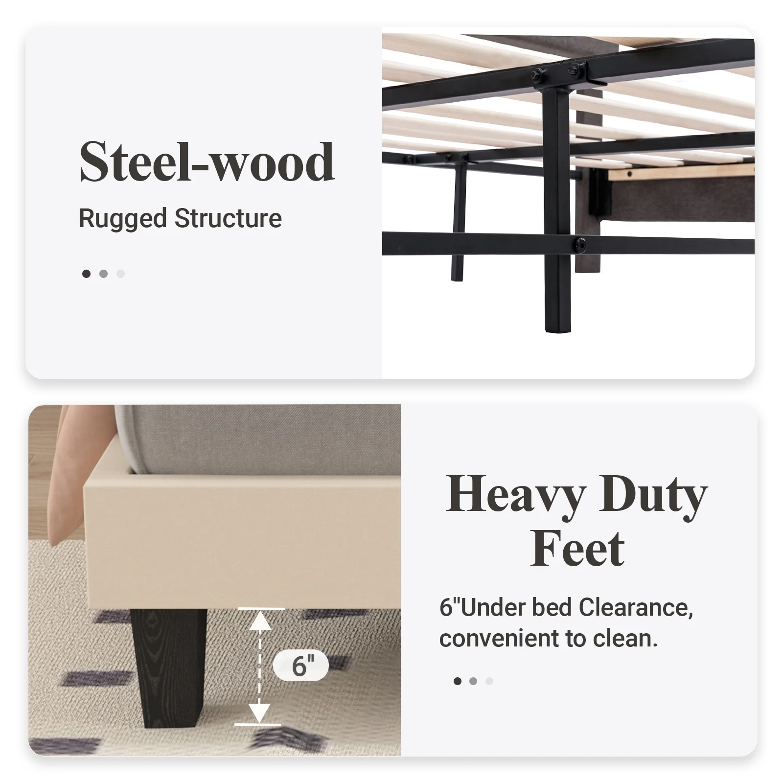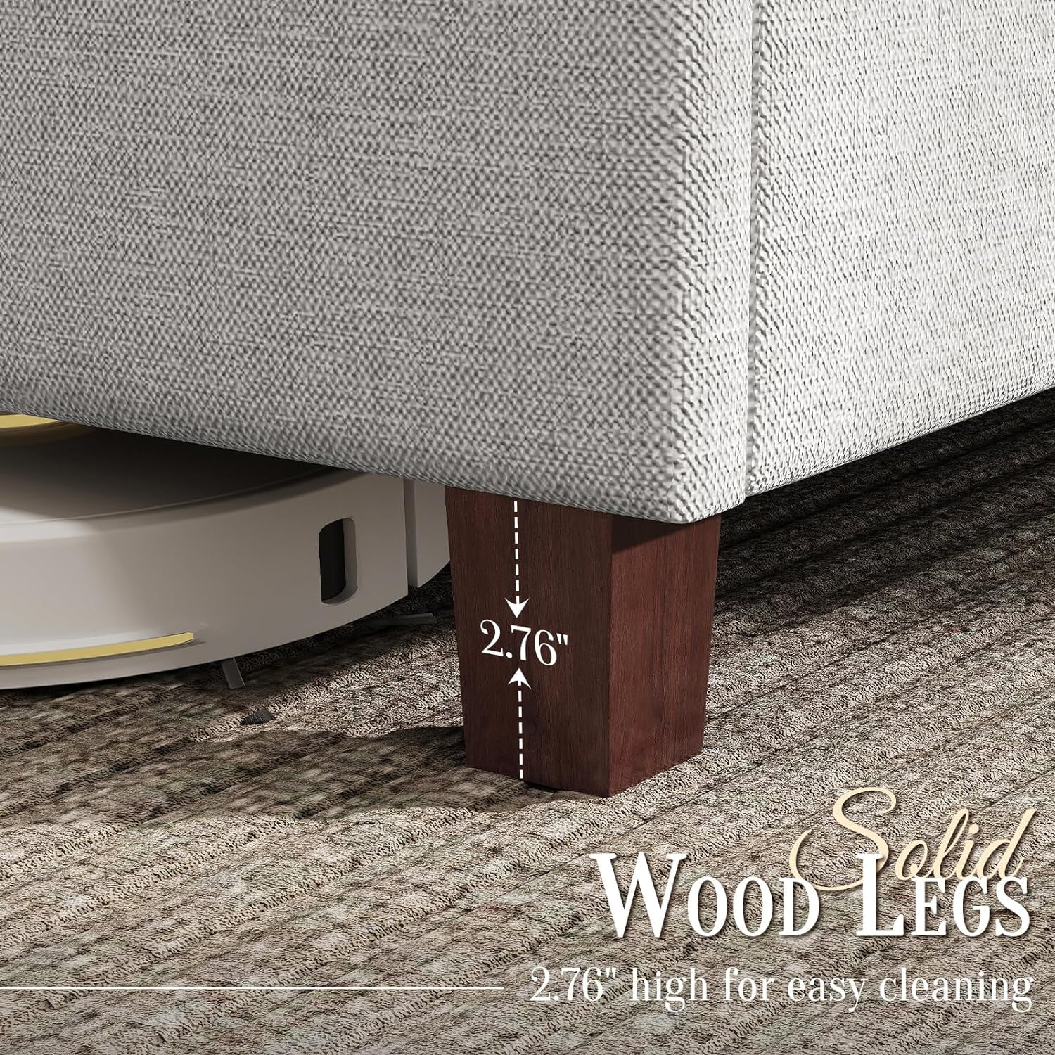 SHA CERLIN Grey King Size Platform Bed Frame with Fabric Headboard & Underbed Storage, Adult