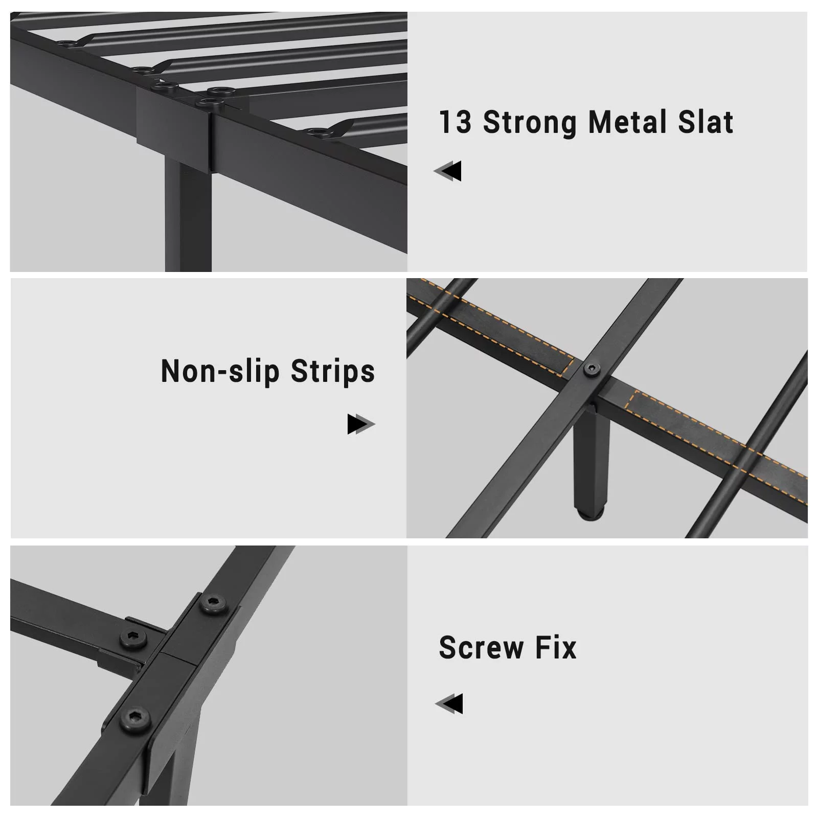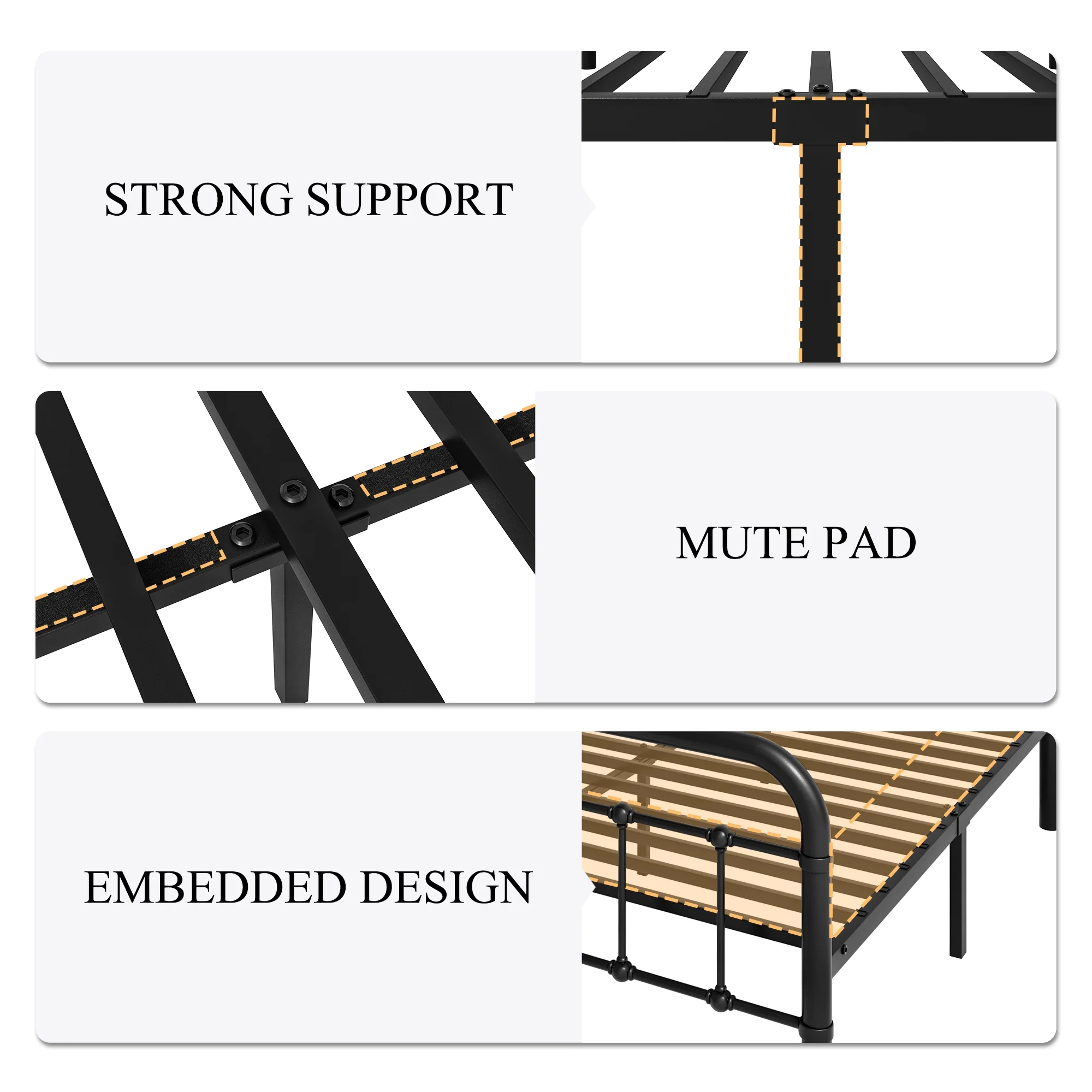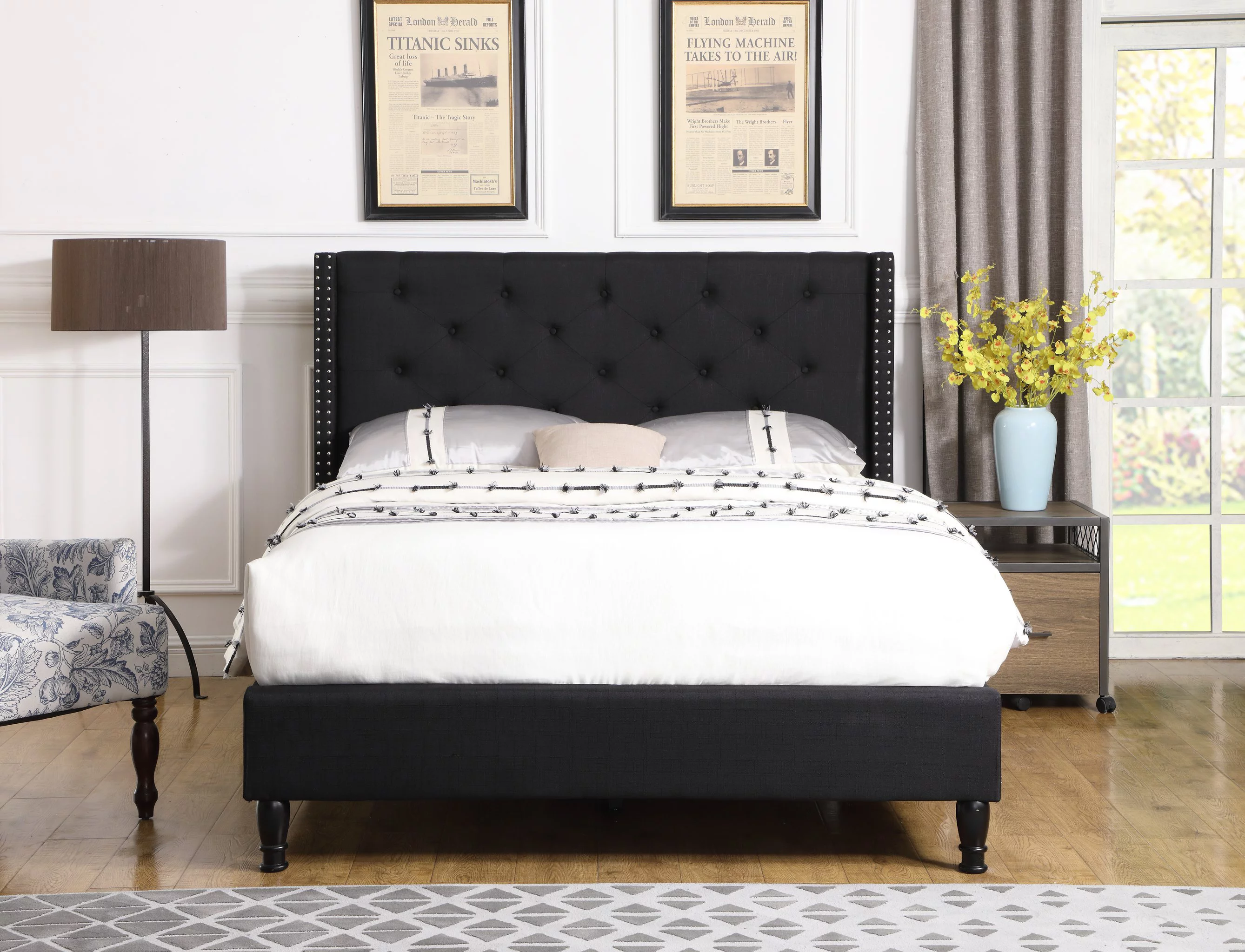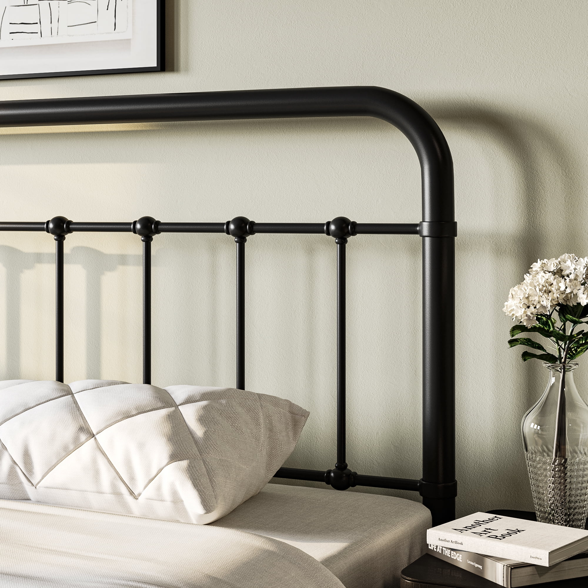 Sha Cerlin Black King Size Metal Platform Bed Frame with Vintage Headboard & Footboard, Adult