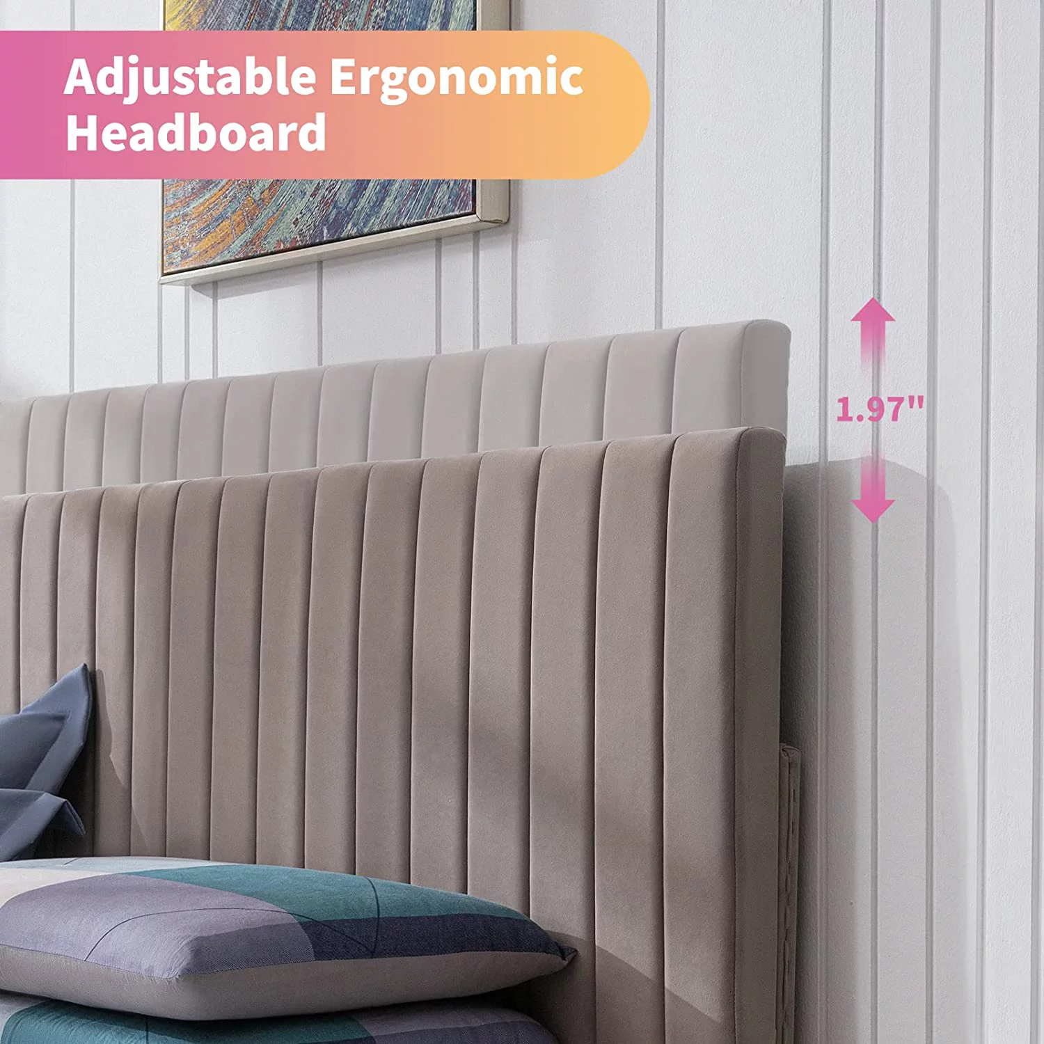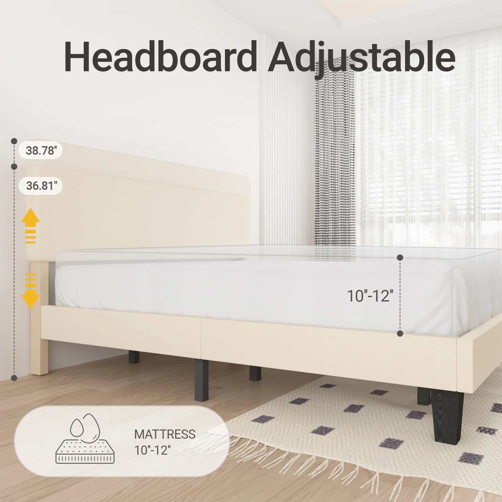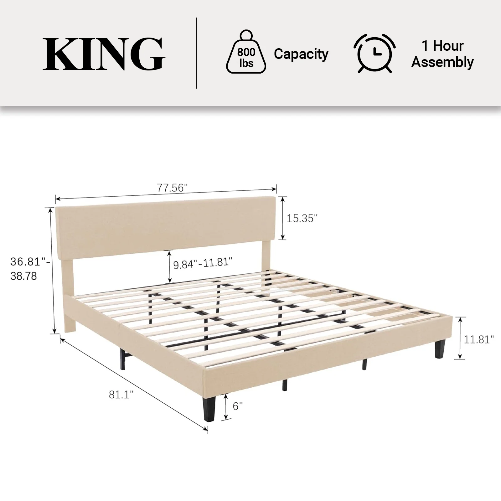 Zinus Raymond 38" Wood Platform Bed Frame with Adjustable Upholstered Headboard, King