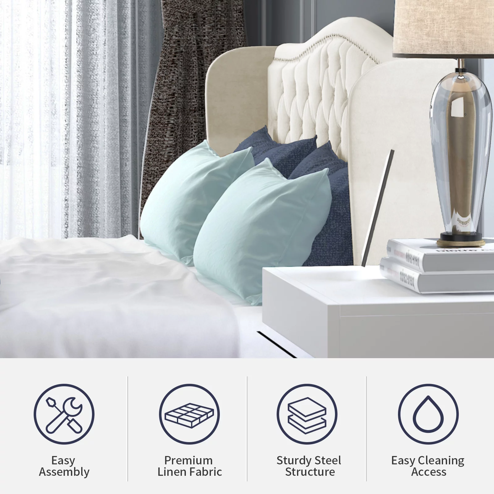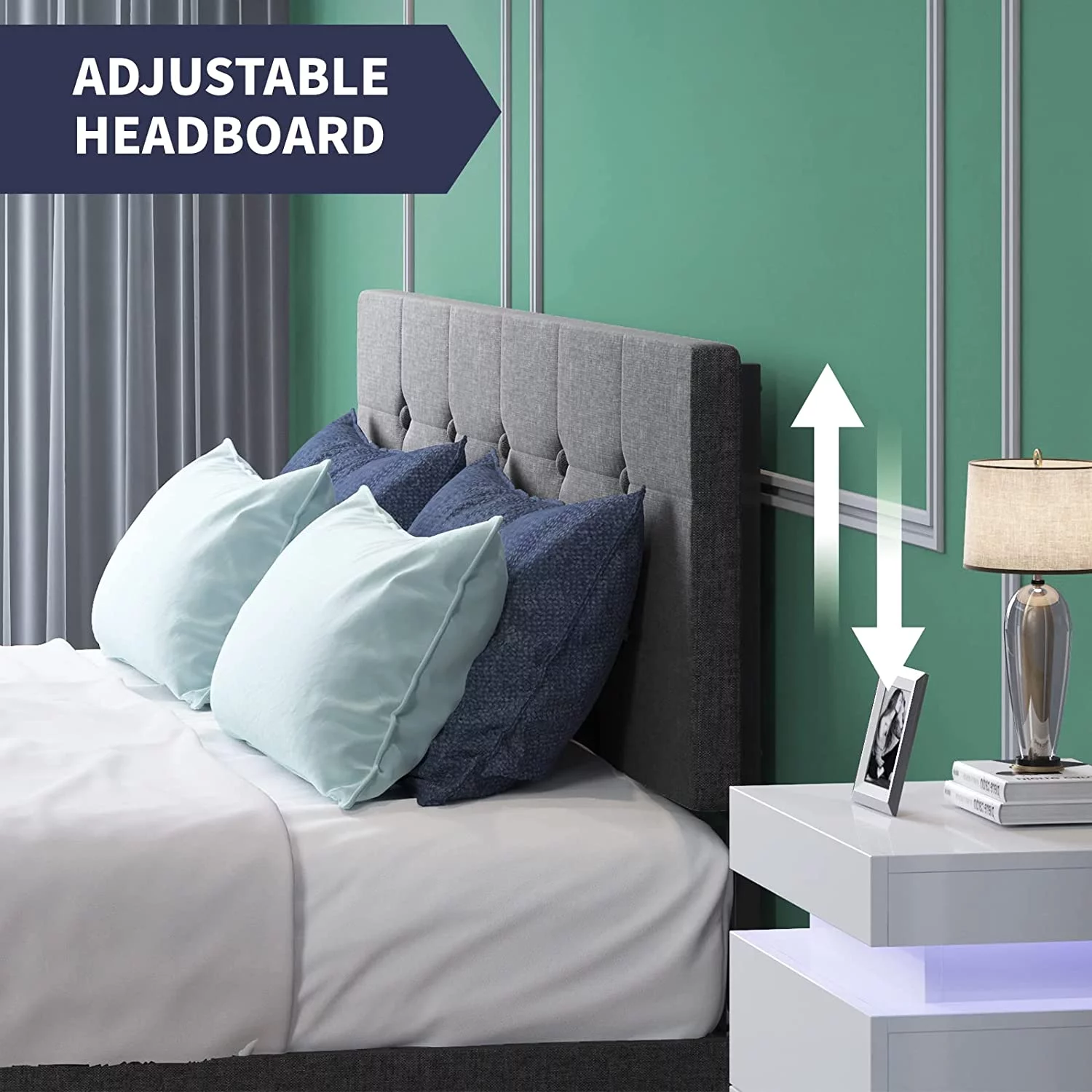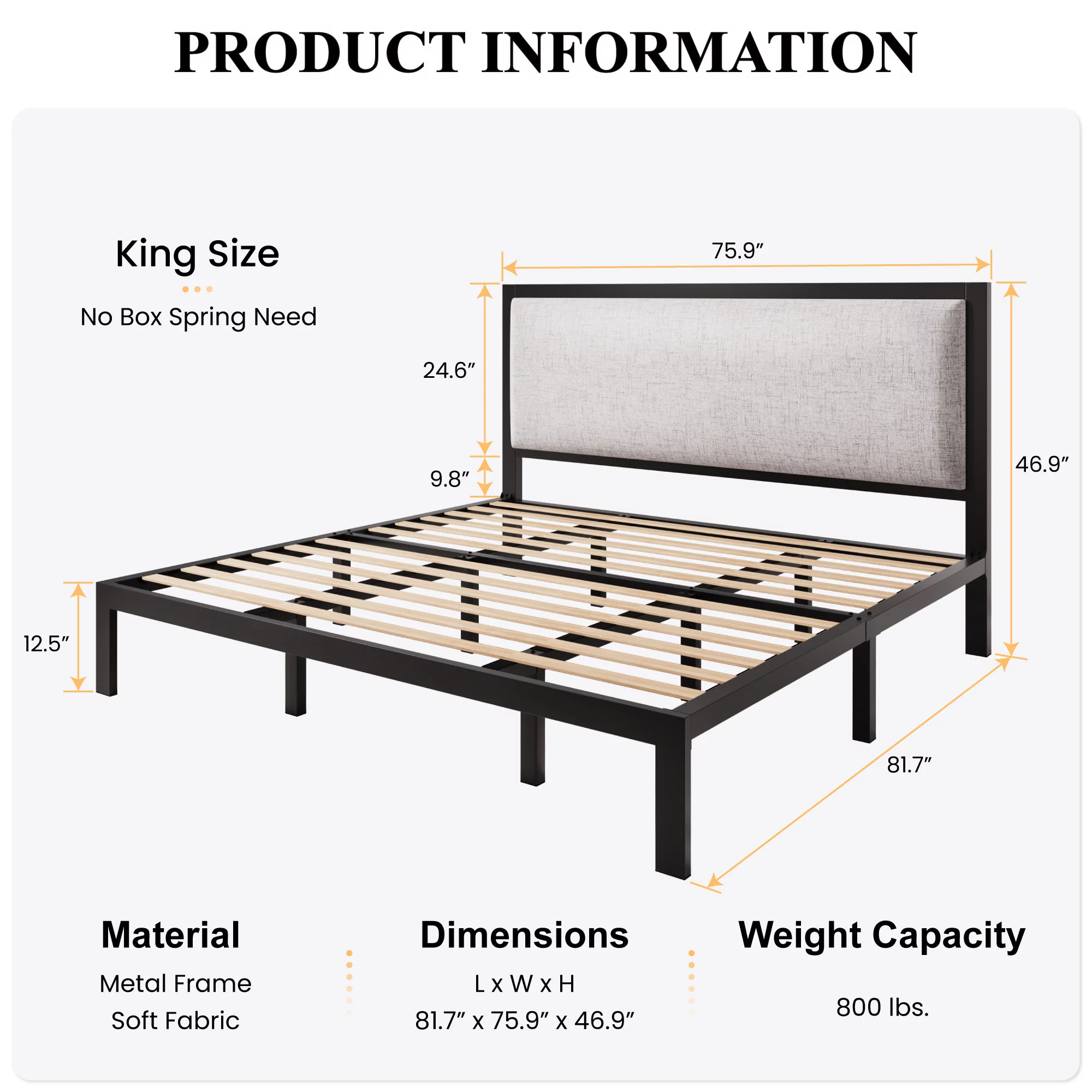Zinus Raymond 38" Wood Platform Bed Frame with Adjustable Upholstered Headboard, King