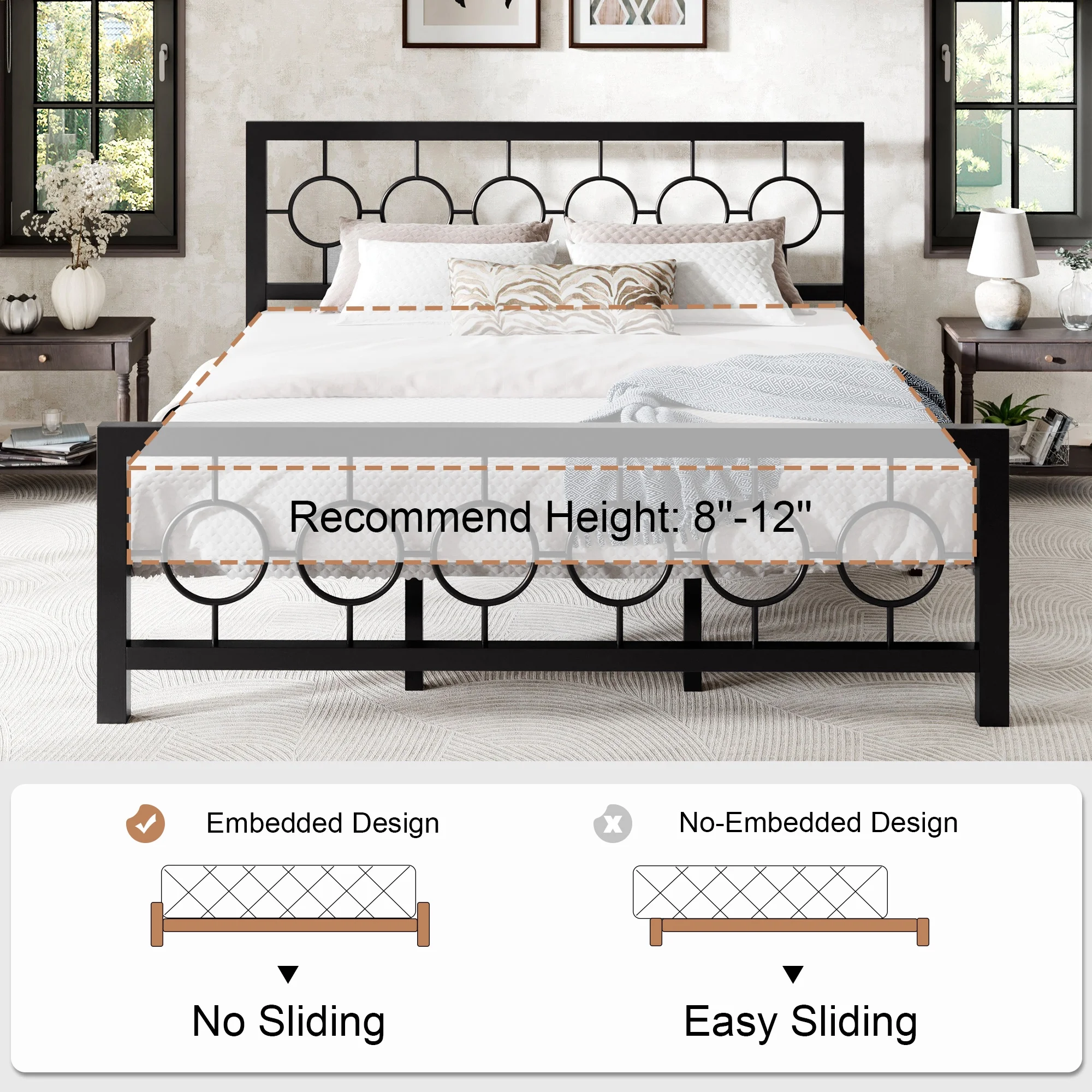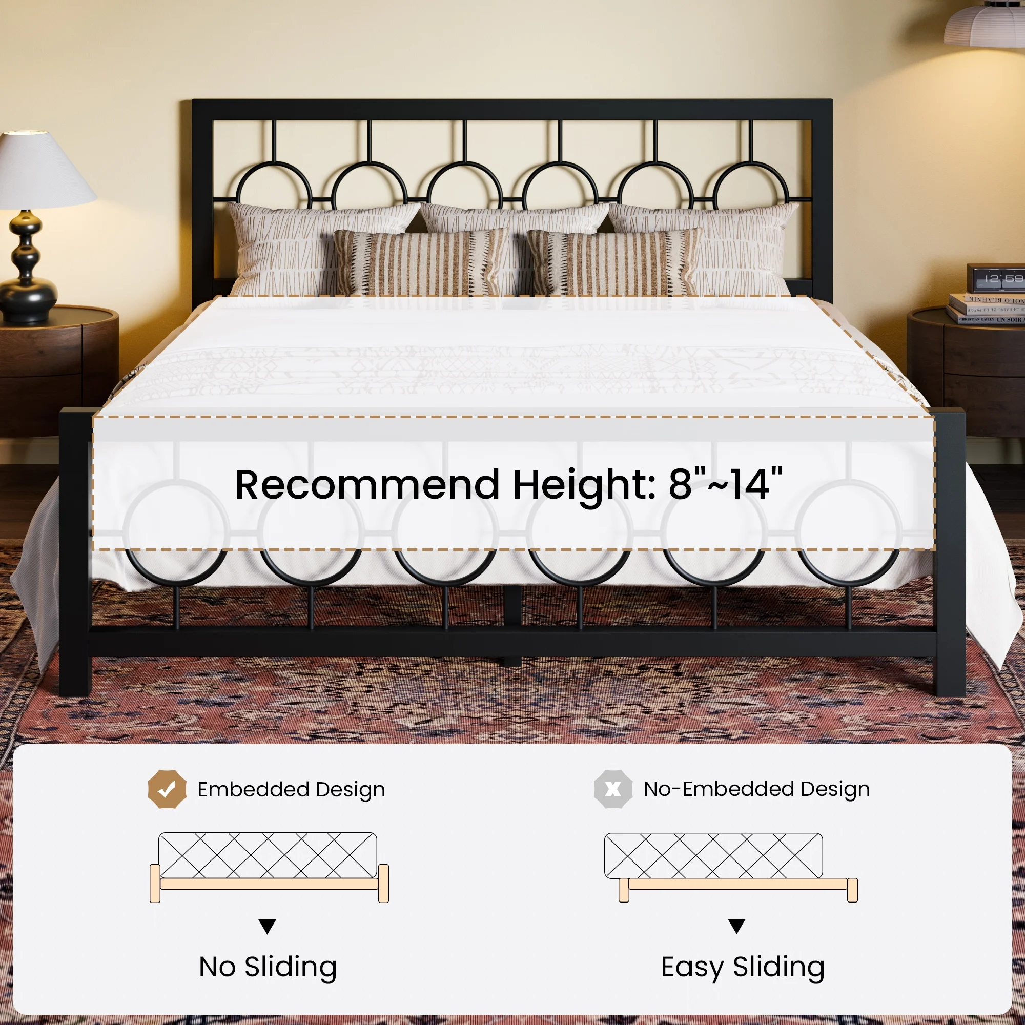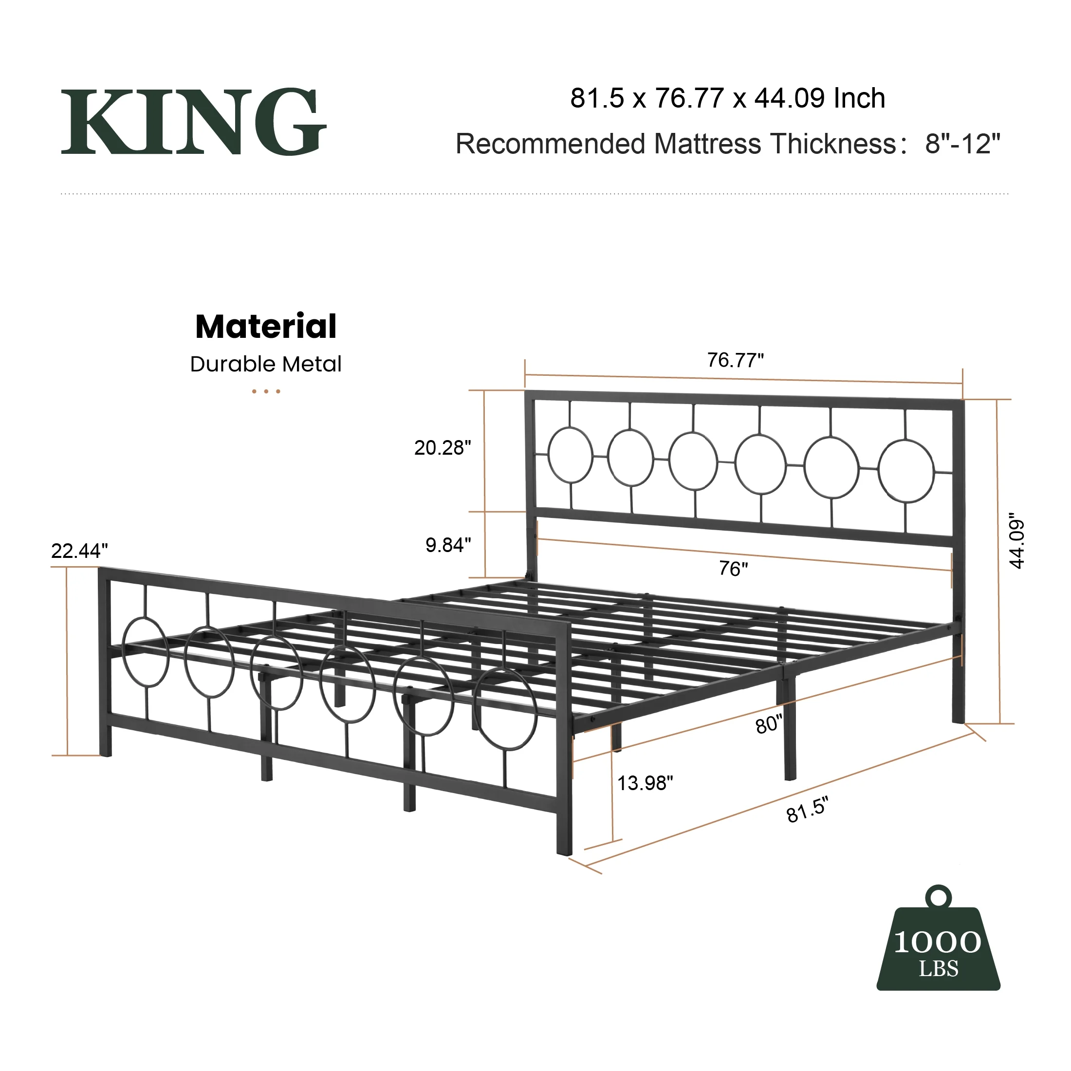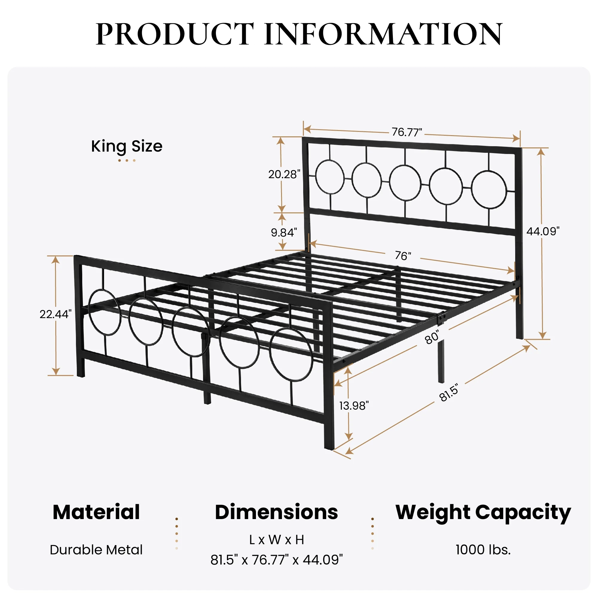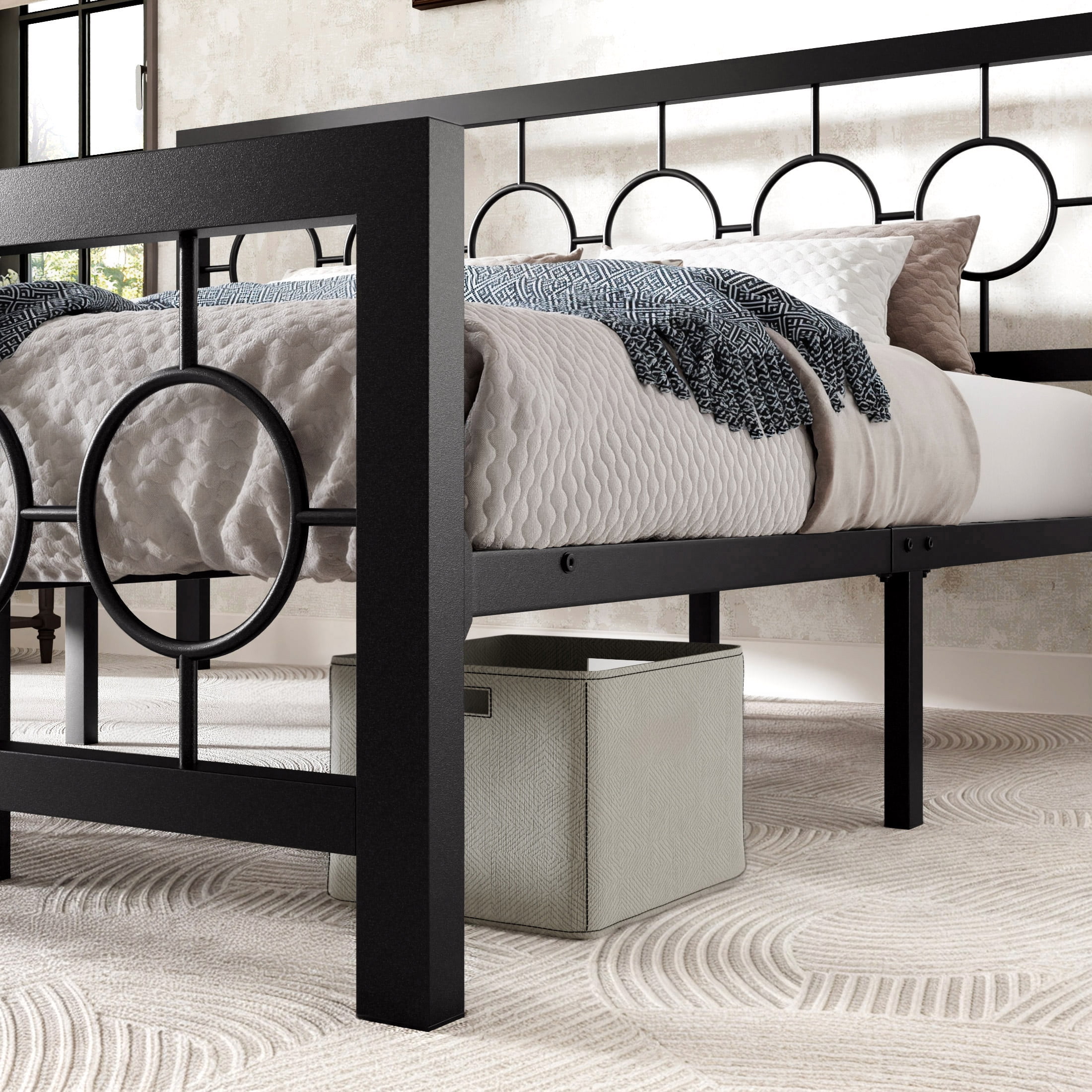 Amolife Black King Size Metal Platform Bed Frame with Circular Vintage Headboard & Footboard
