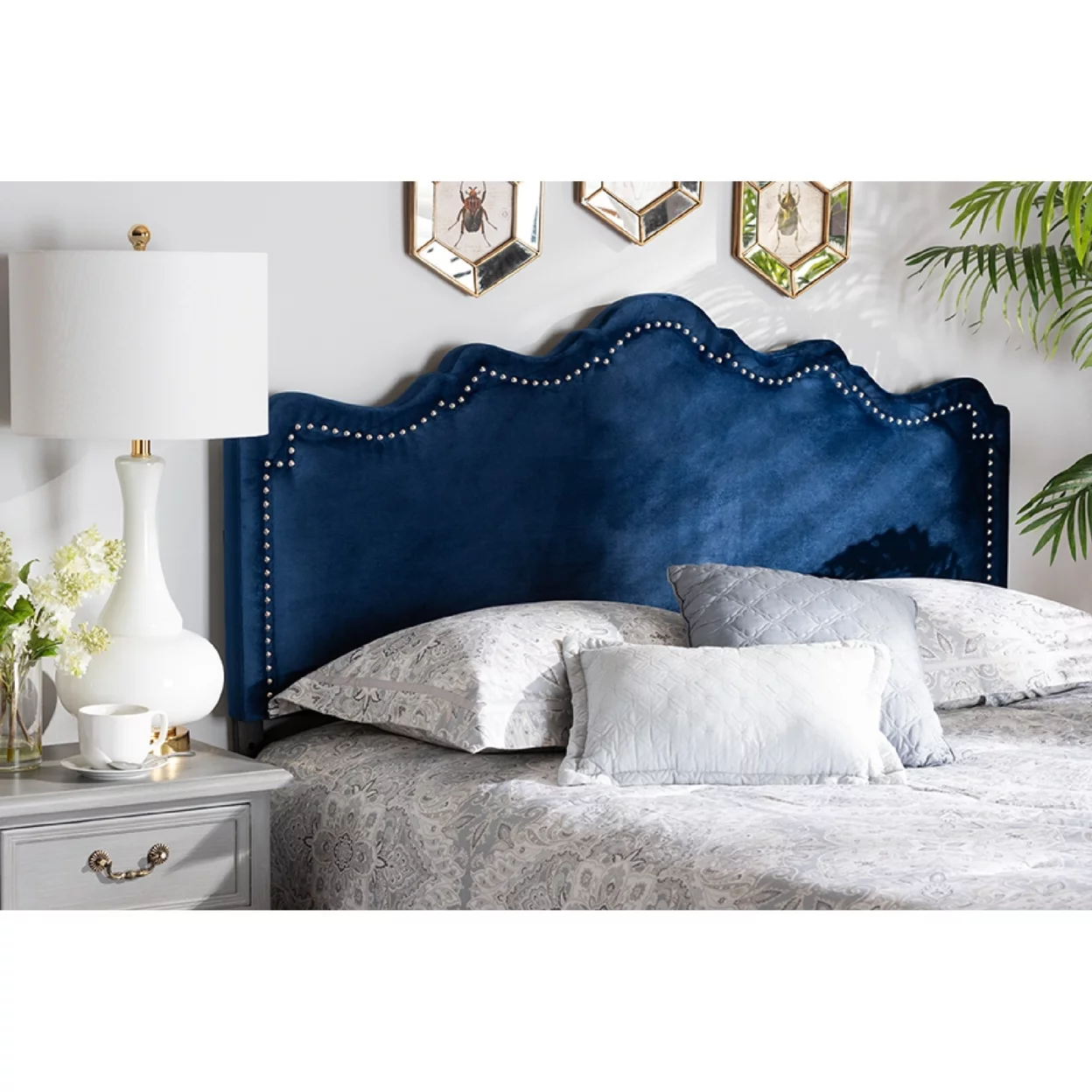 Baxton Studio Nadeen Modern and Contemporary Royal Blue Velvet Fabric Upholstered King Size Headboard,Wholesale