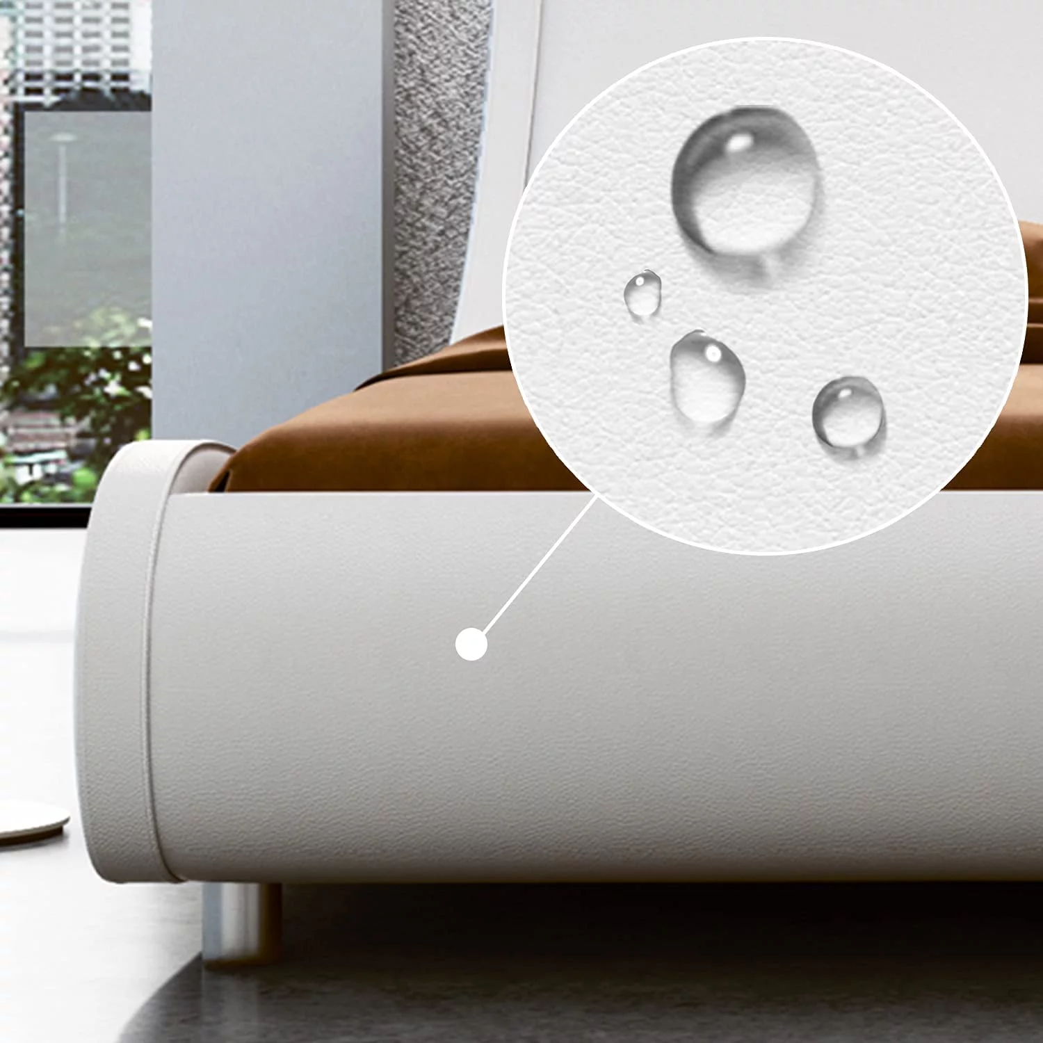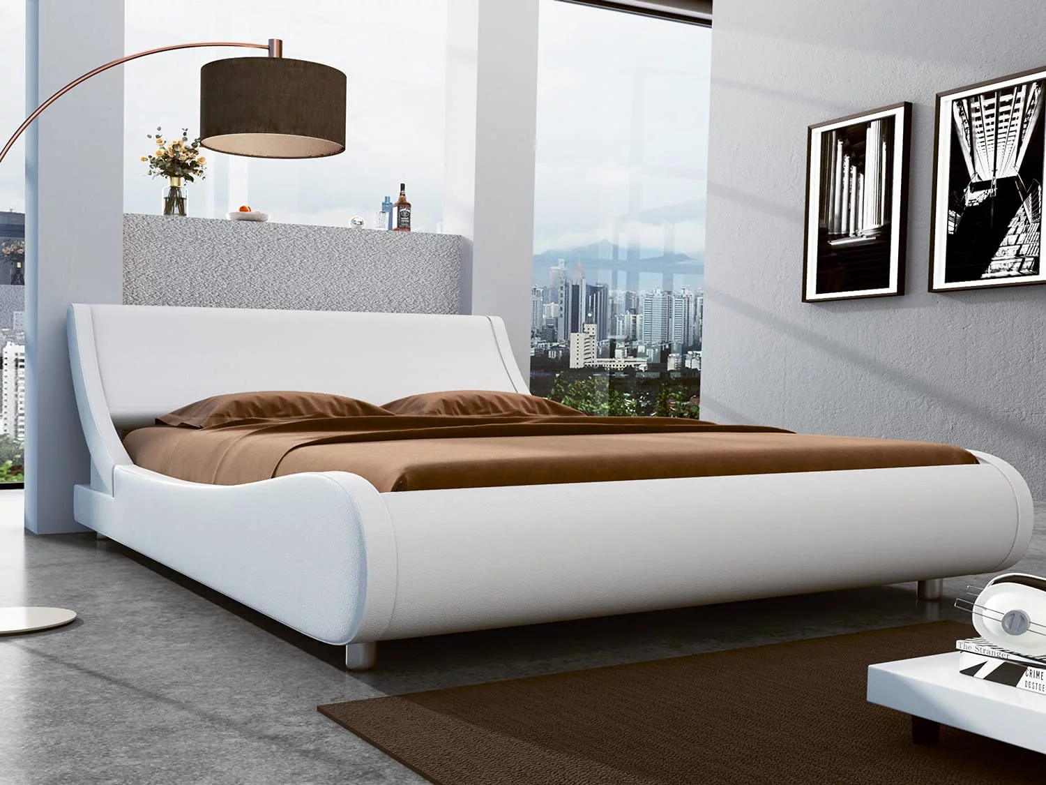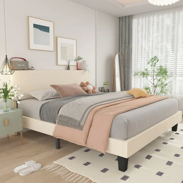 Sha Cerlin White King Platform Bed, Leather Bed Frame with Adjustable Headboard, Adults