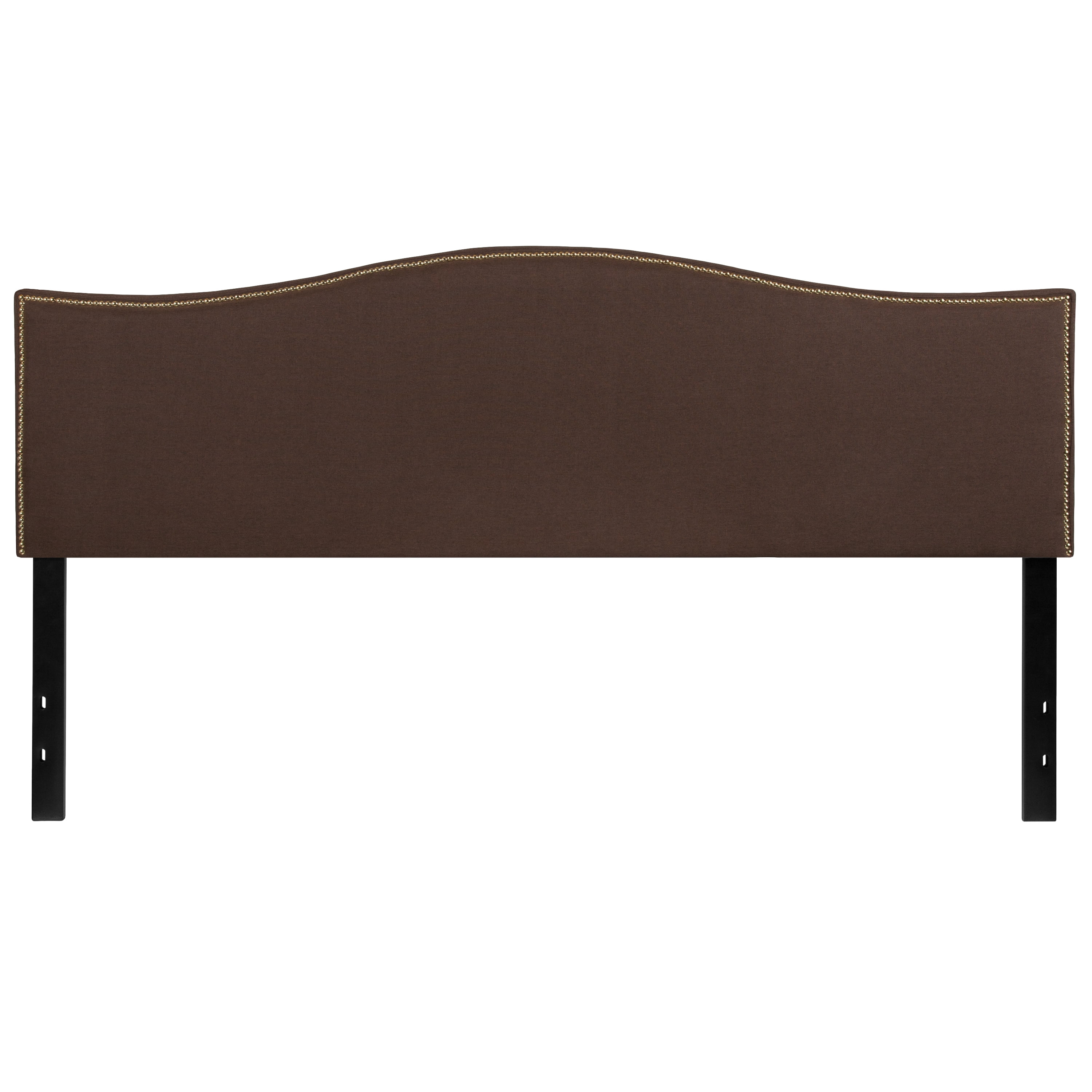 Emma + Oliver Upholstered King Size Headboard with Nailtrim in Dark Brown Fabric