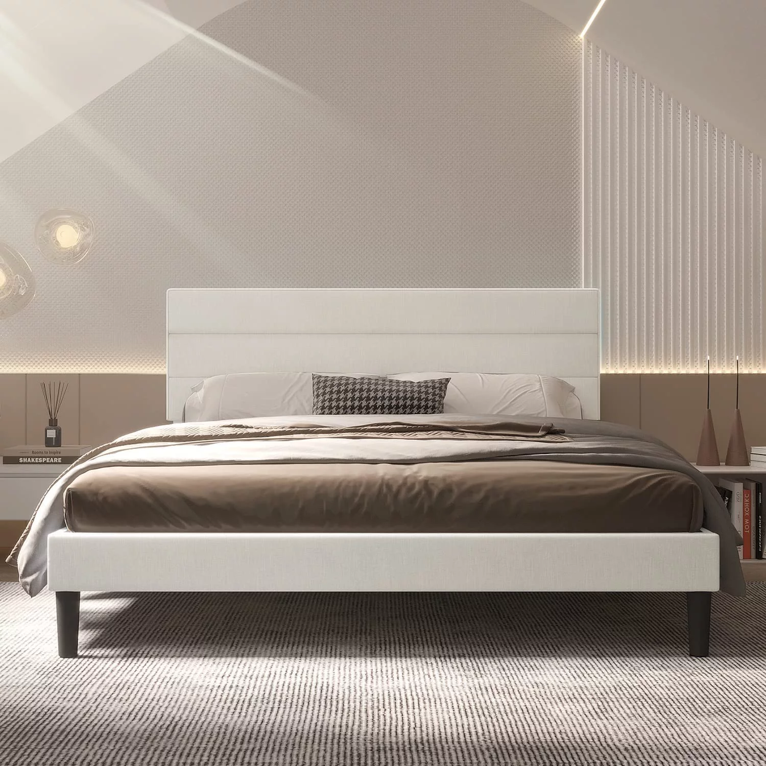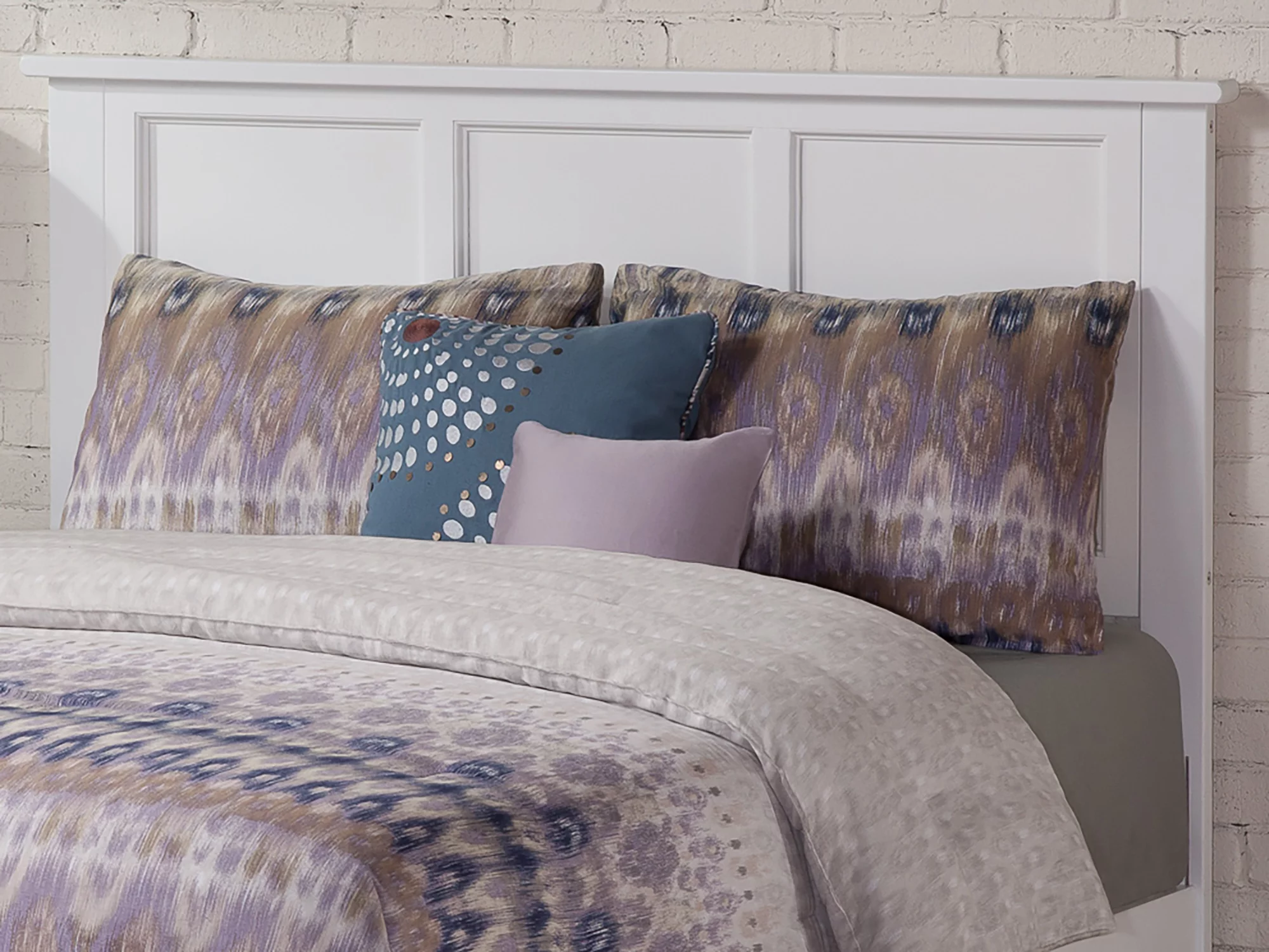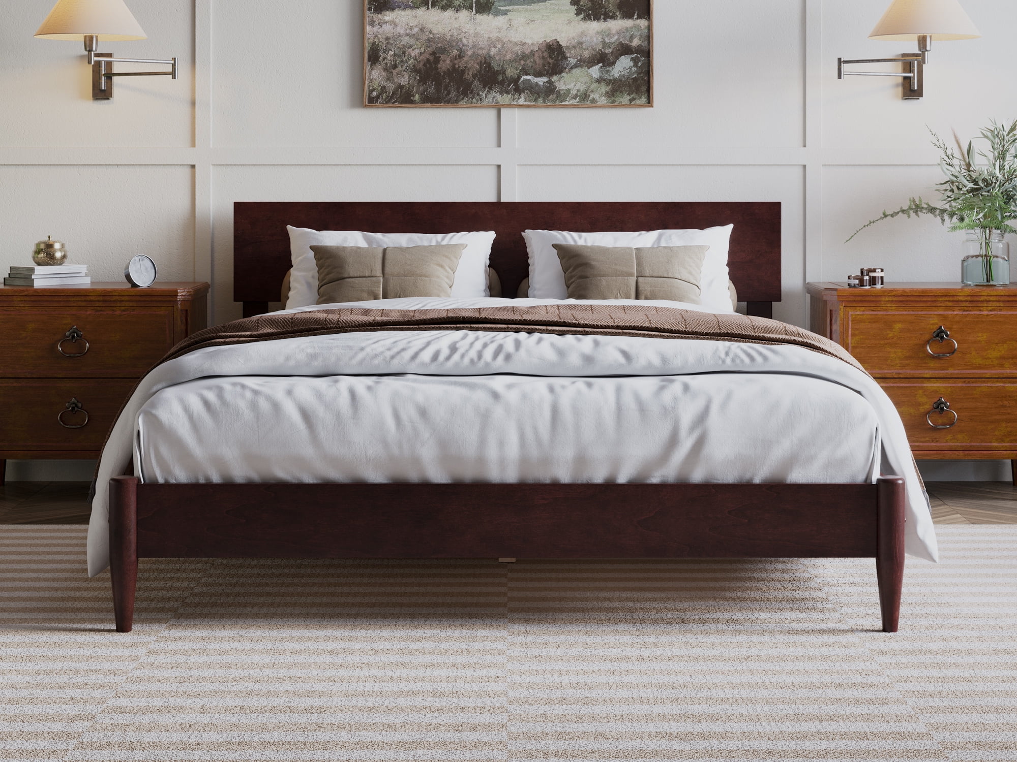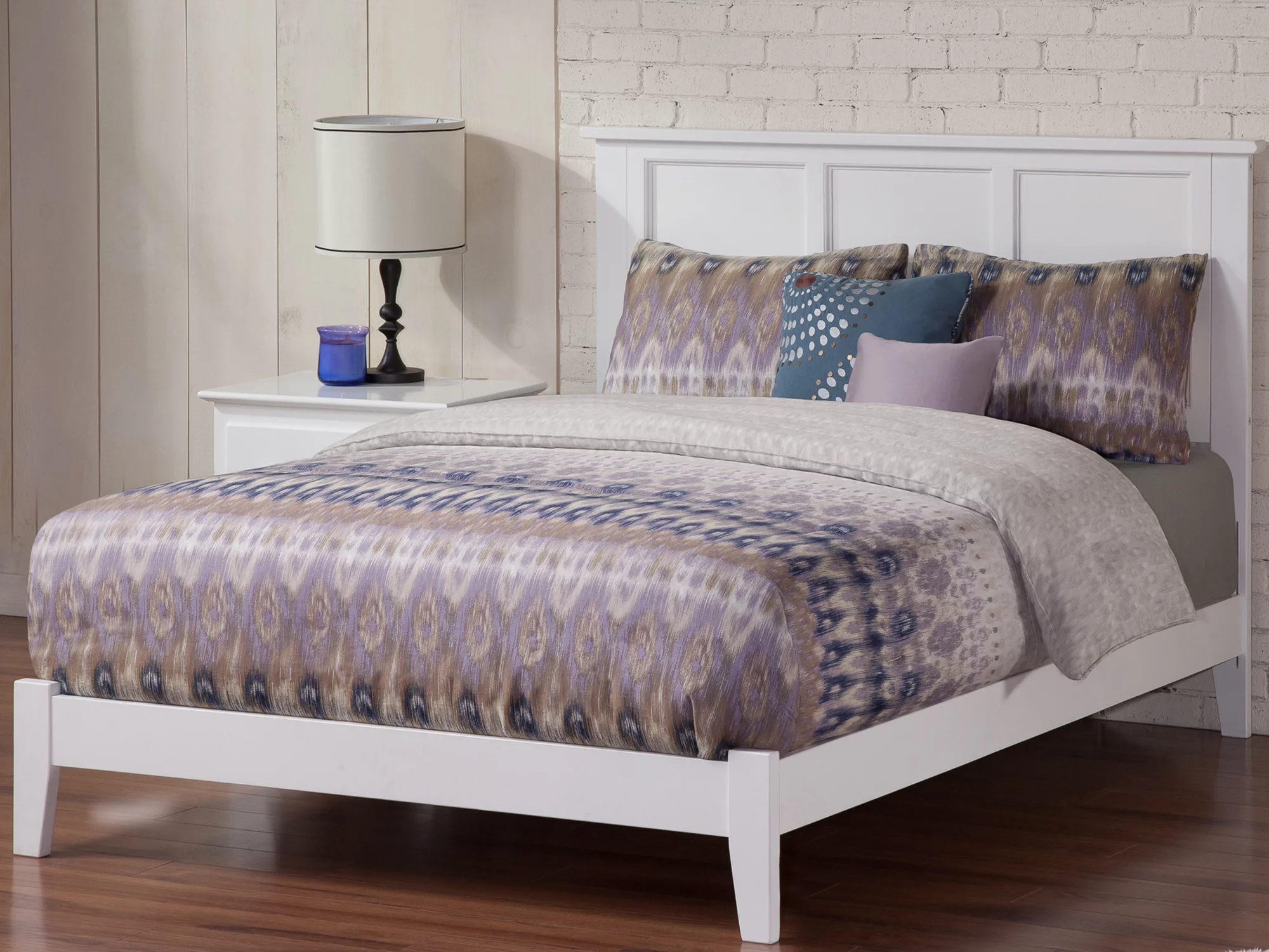 AFI Madison King Low Profile Wood Platform Bed Frame with Panel Headboard, White