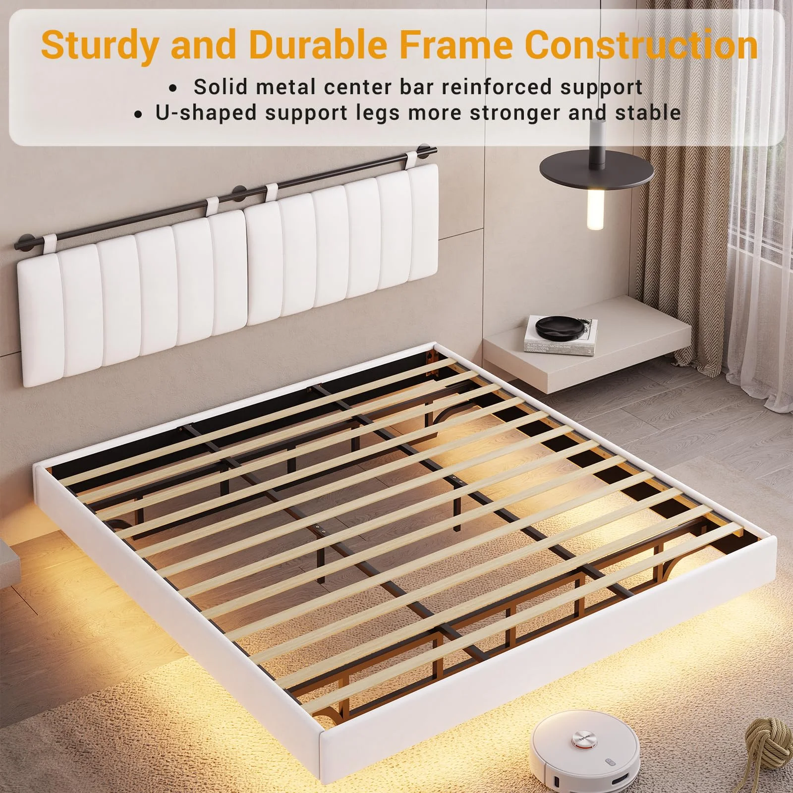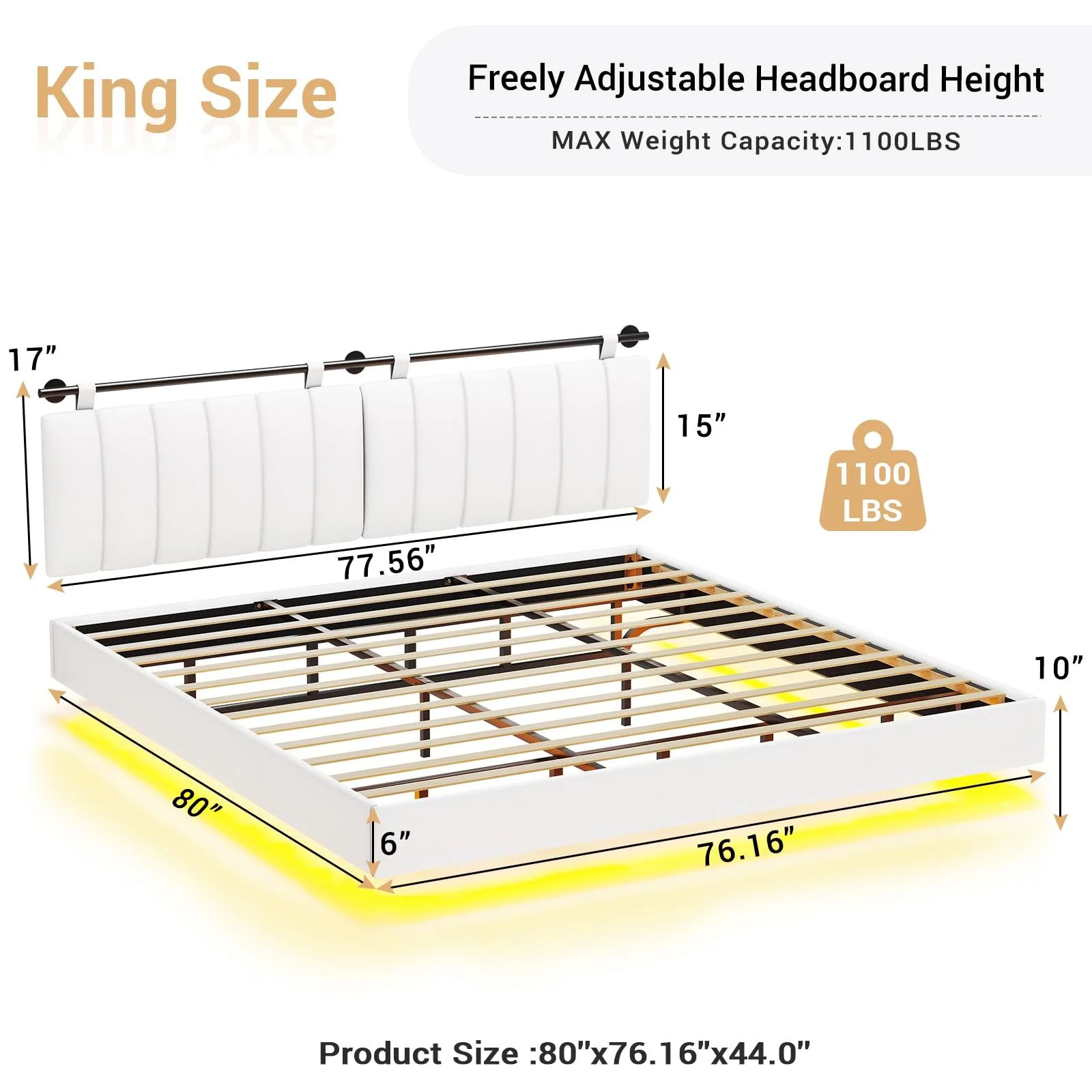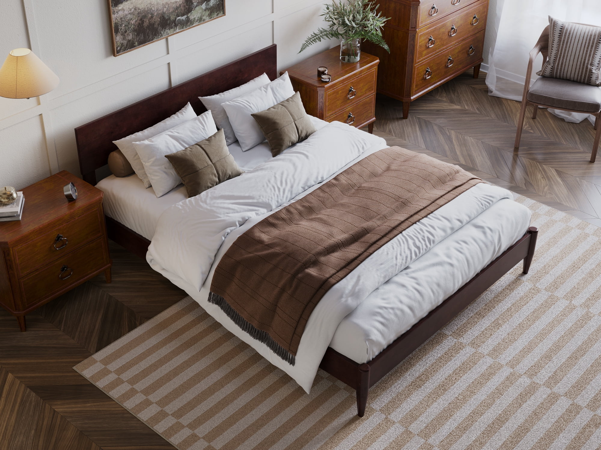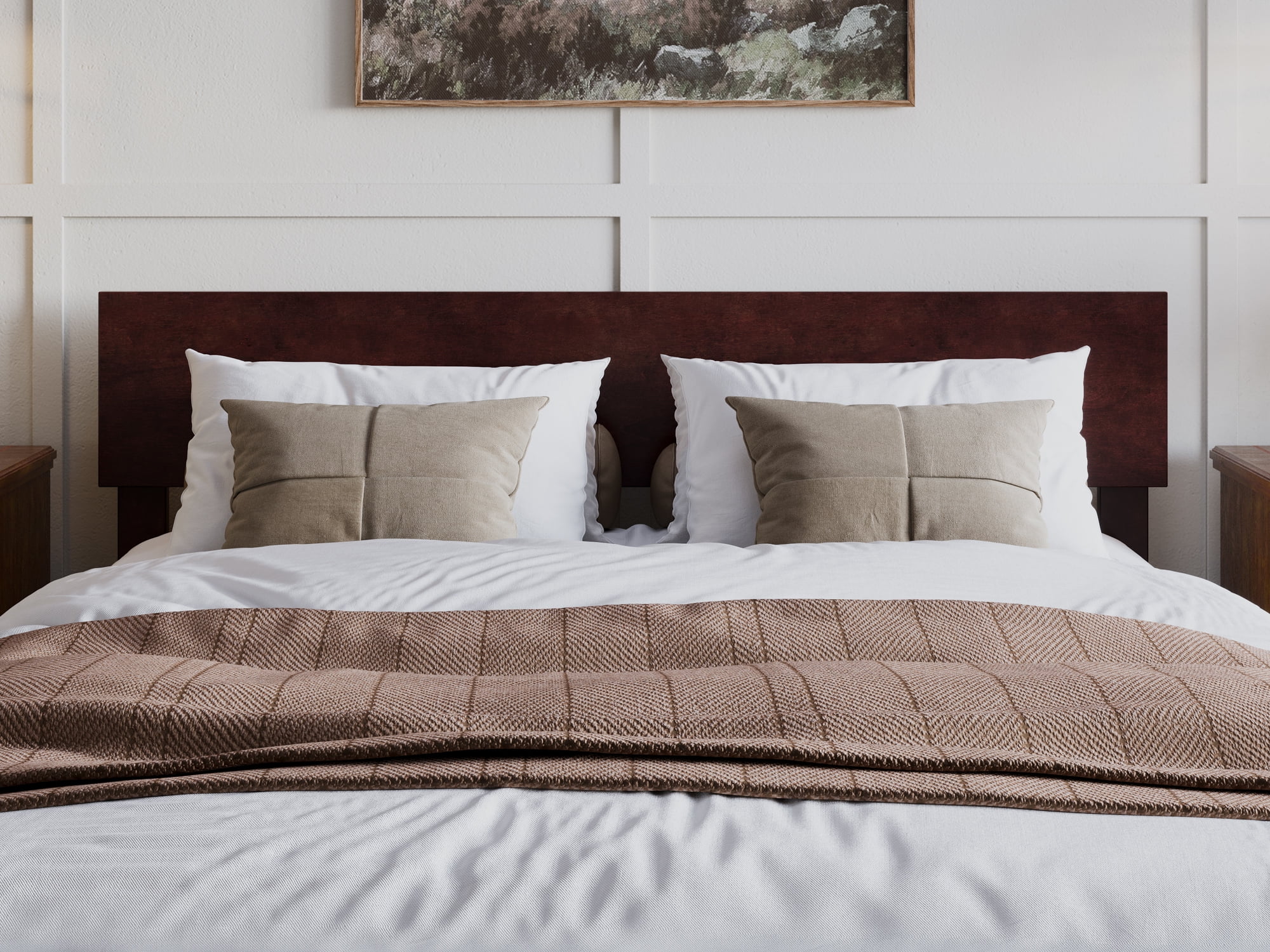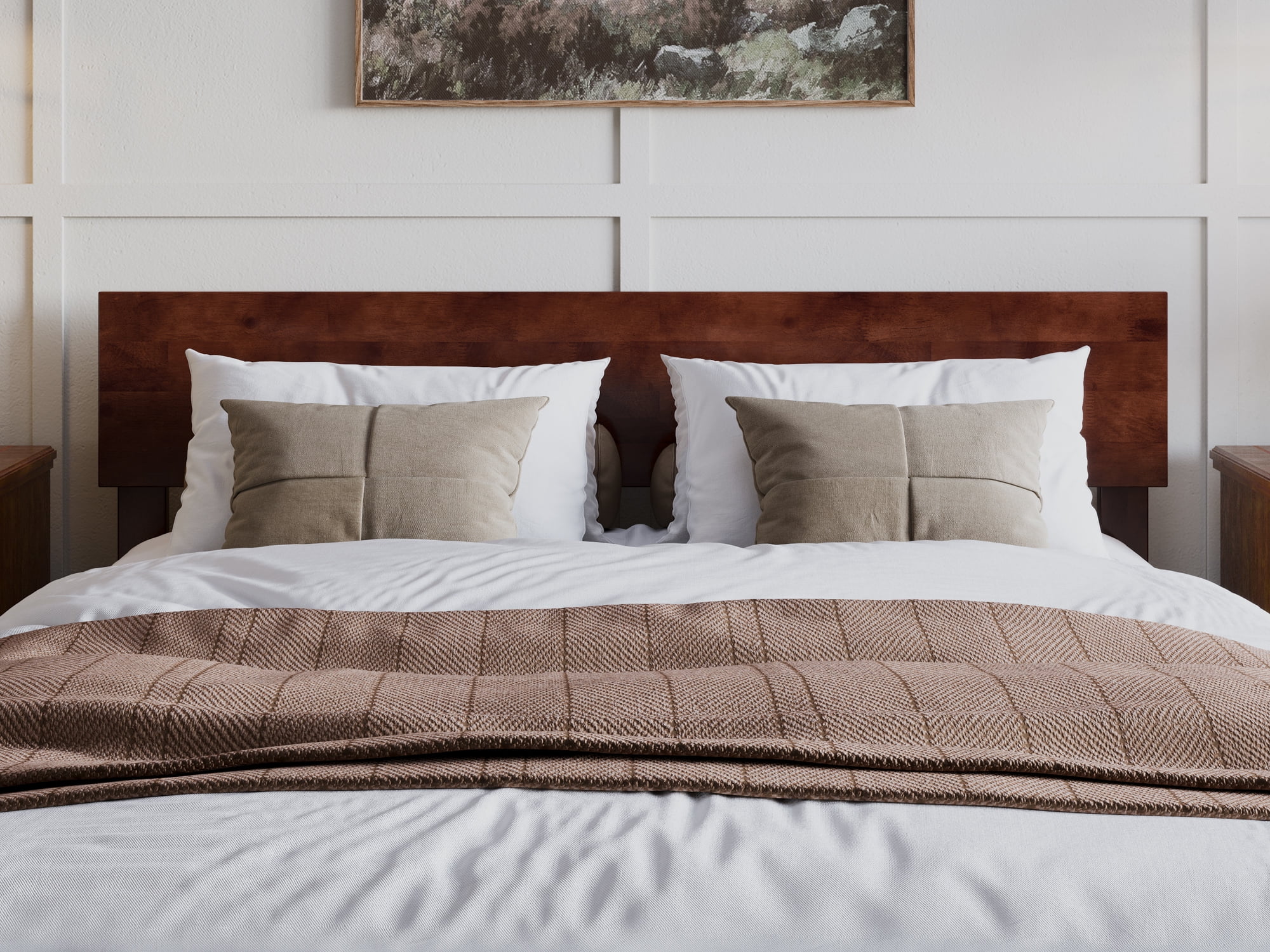 AFI Madison King Low Profile Wood Platform Bed Frame with Panel Headboard, White