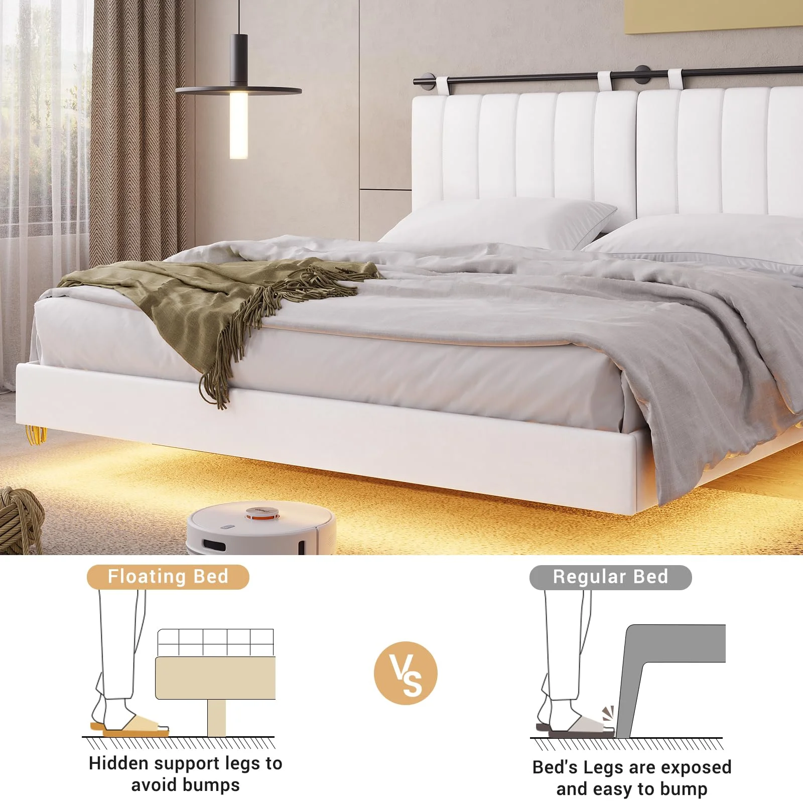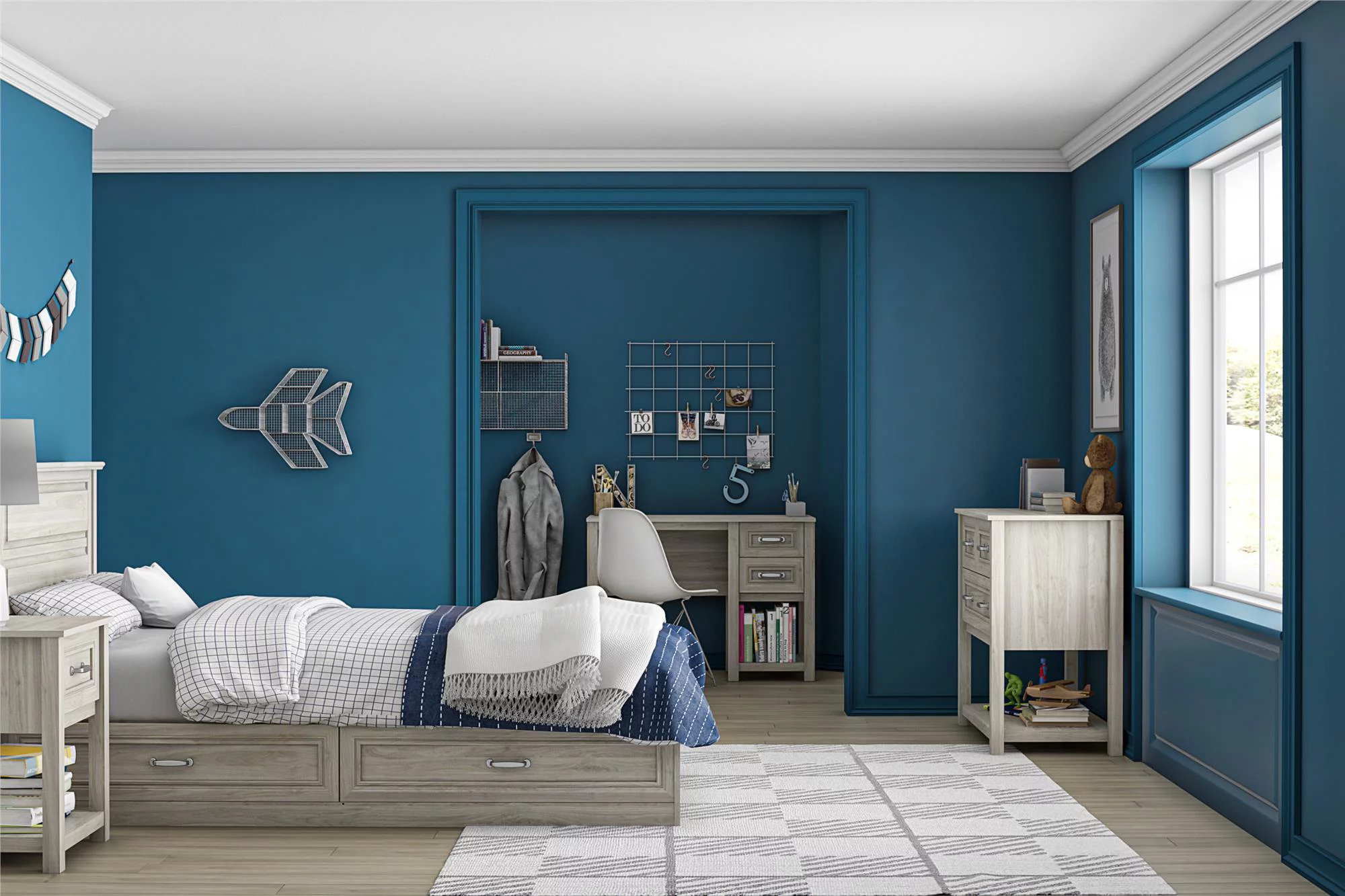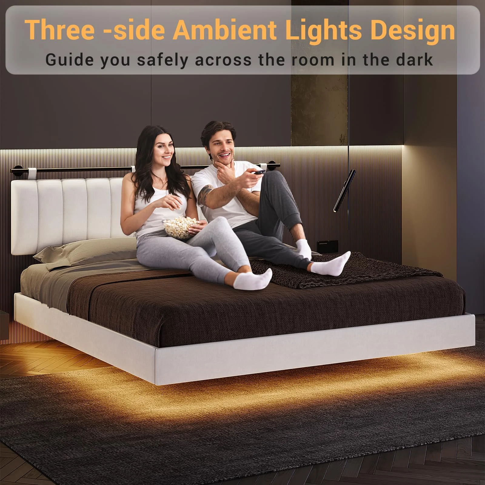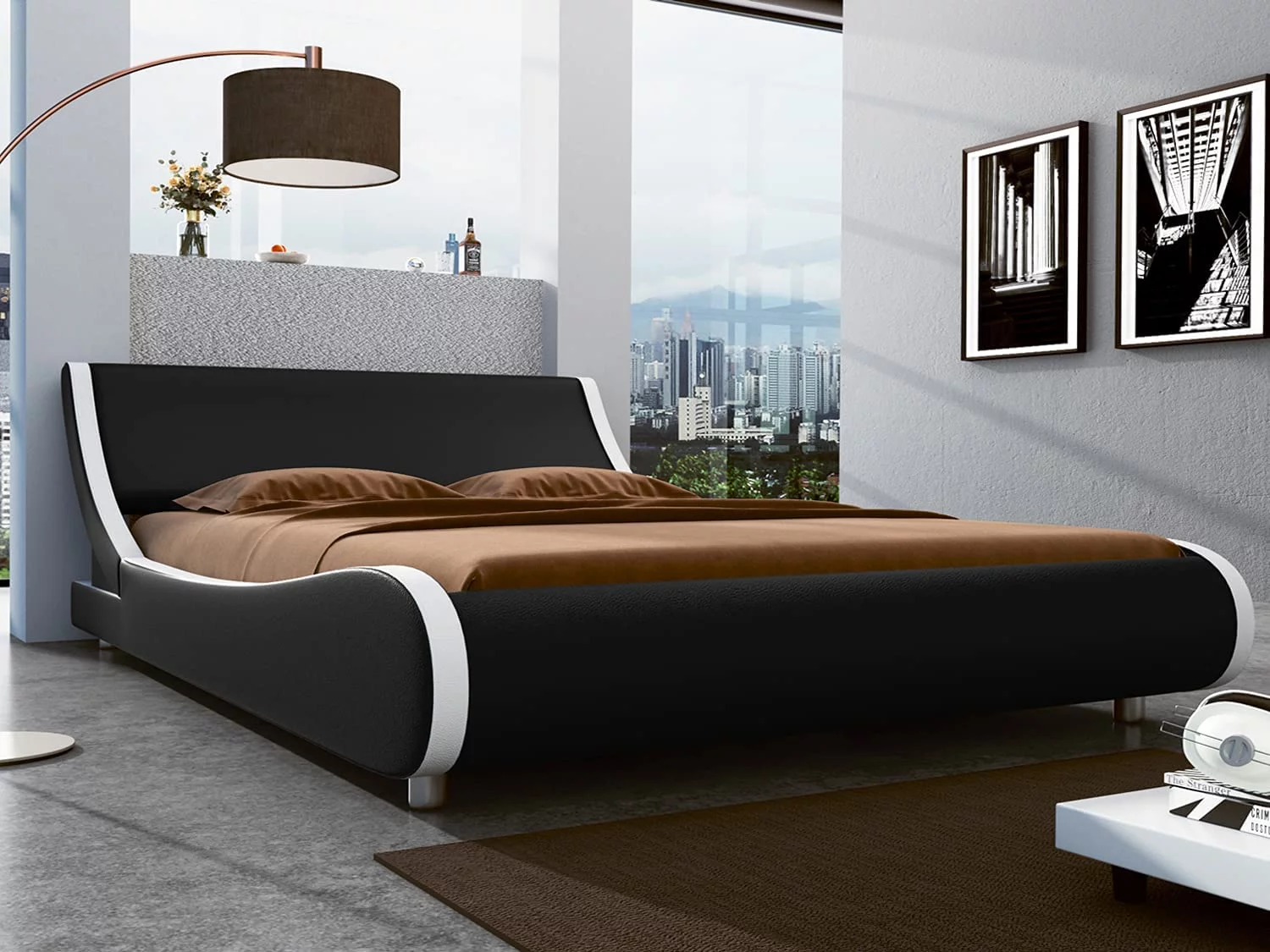 AFI Madison King Low Profile Wood Platform Bed Frame with Panel Headboard, White