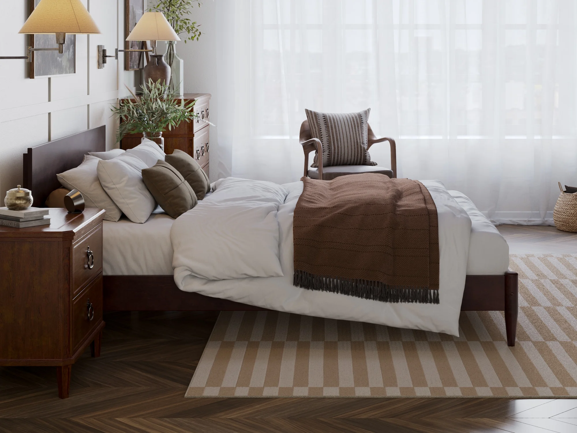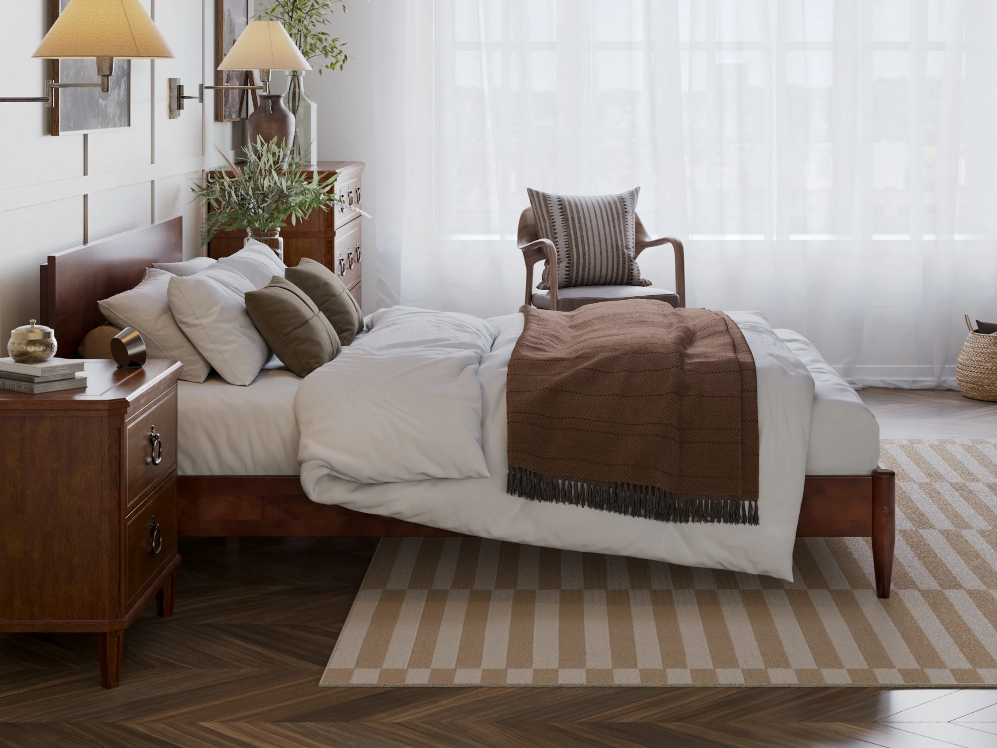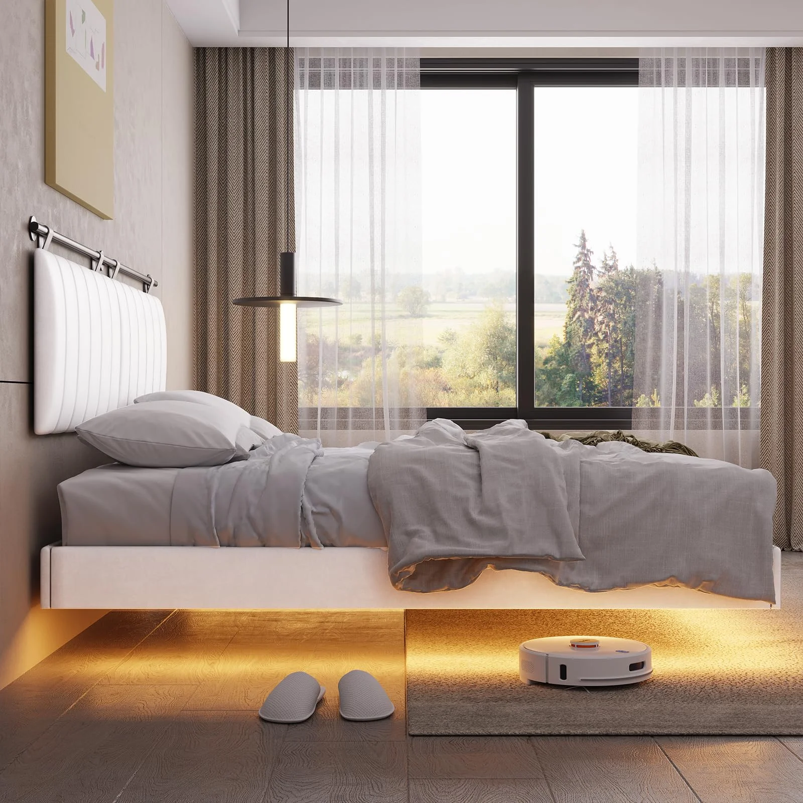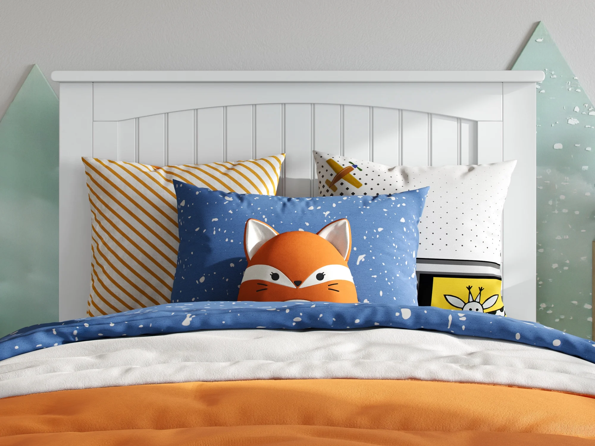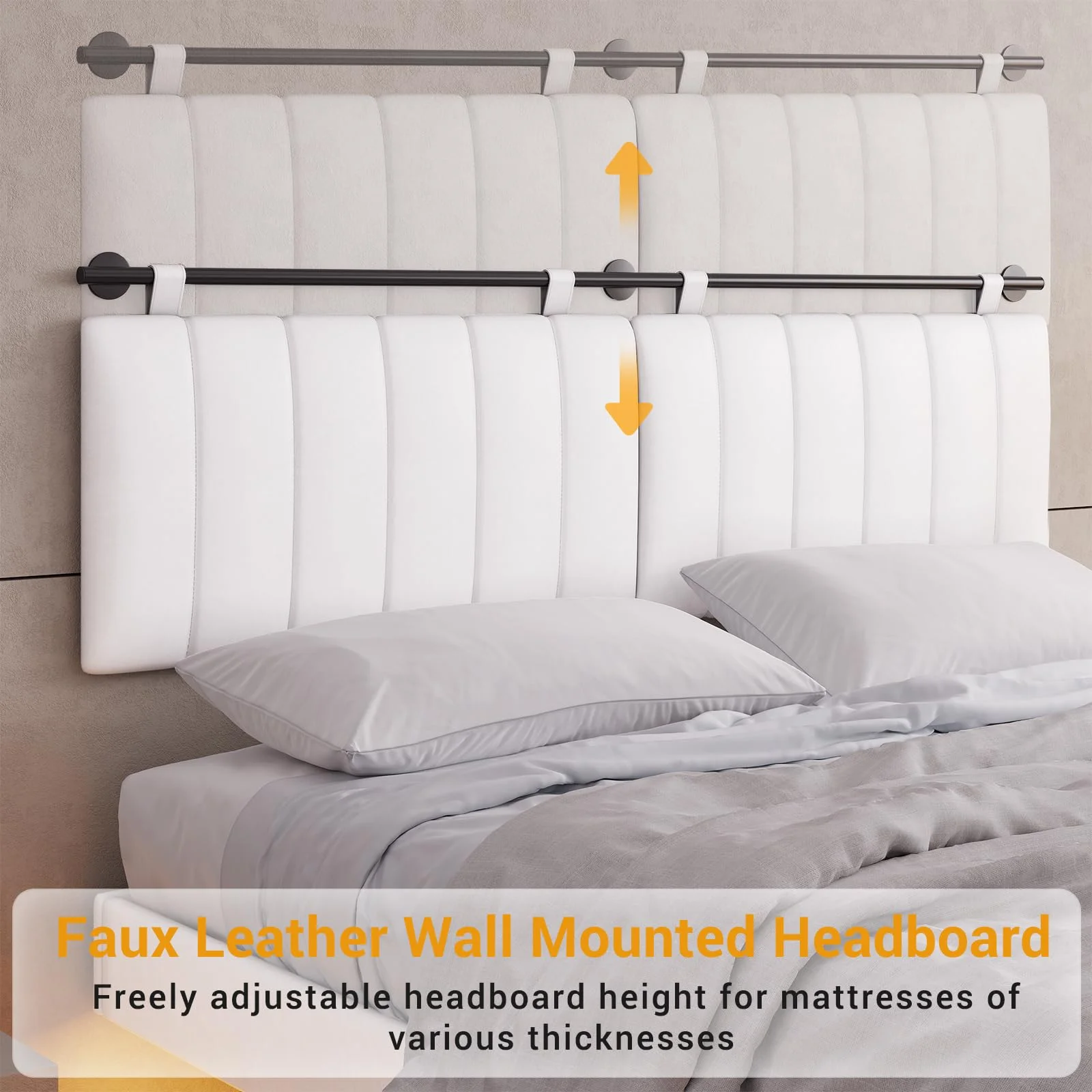 AFI Madison King Low Profile Wood Platform Bed Frame with Panel Headboard, White