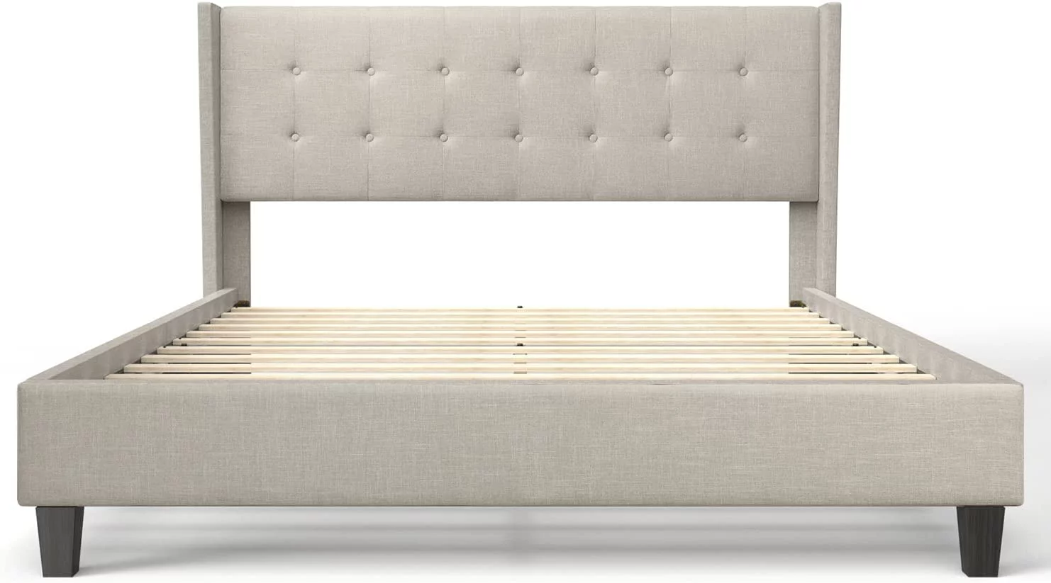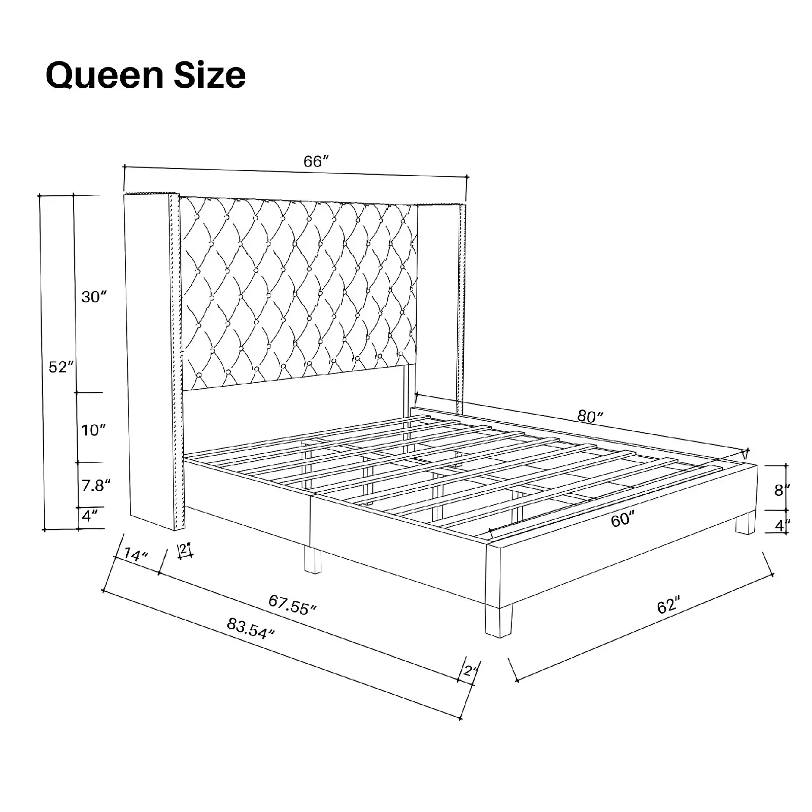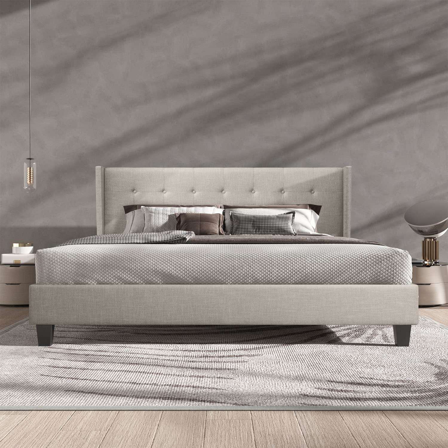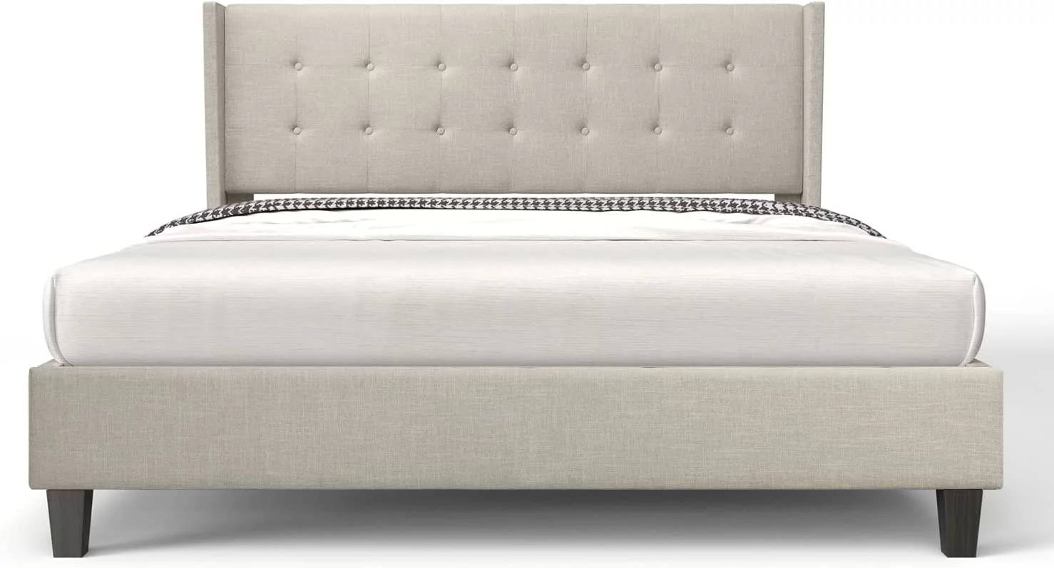 Upholstered Tufted Bed, Platform Bed Frame with Diamond Low Profile Platform Beds Strong Wooden Slats, Queen Size Black