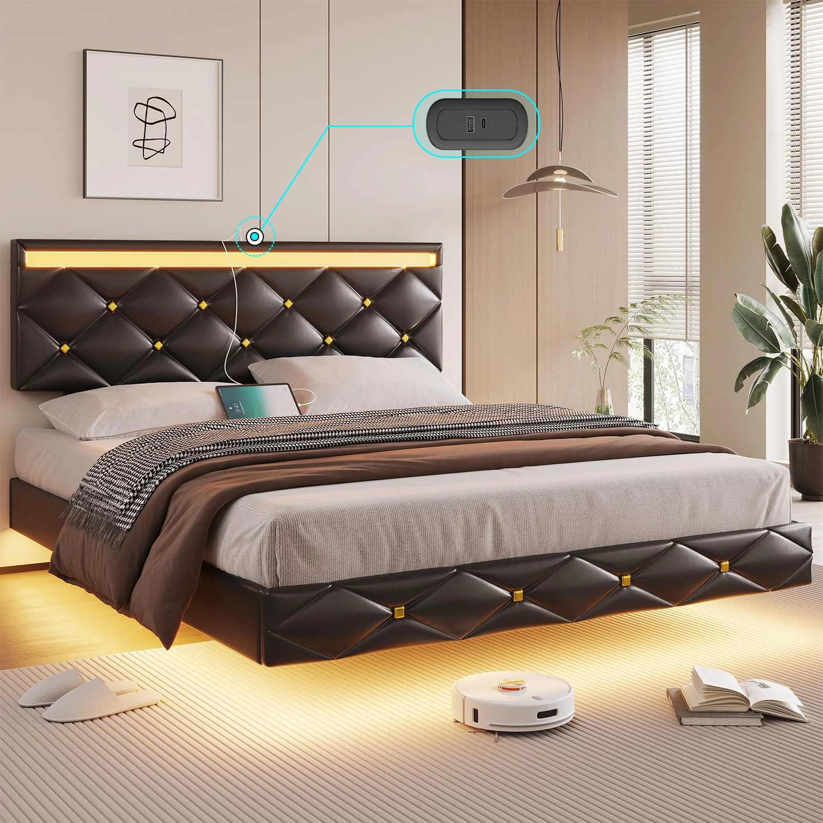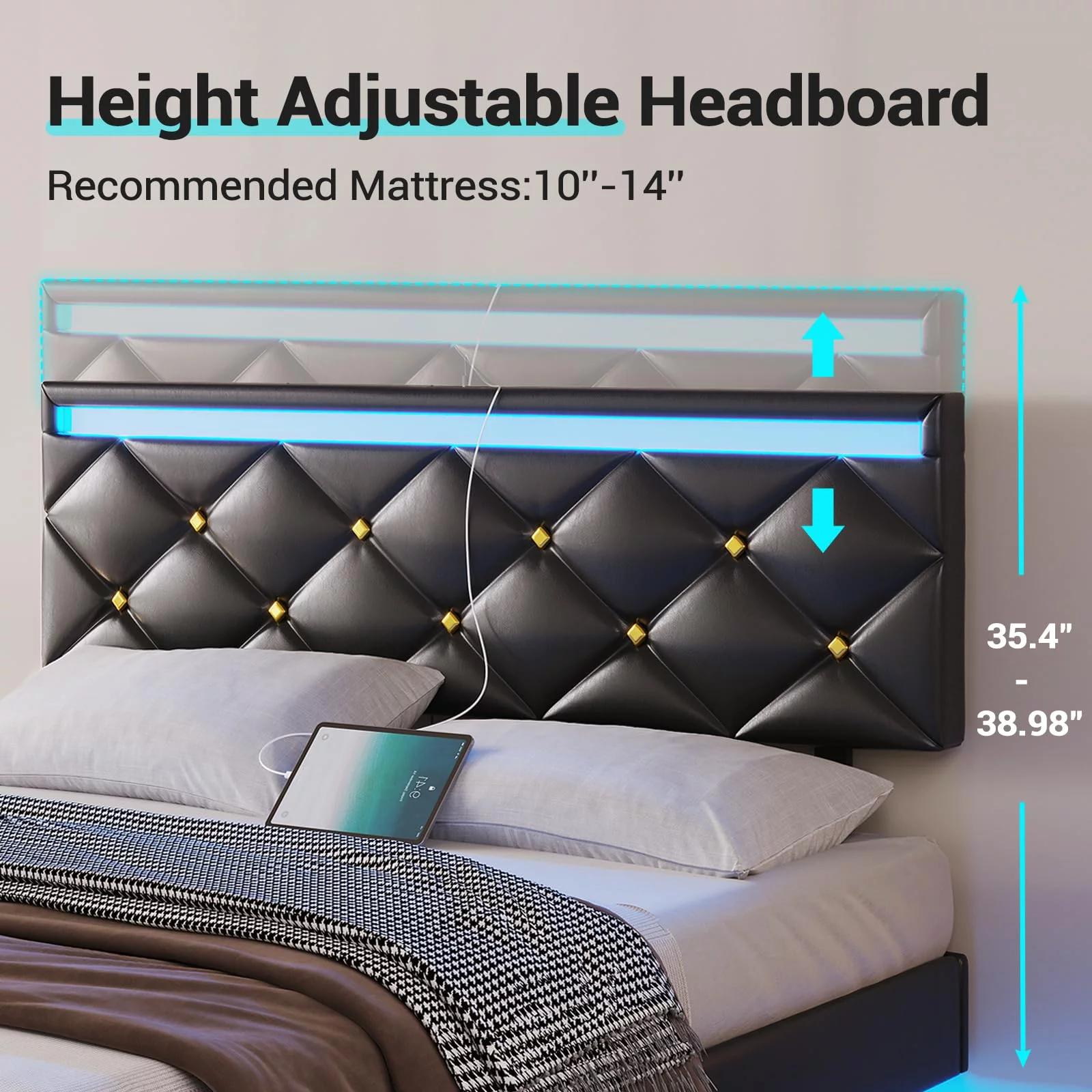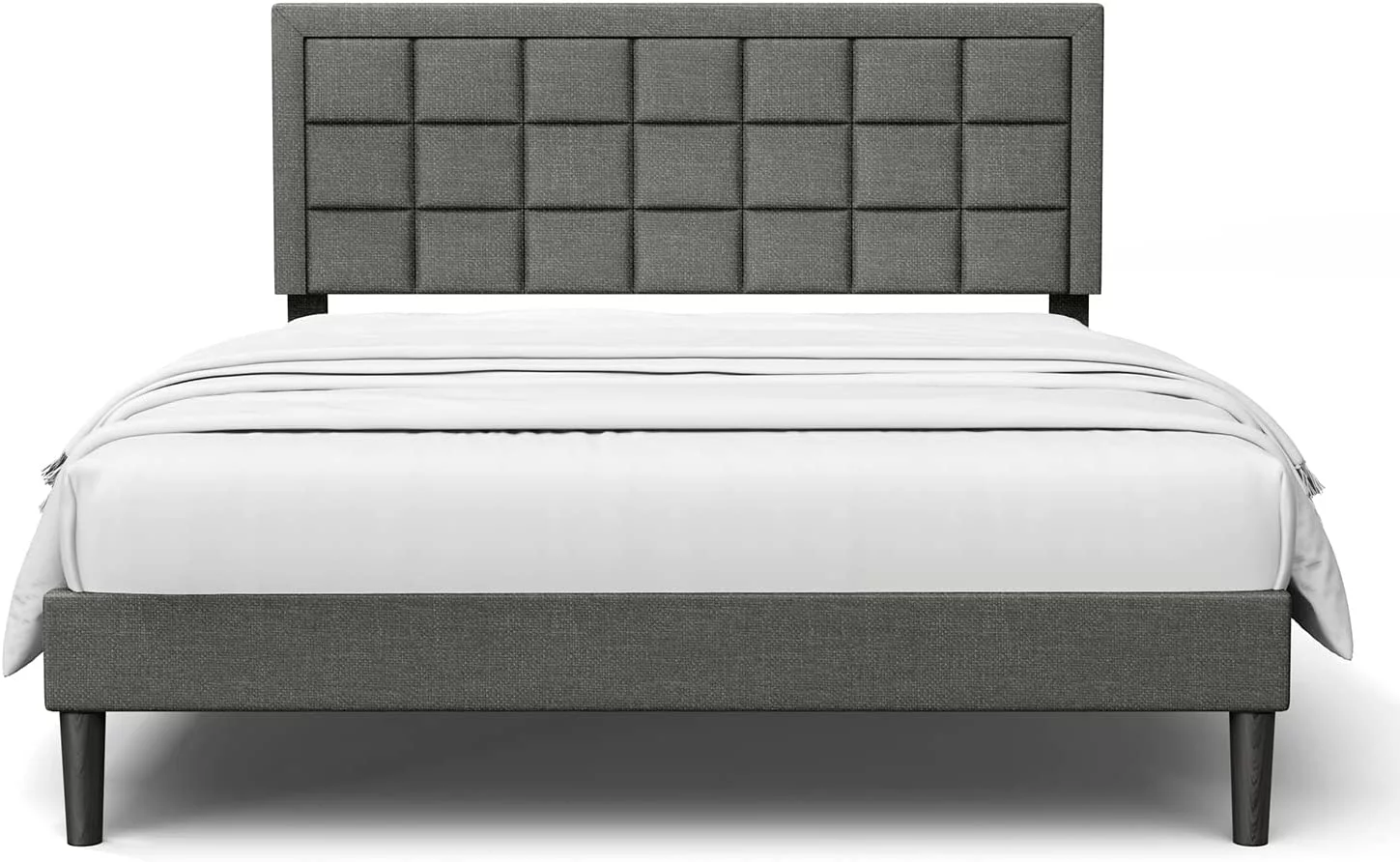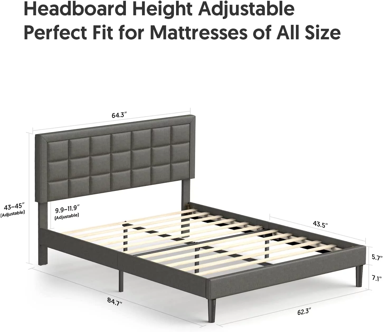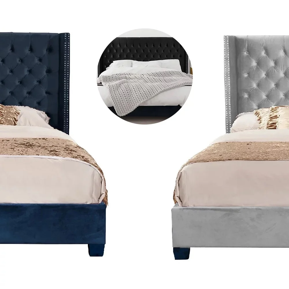 Upholstered Tufted Bed, Platform Bed Frame with Diamond Low Profile Platform Beds Strong Wooden Slats, Queen Size Black