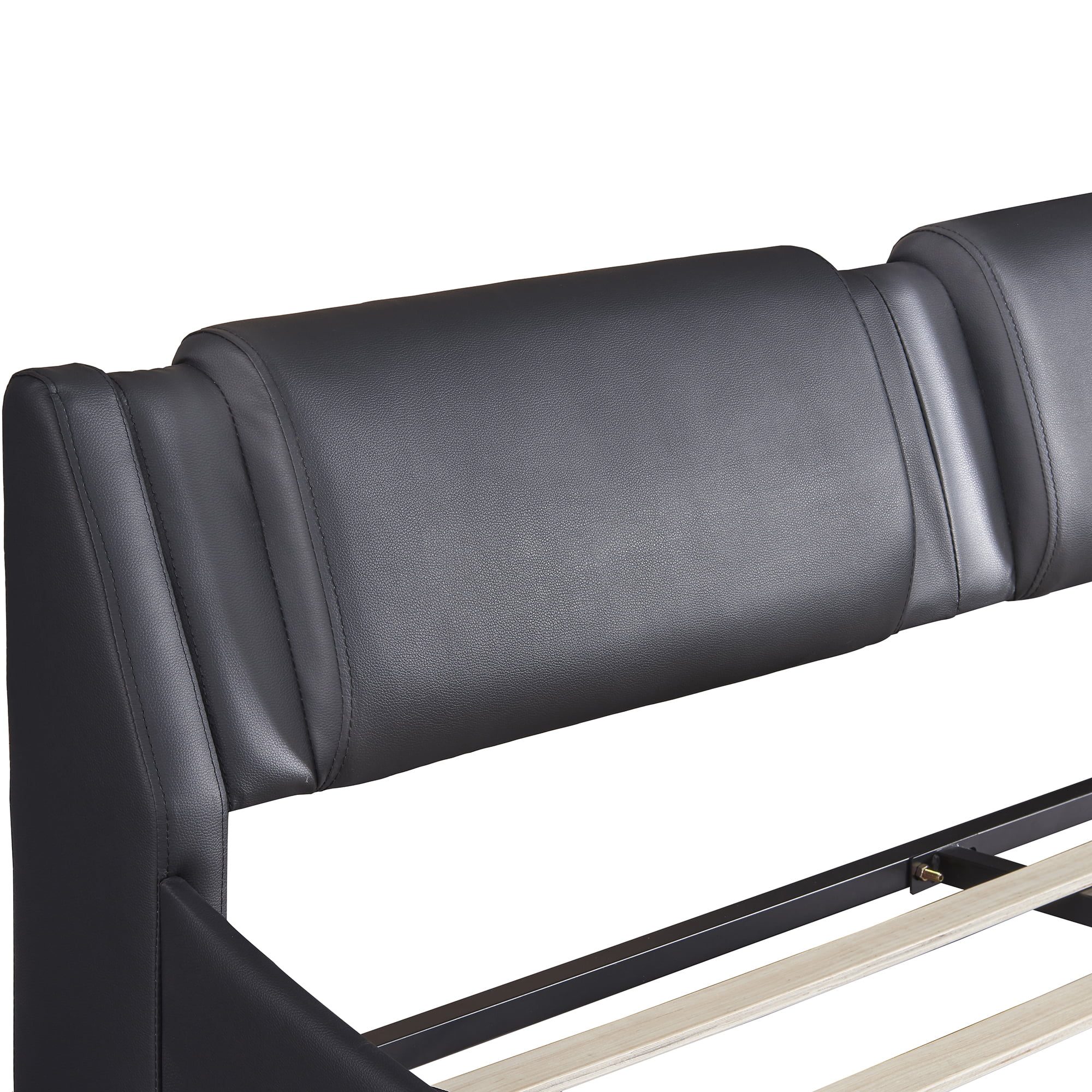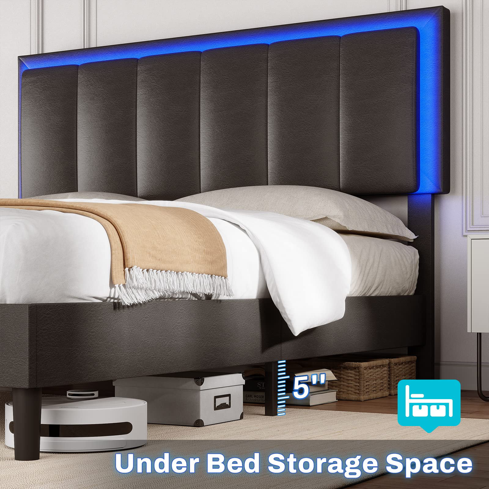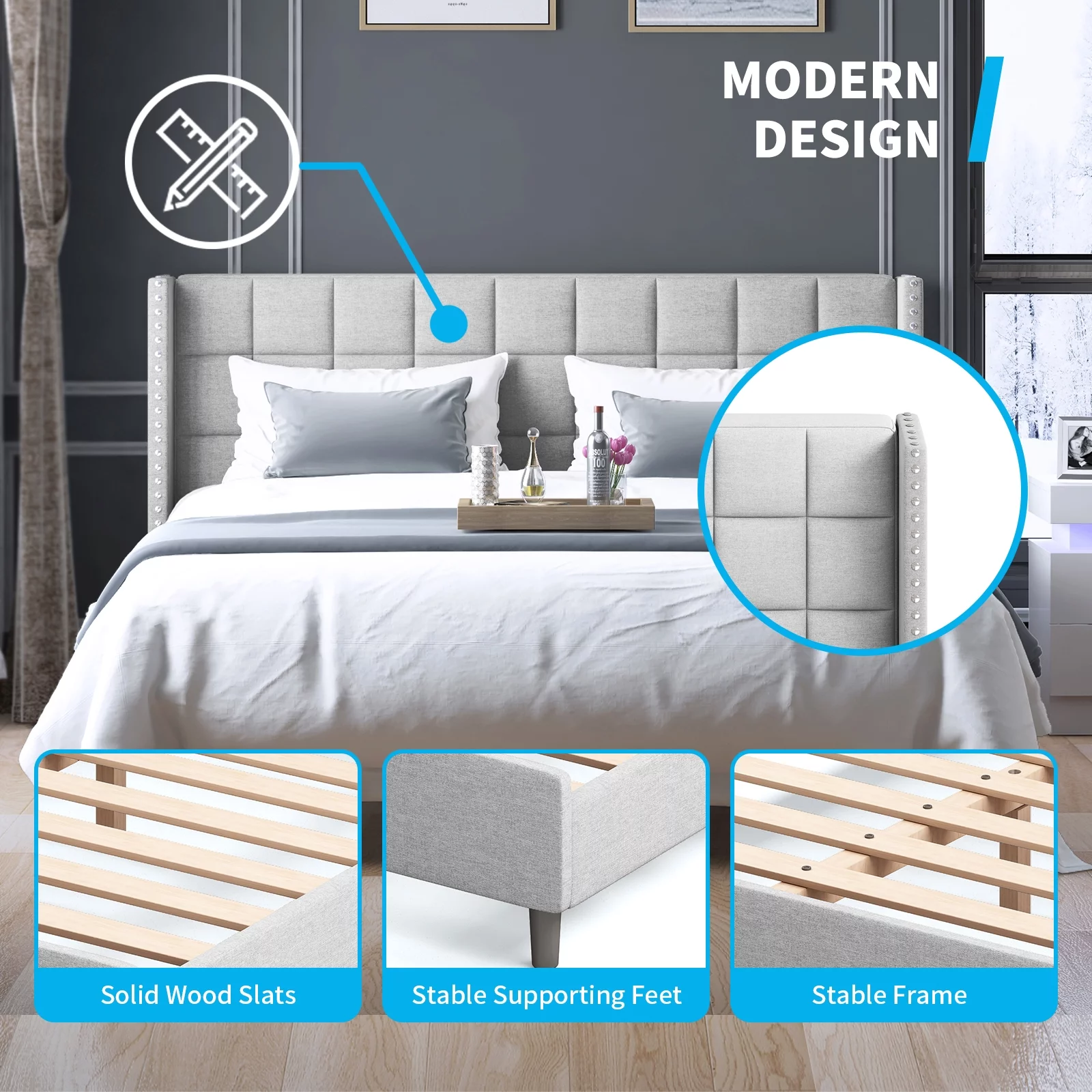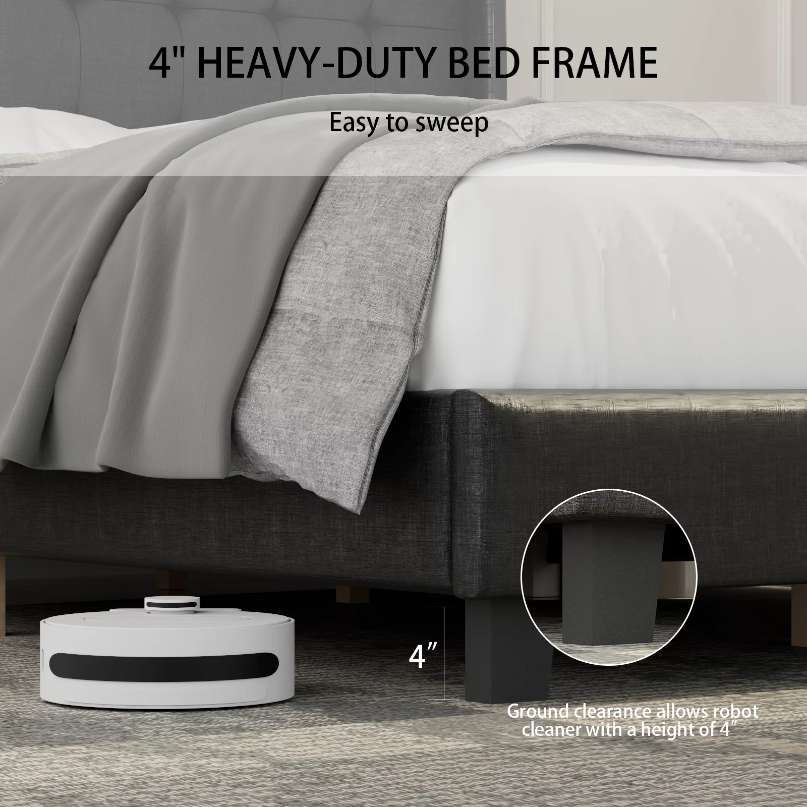 Upholstered Tufted Bed, Platform Bed Frame with Diamond Low Profile Platform Beds Strong Wooden Slats, Queen Size Black