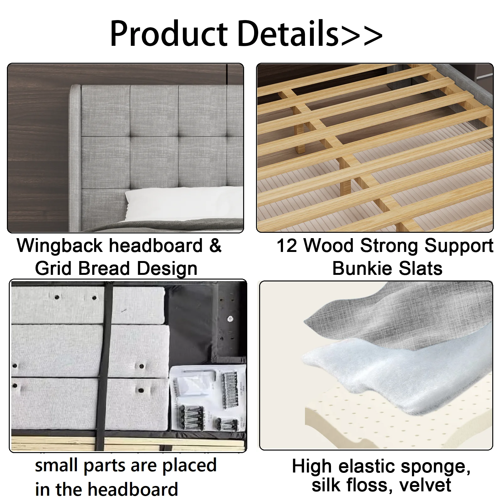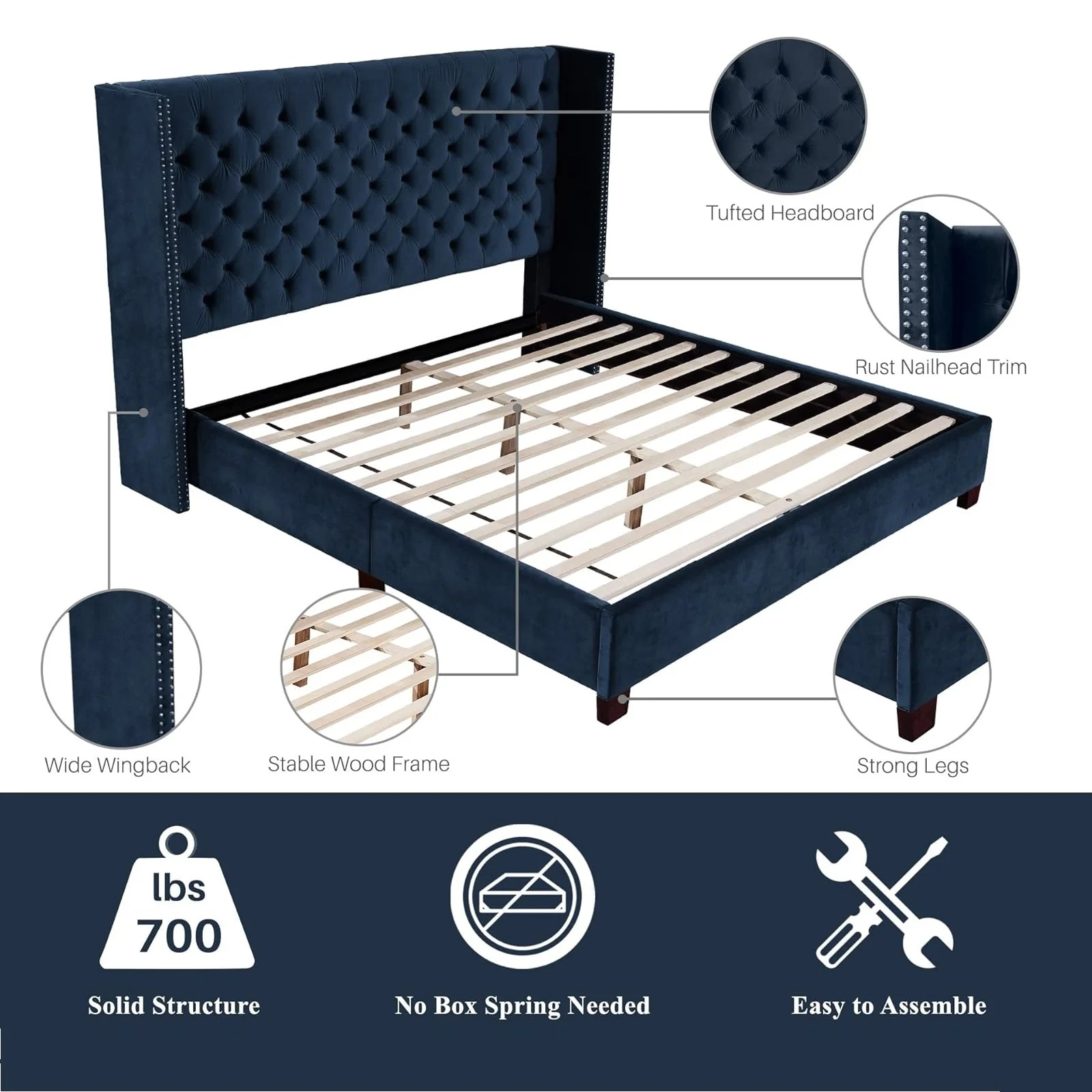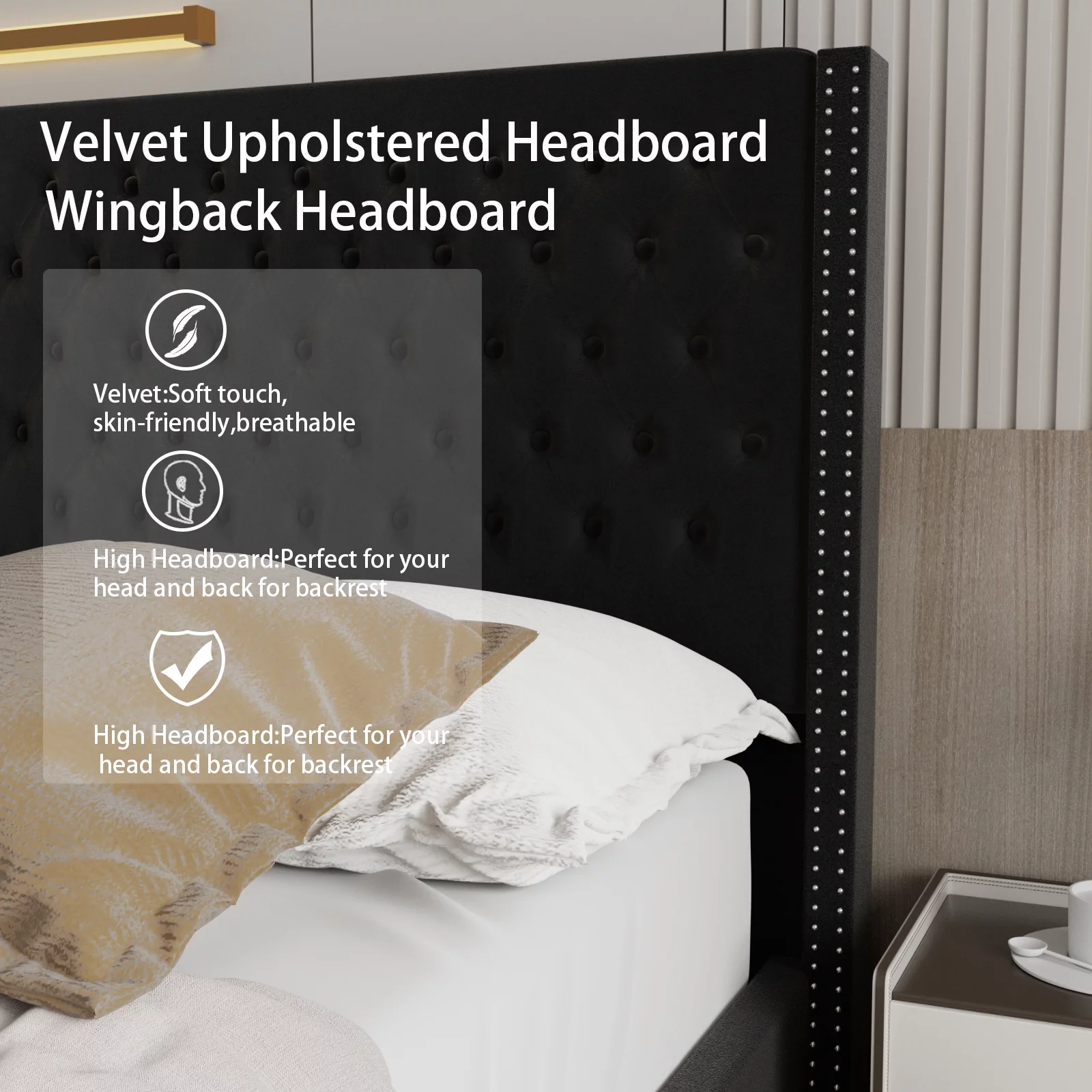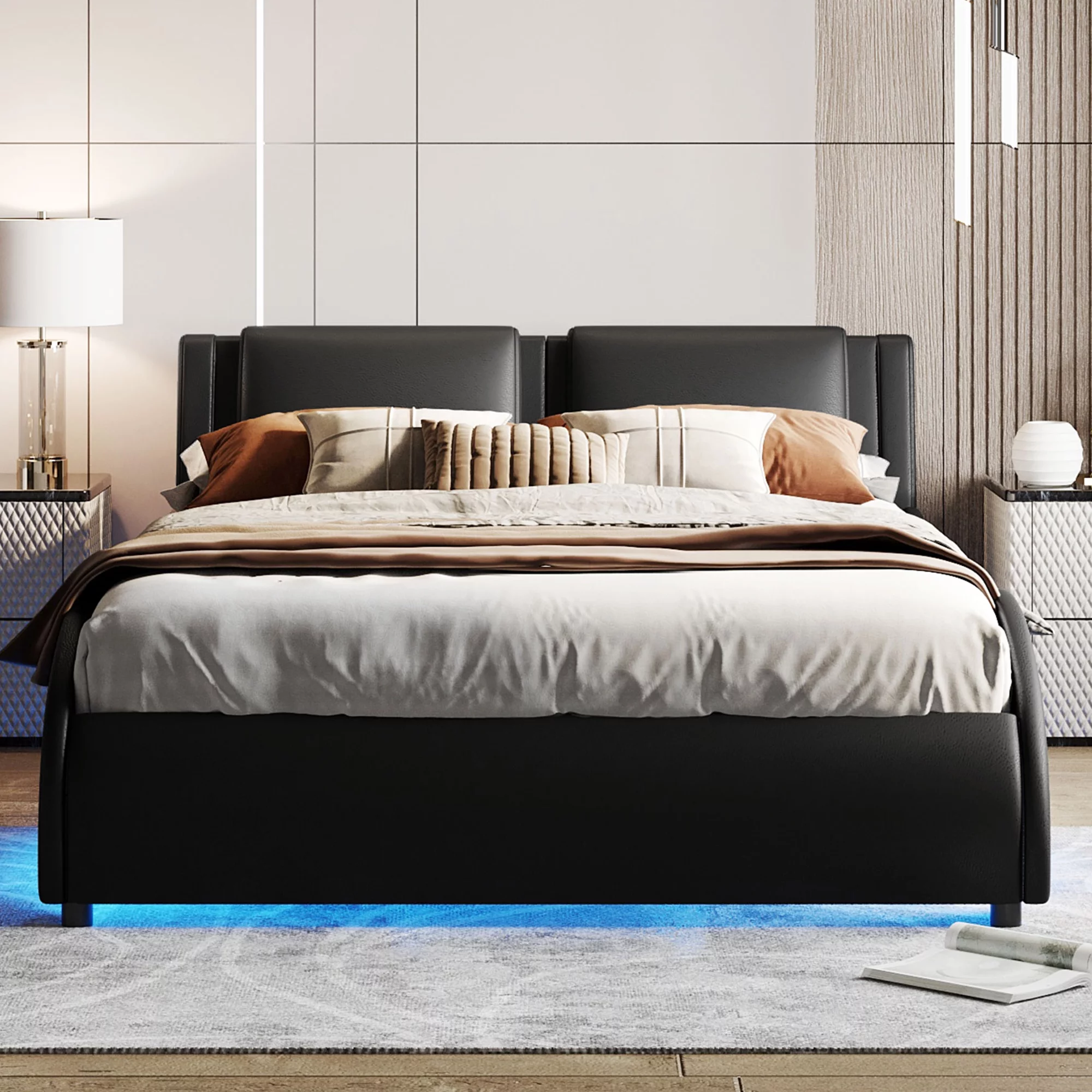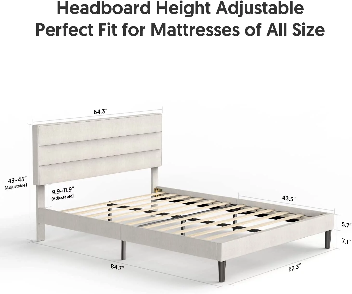 Upholstered Tufted Bed, Platform Bed Frame with Diamond Low Profile Platform Beds Strong Wooden Slats, Queen Size Black