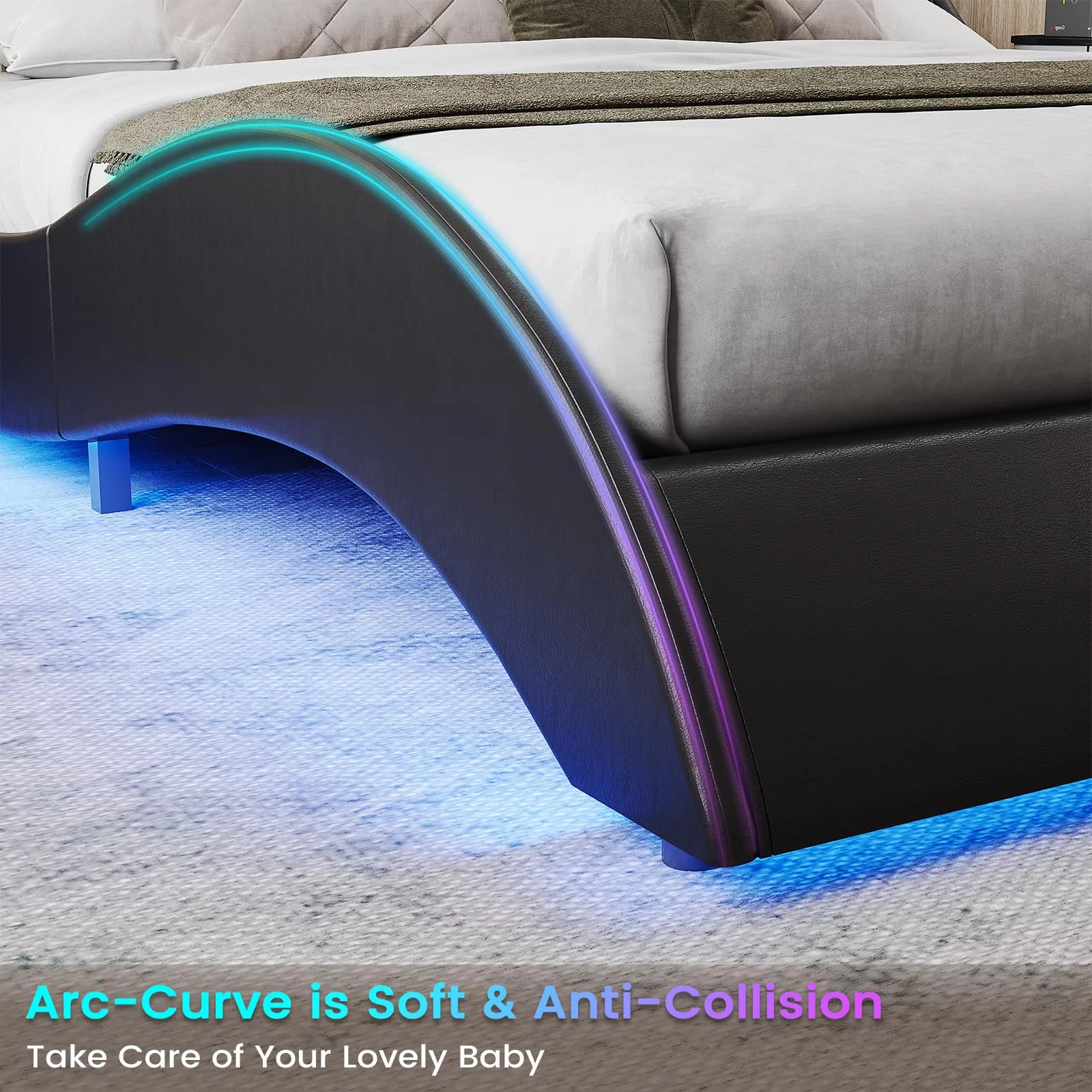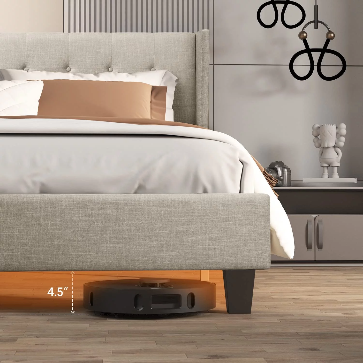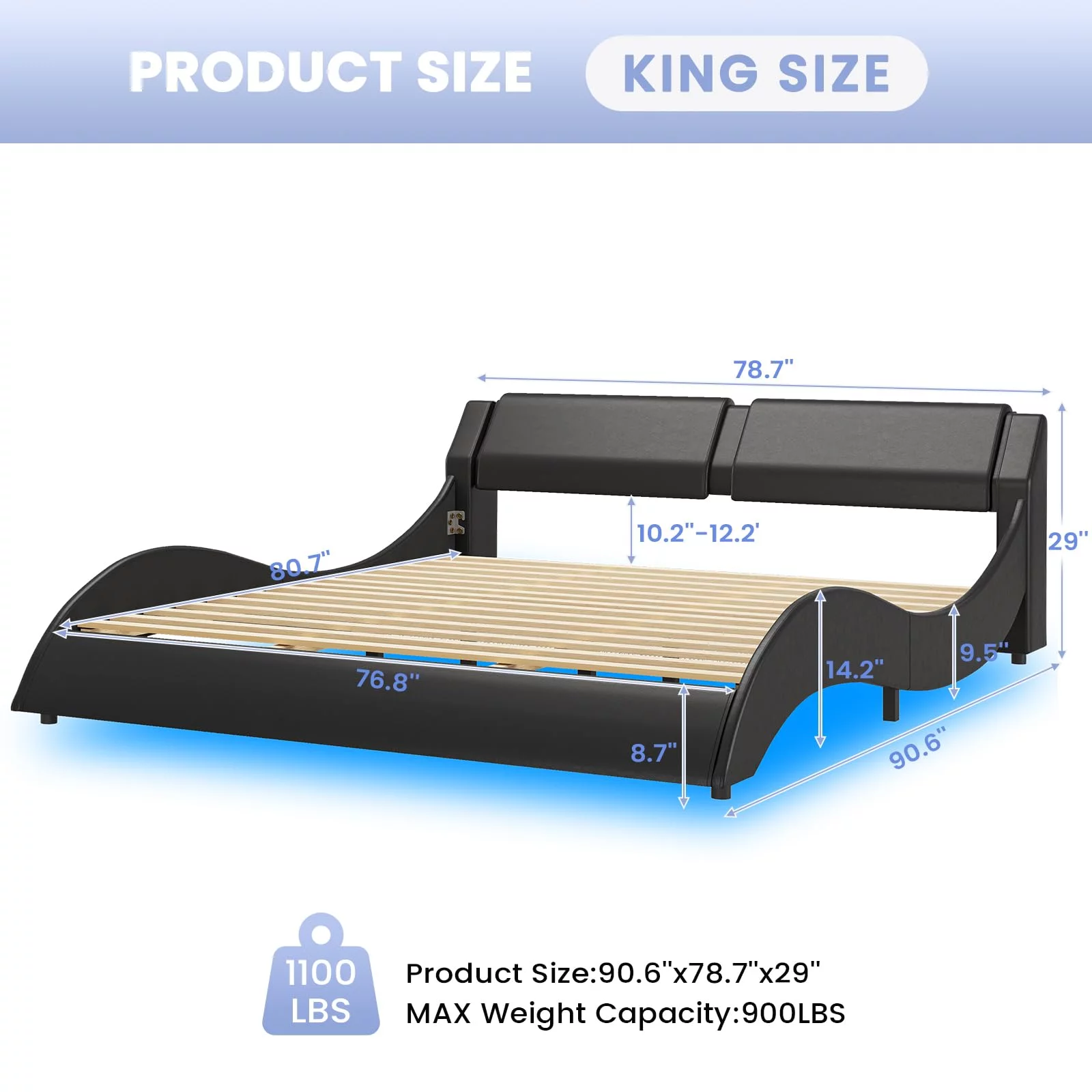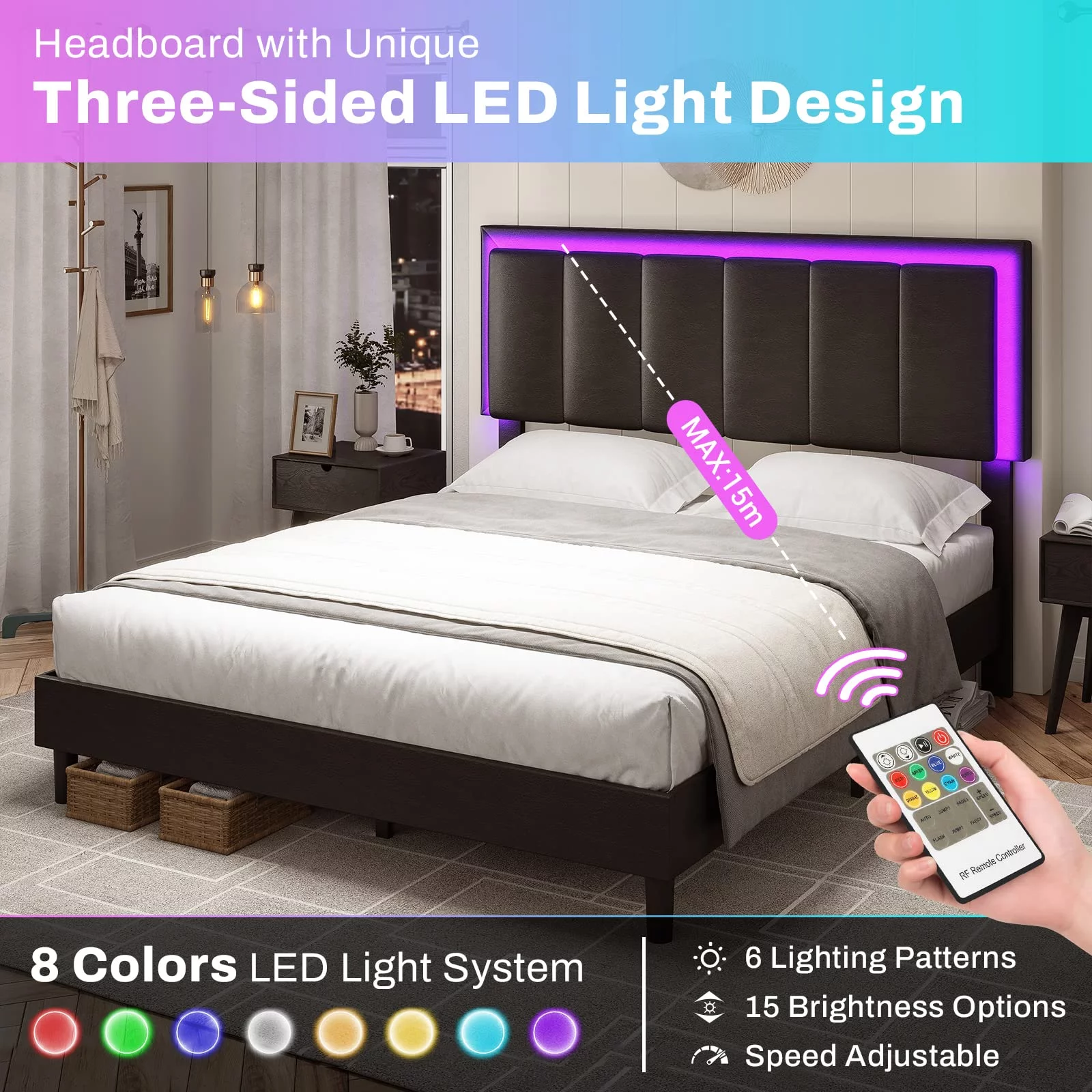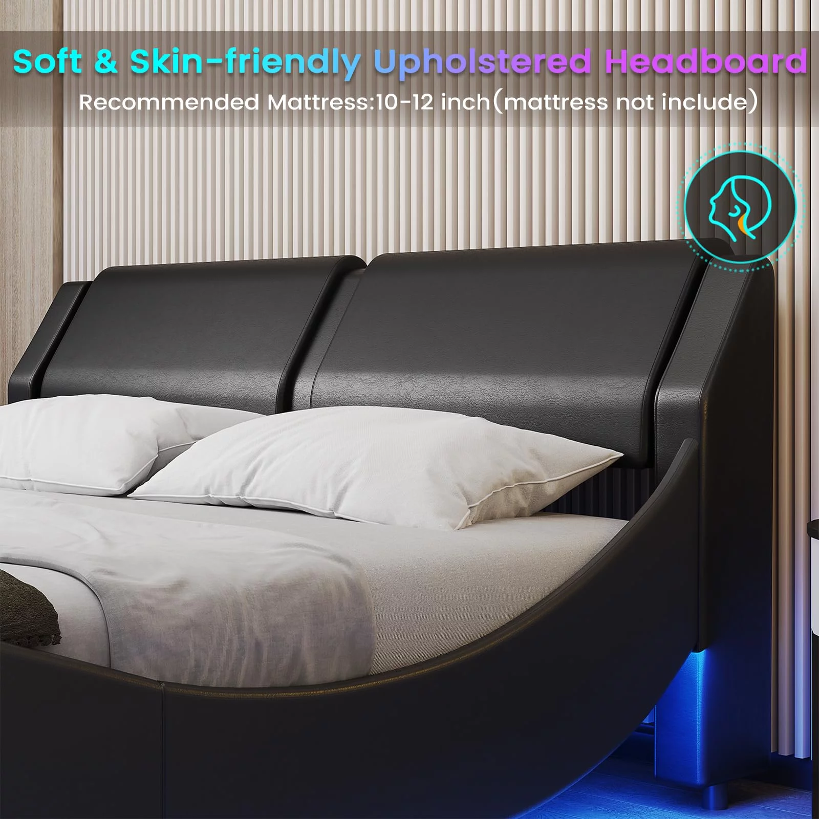 Upholstered Tufted Bed, Platform Bed Frame with Diamond Low Profile Platform Beds Strong Wooden Slats, Queen Size Black