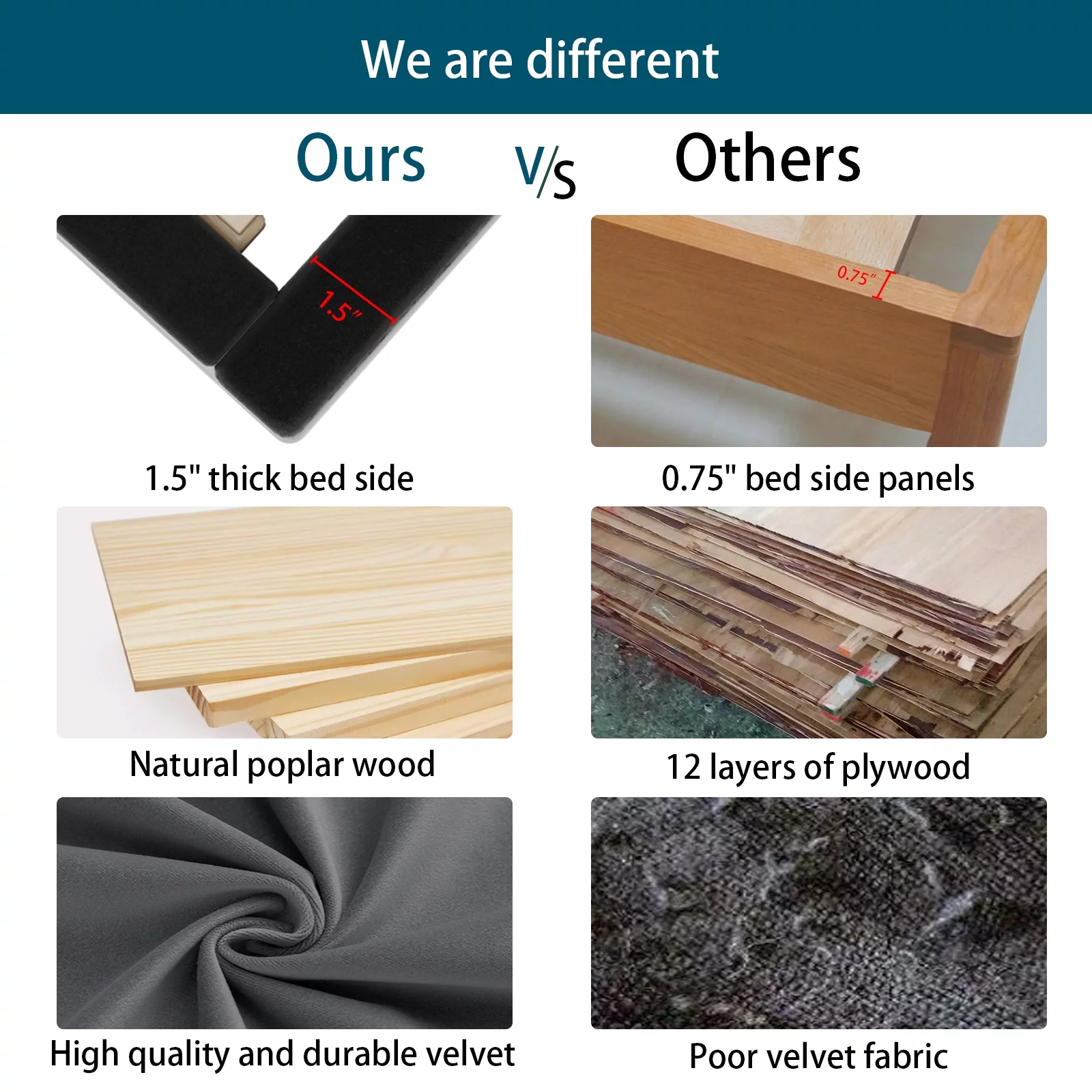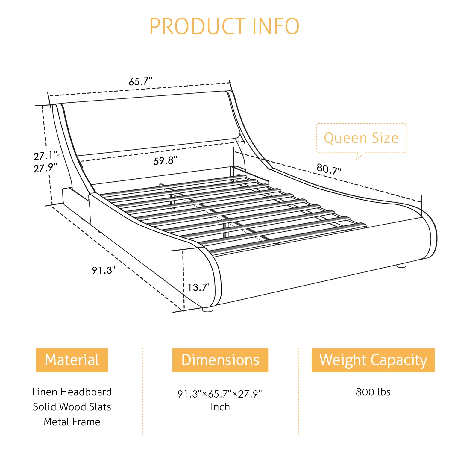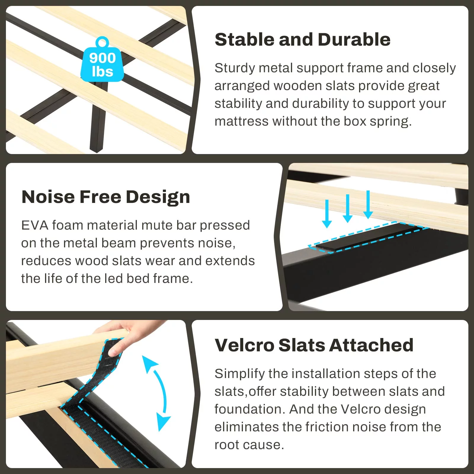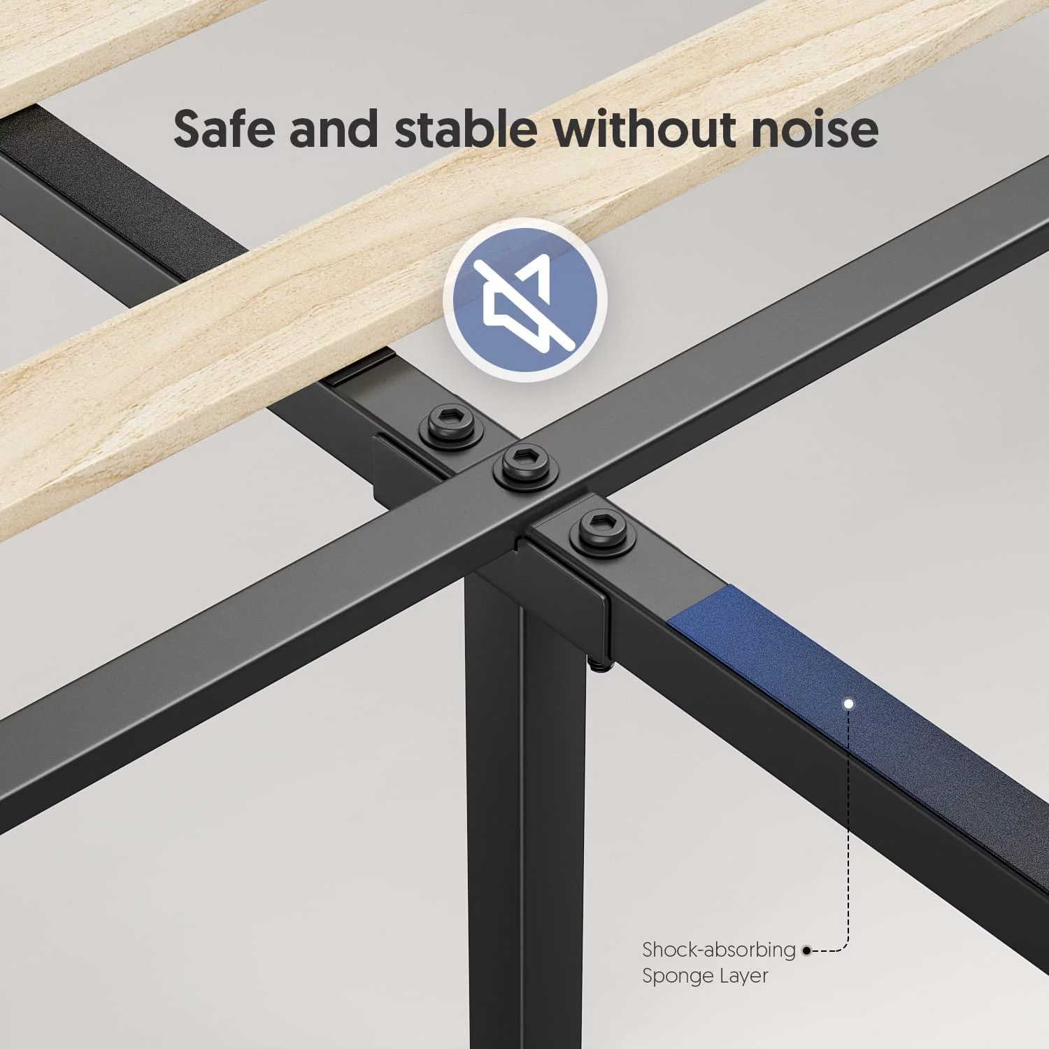 W Silver Products Hook On Low Profile Side Rails with Two Center Cross Support For Steel or Wooden Bed Frames Queen