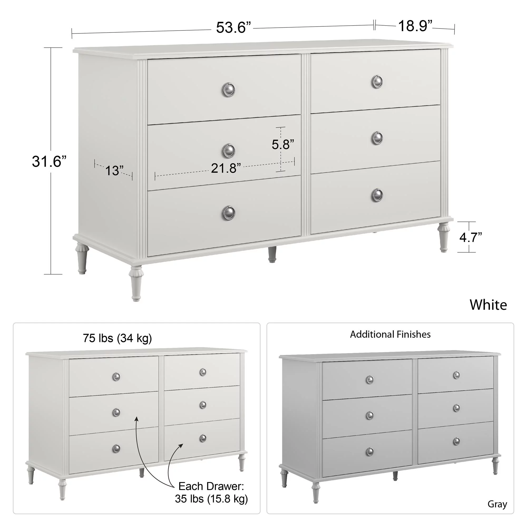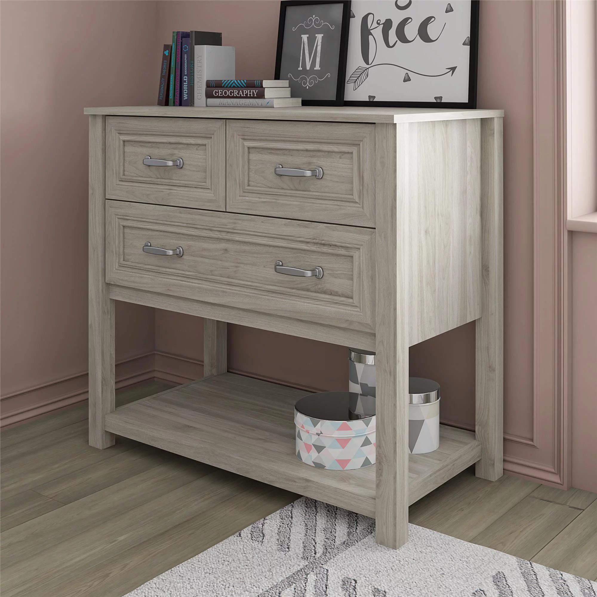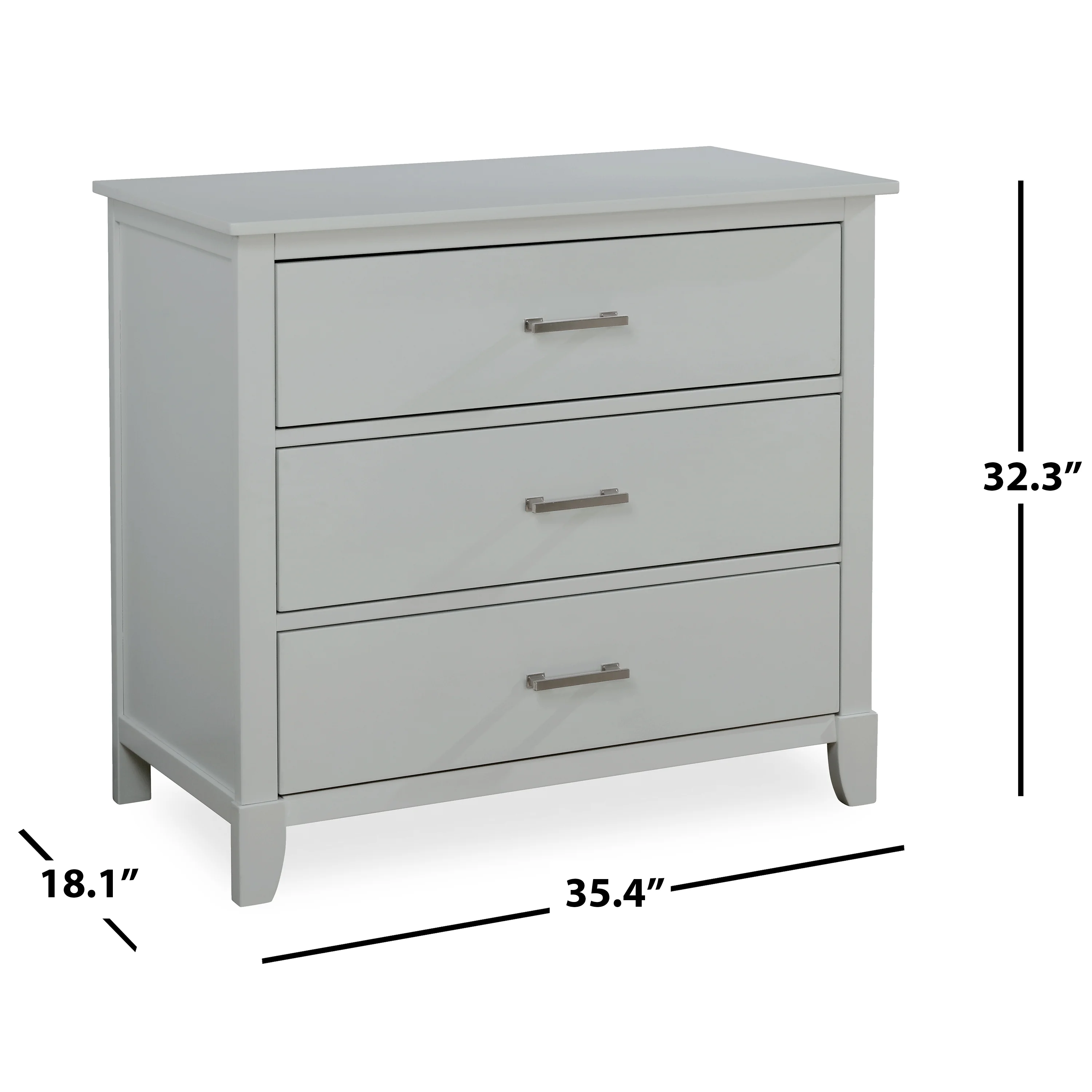 Dream on Me Universal 3 Drawers Chest in Silver Grey Pearl, Kids Bedroom Dresser, Three Drawers