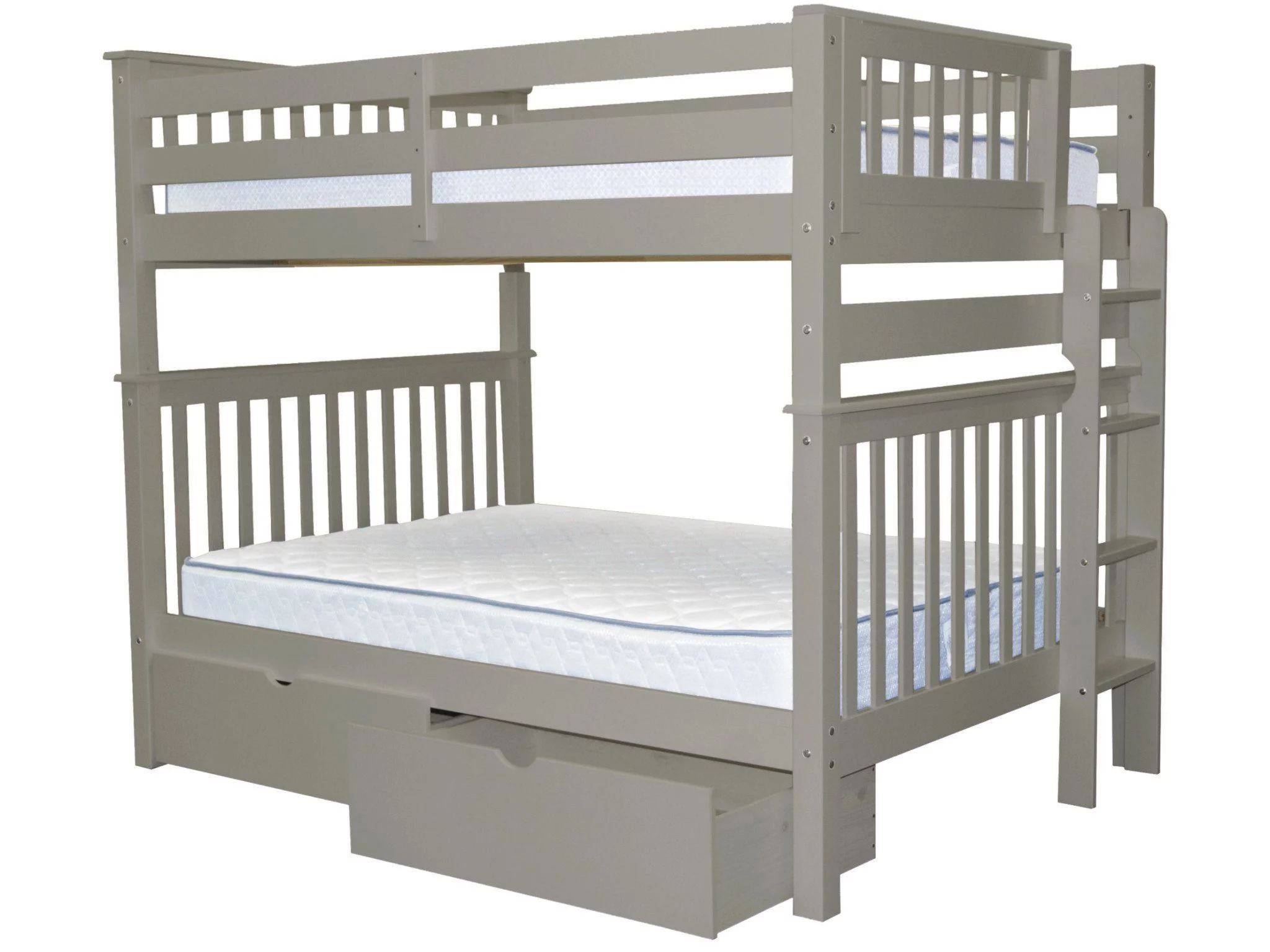 Bedz King Bunk Beds Full over Full Mission Style with End Ladder and 2 Under Bed Drawers, Gray