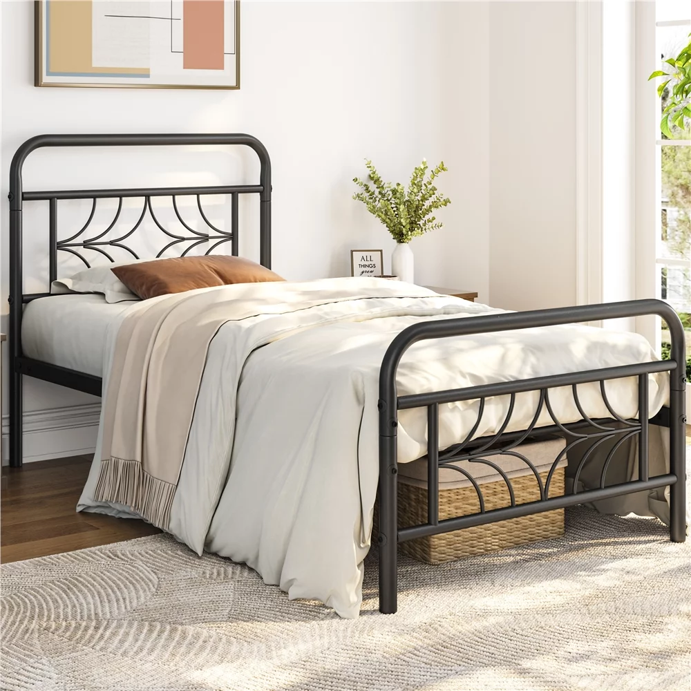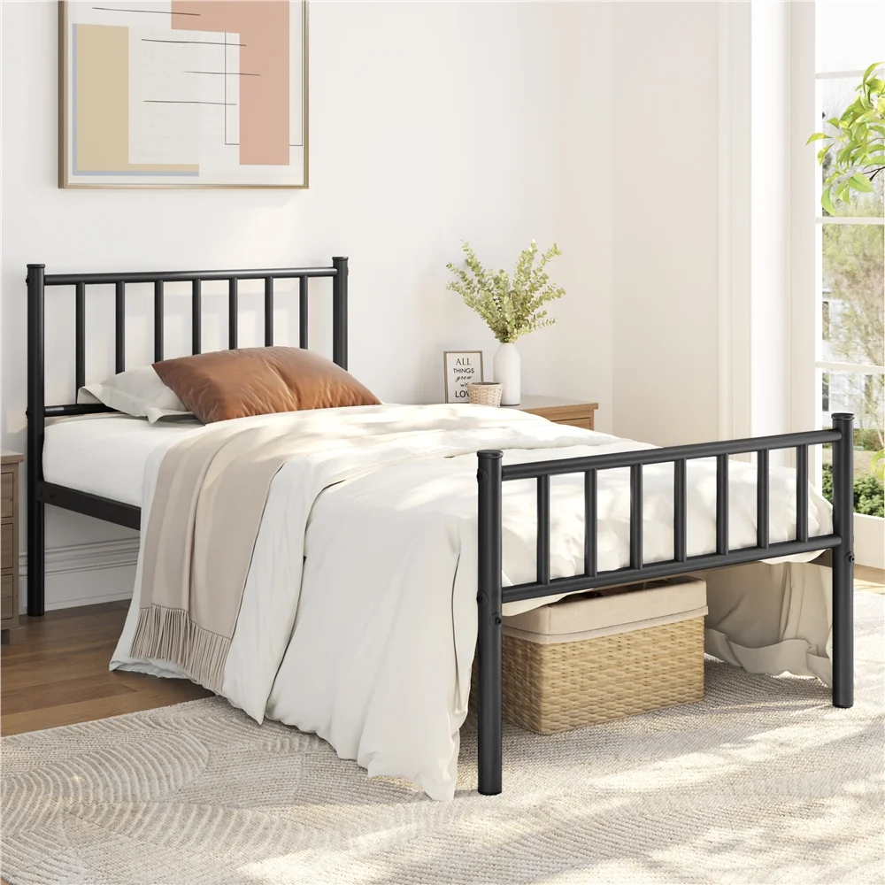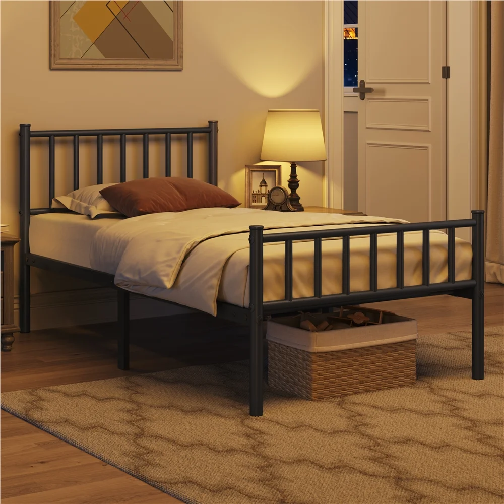 Yaheetech Metal Platform Bed Frame with Spindle Headboard and Footboard,Twin XL,Black