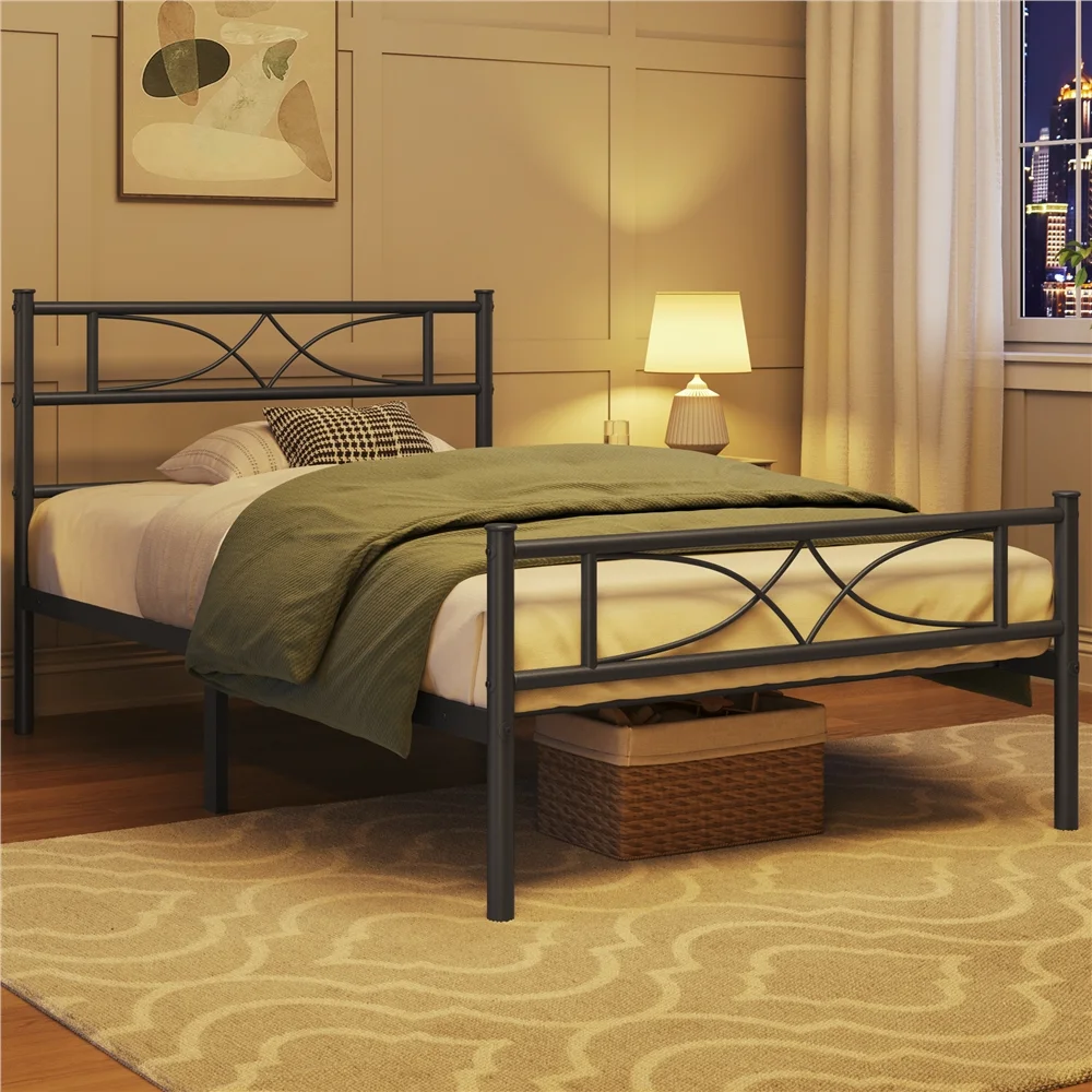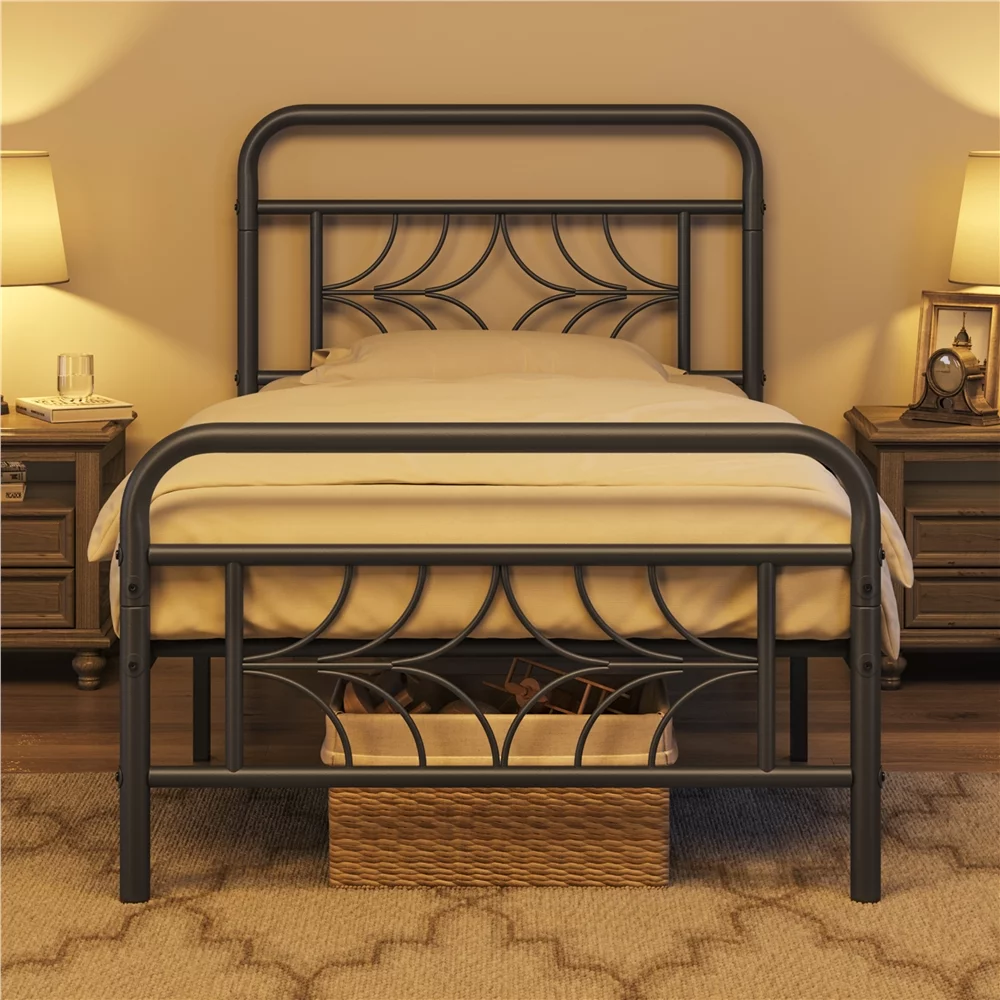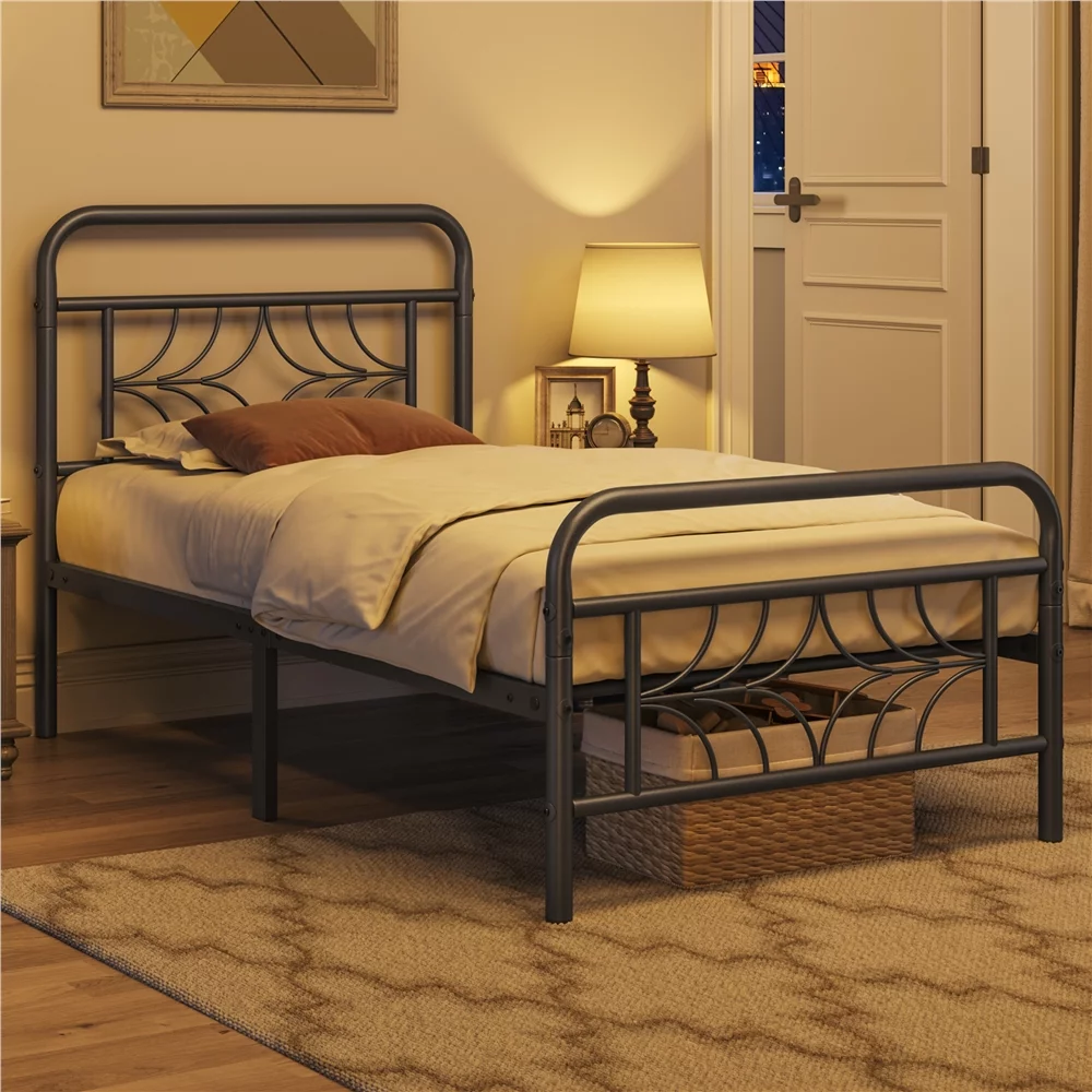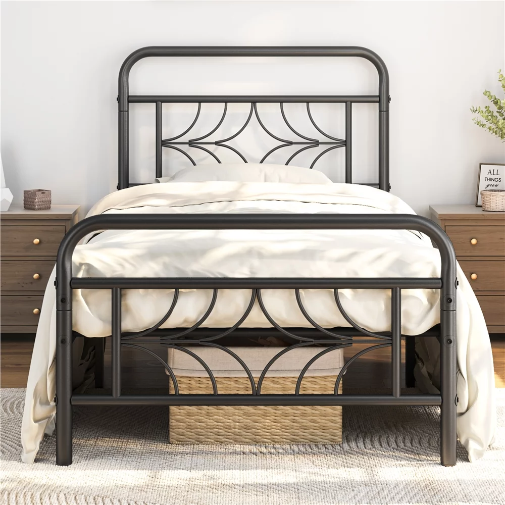 Yaheetech Metal Platform Bed Frame with Spindle Headboard and Footboard,Twin XL,Black