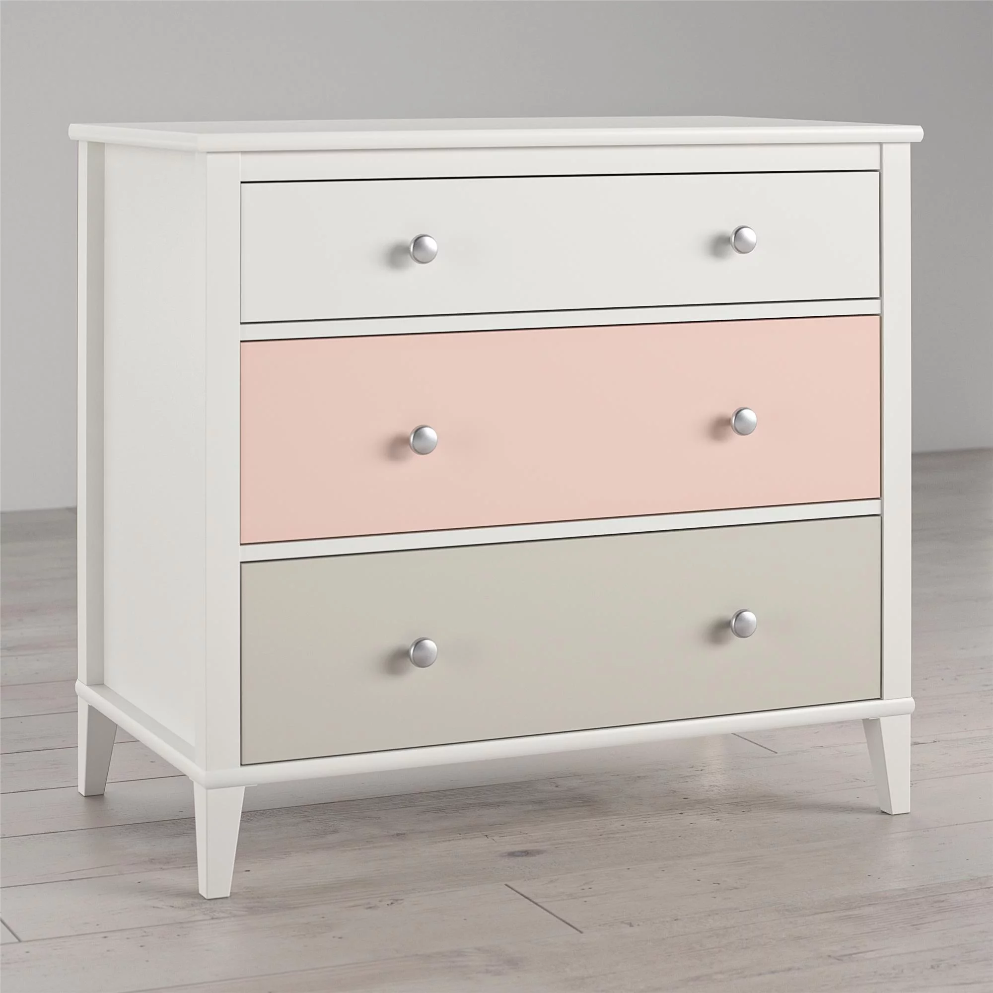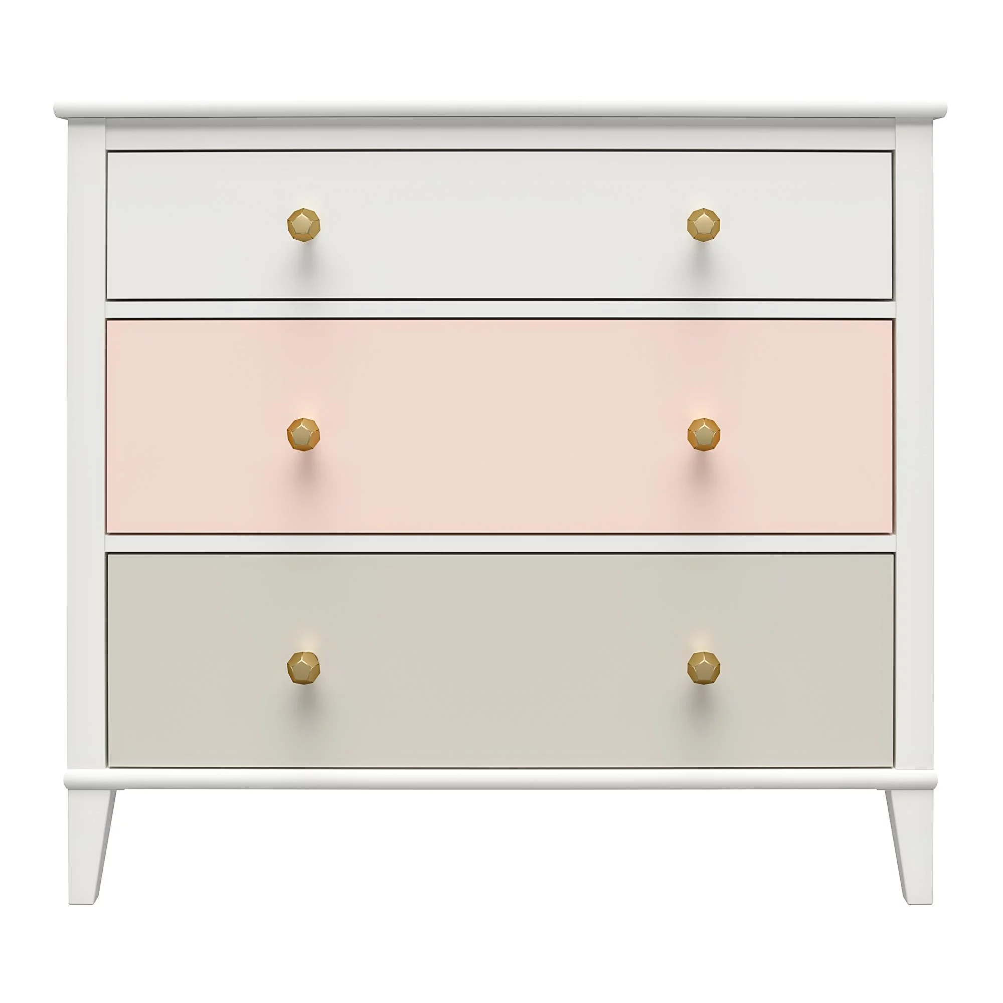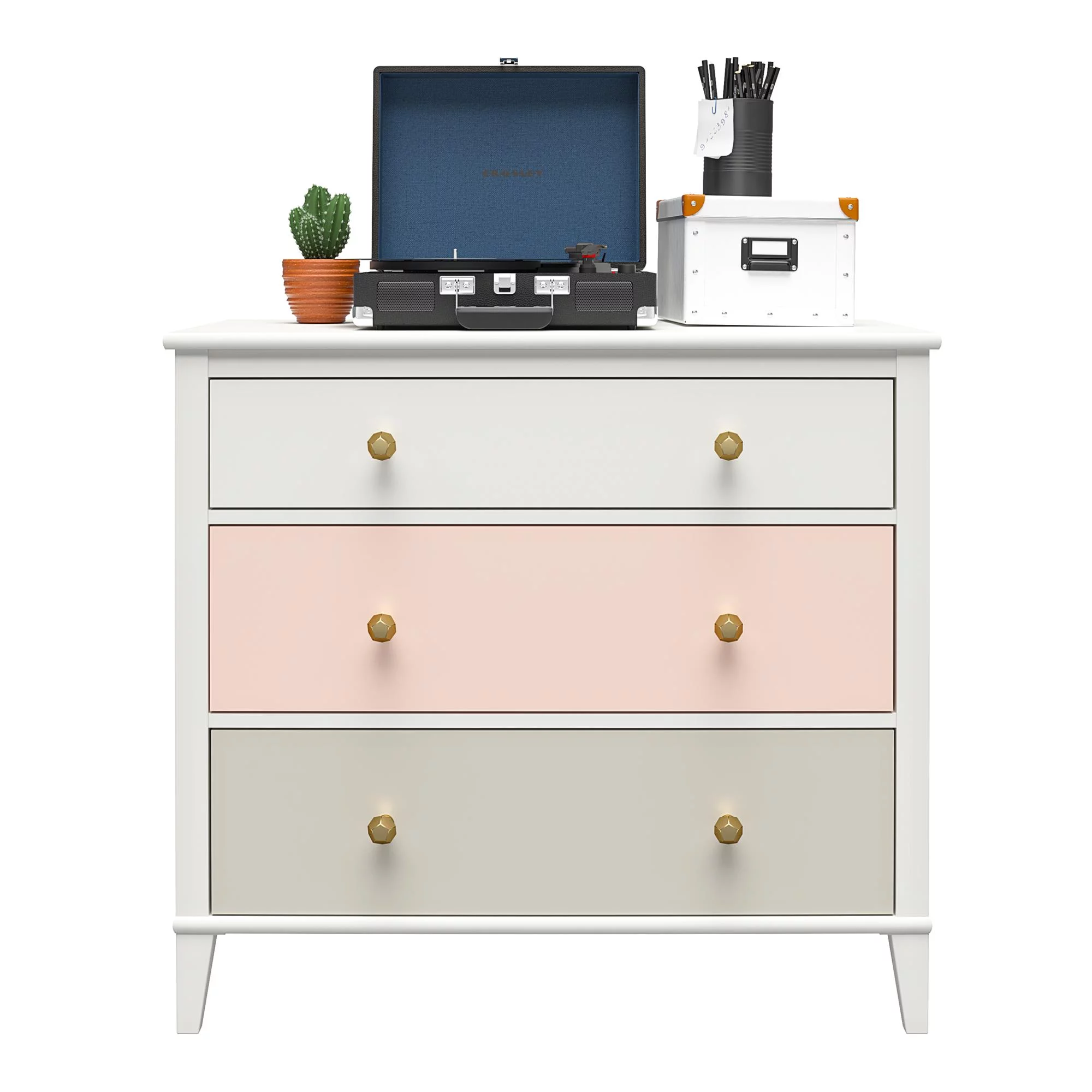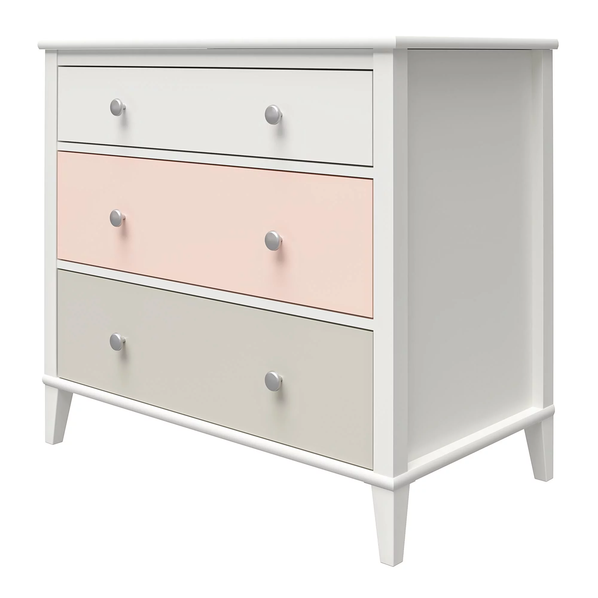 Little Seeds Monarch Hill Poppy White 3 Drawer Dresser, Peach and Taupe Drawers