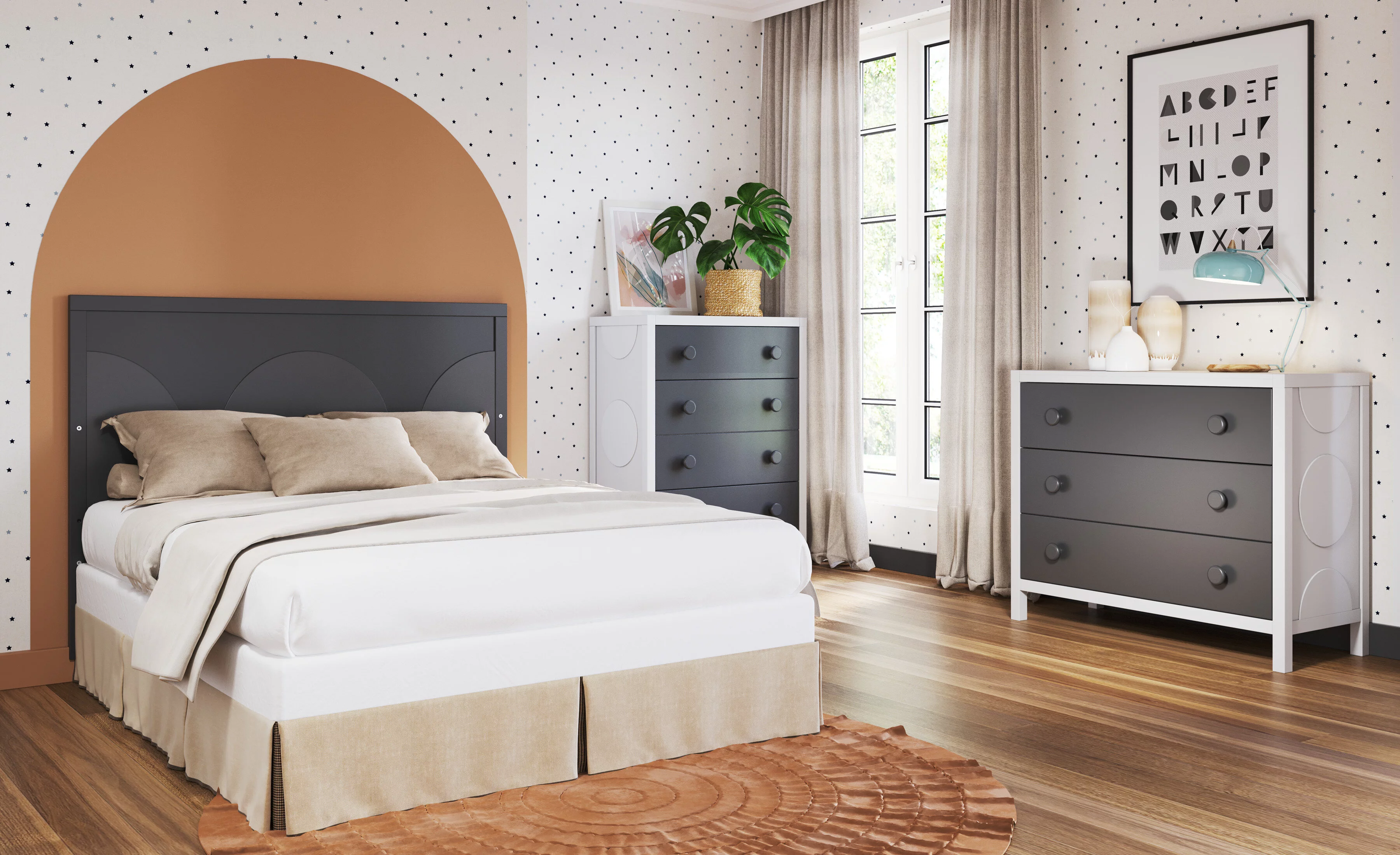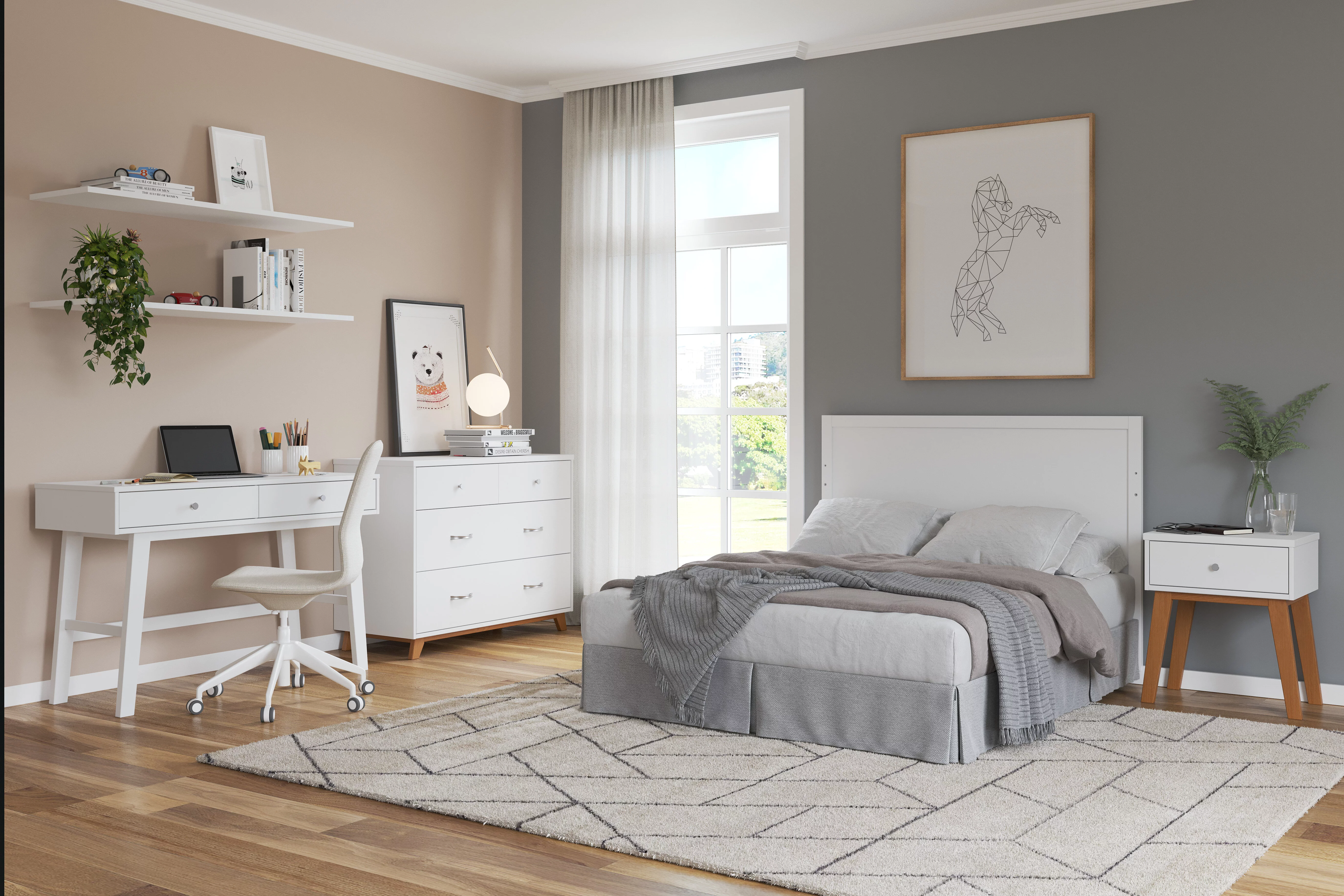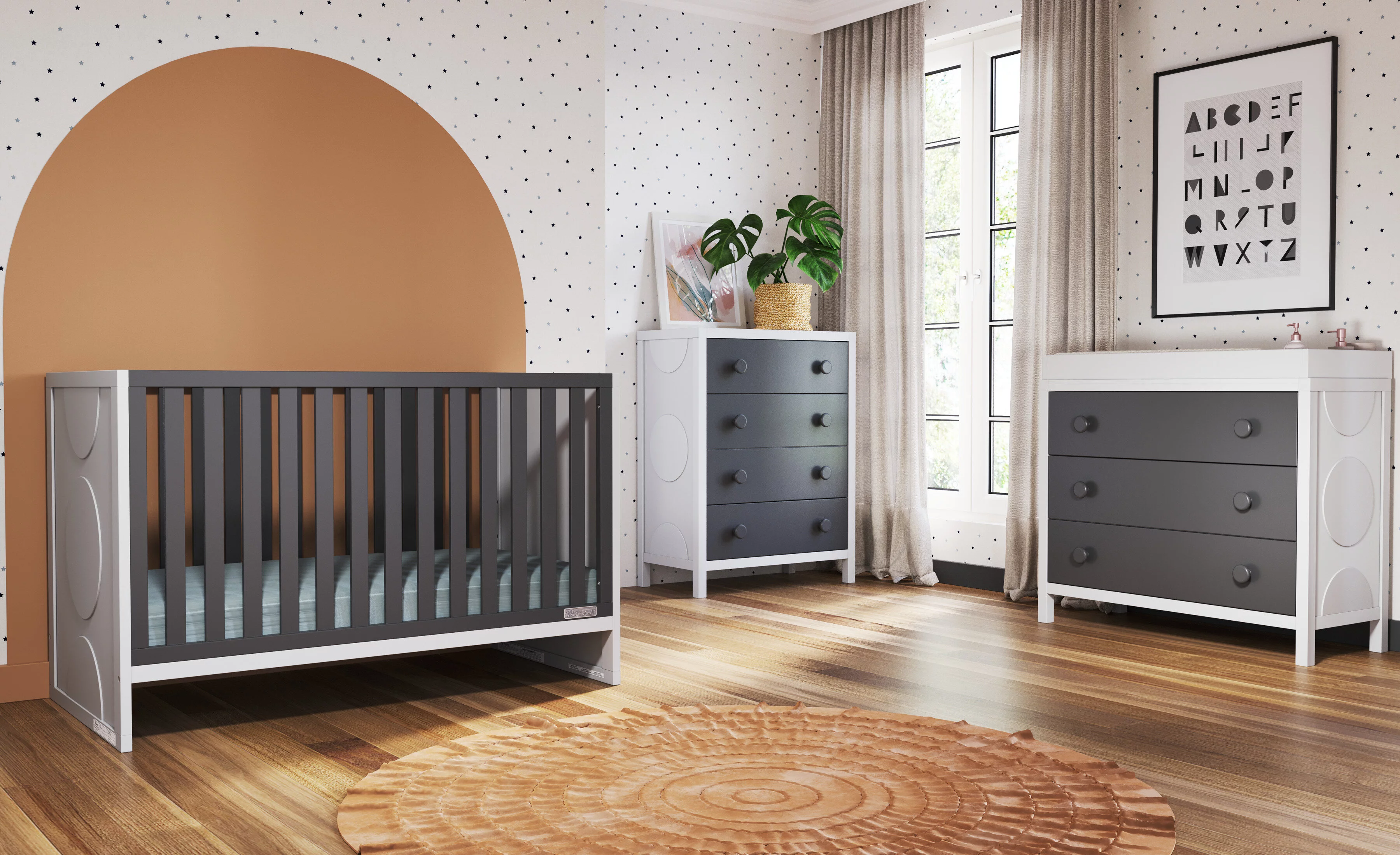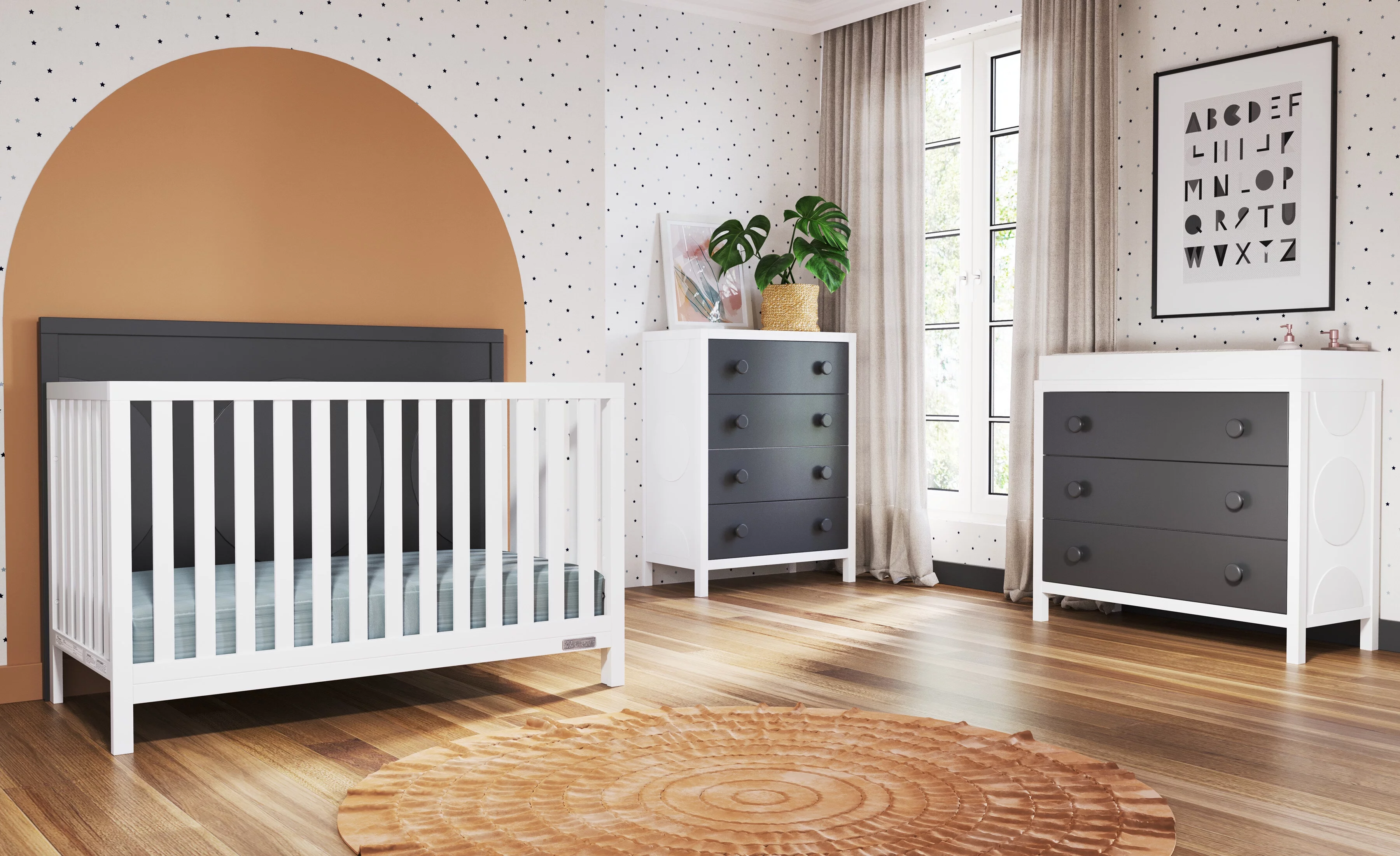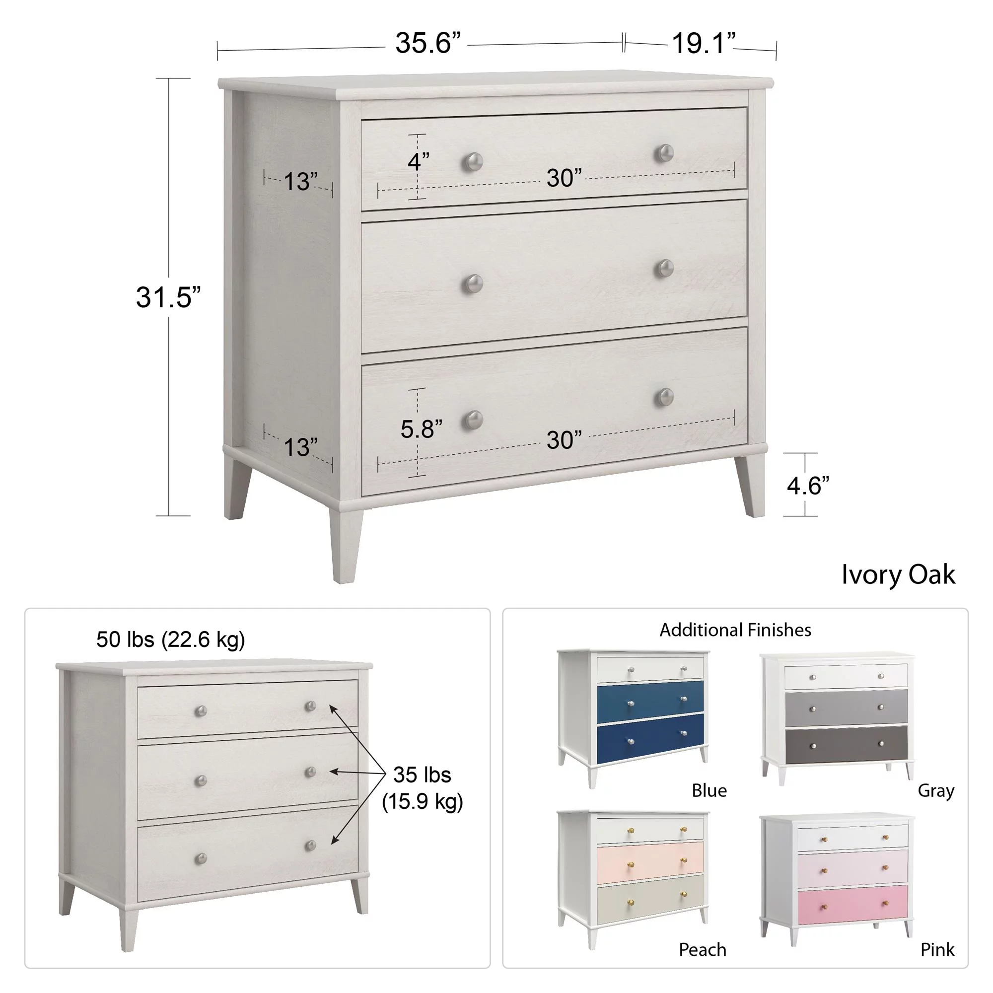Little Seeds Monarch Hill Poppy White 3 Drawer Dresser, Peach and Taupe Drawers