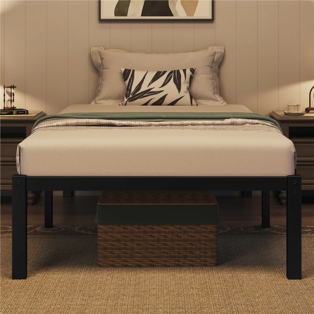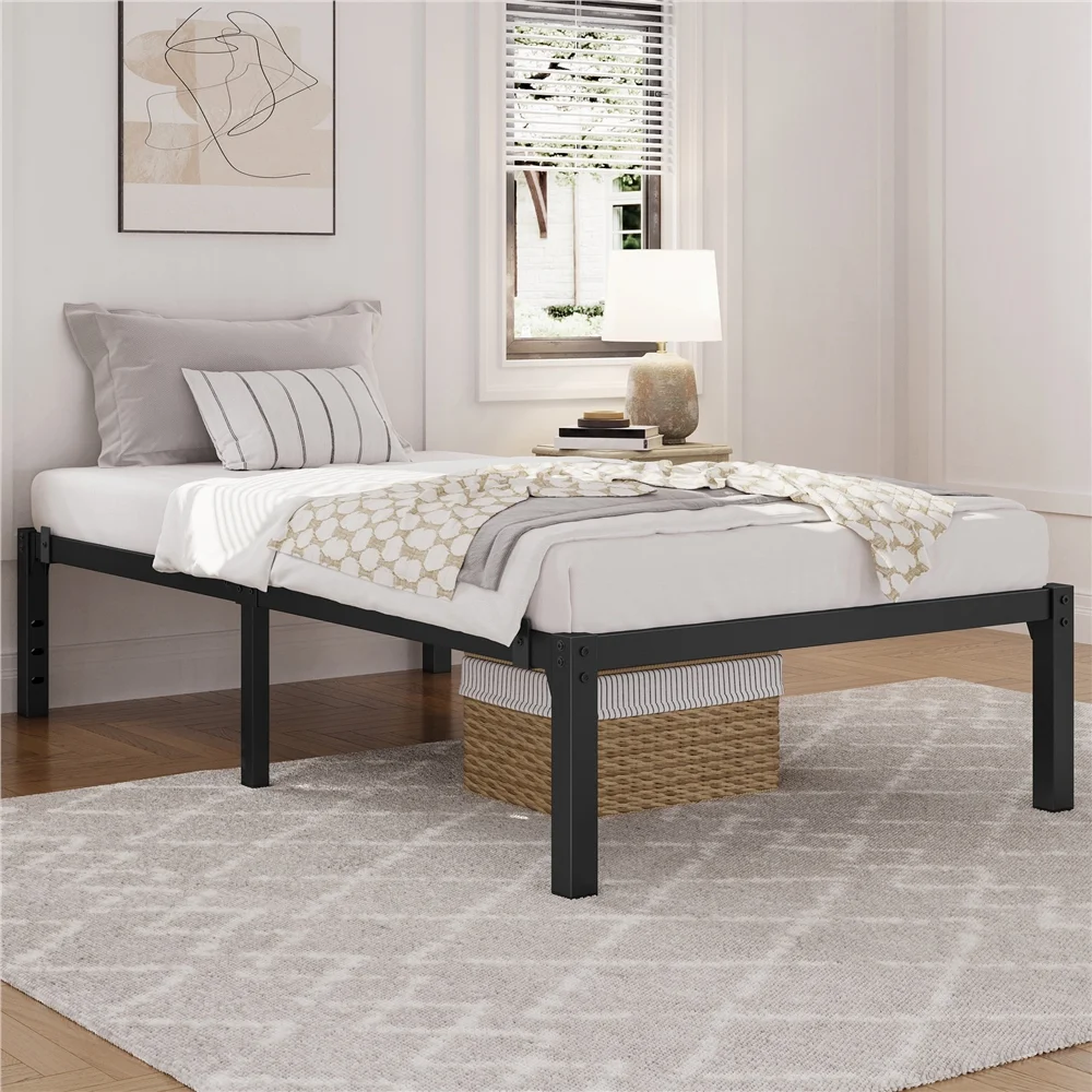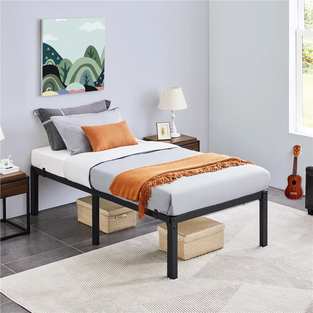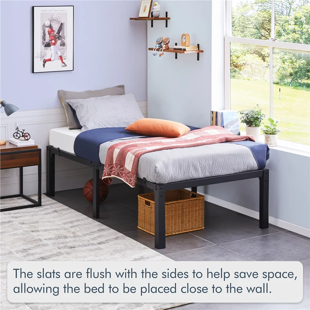 Easyfashion 14Inch Metal Platform Bed Frame with Slat Support,Twin XL,Black
