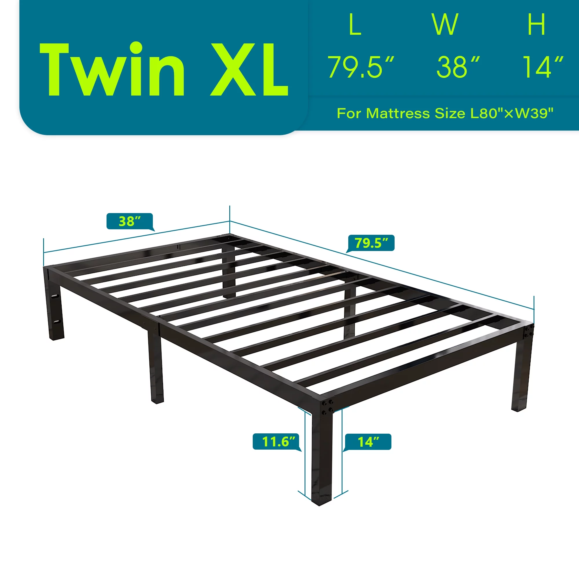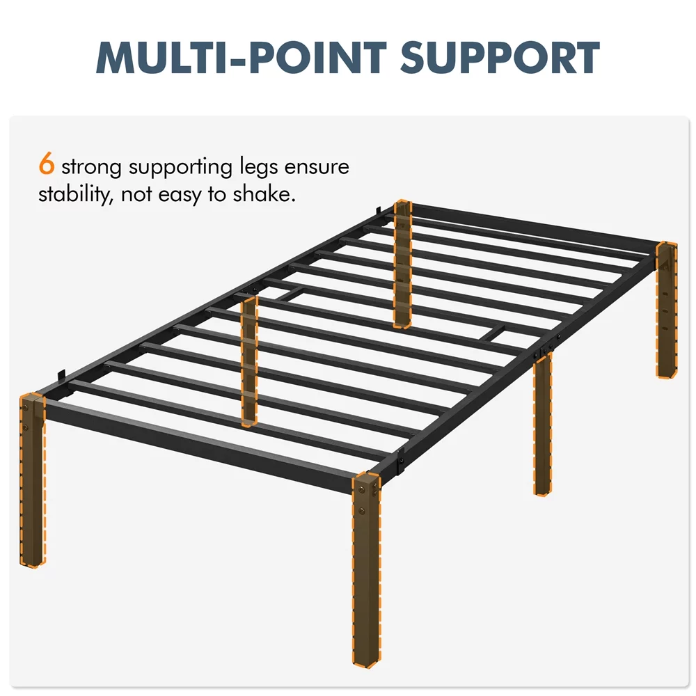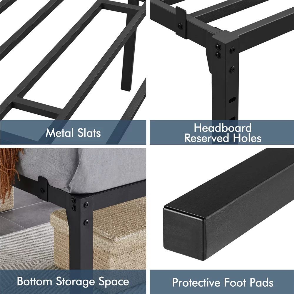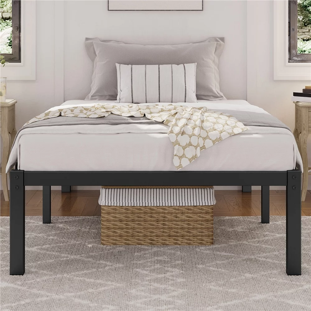 Easyfashion 14Inch Metal Platform Bed Frame with Slat Support,Twin XL,Black