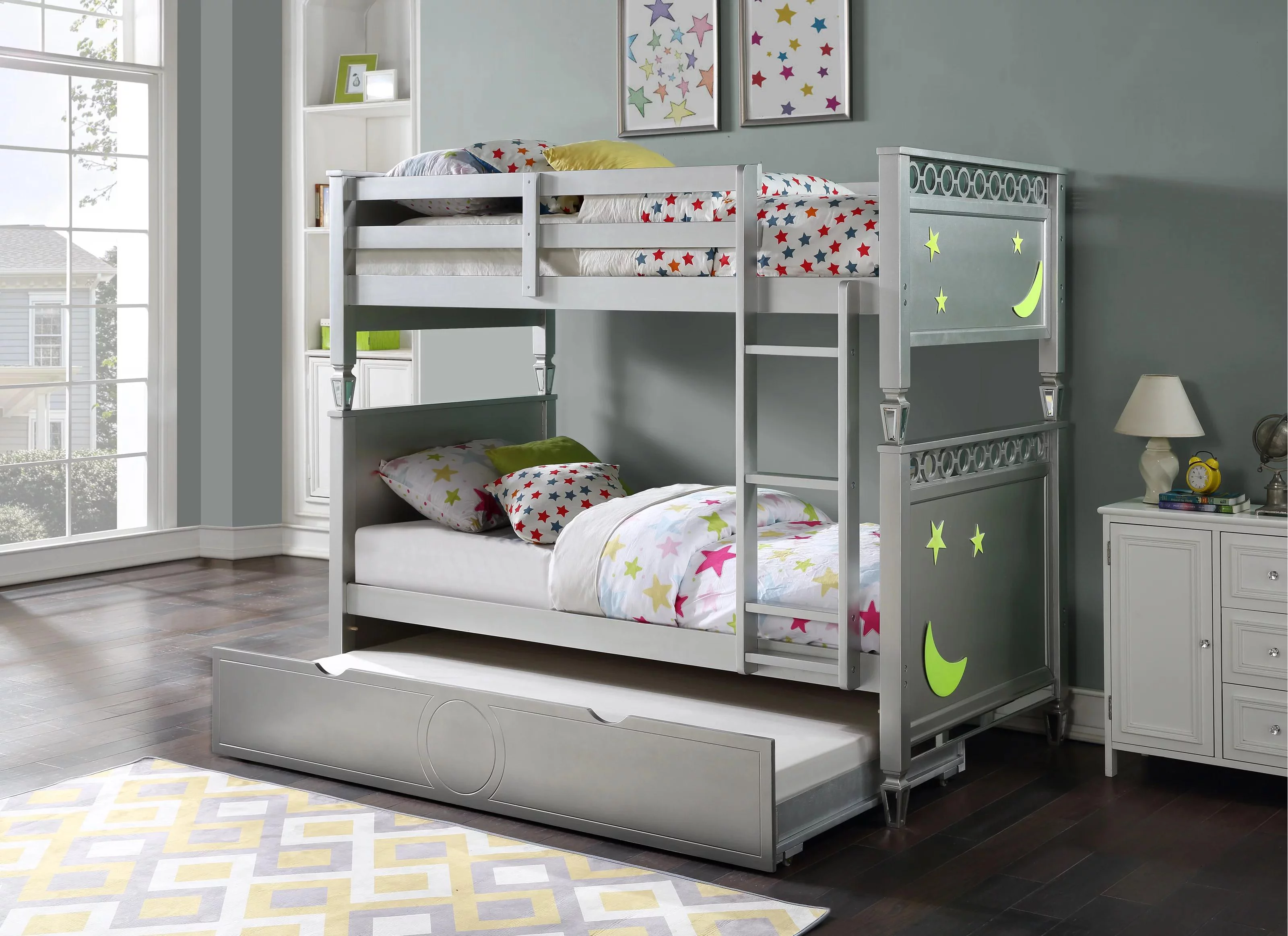 Contemporary White Twin Bunk Bed + Trundle by Acme Cargo 37885-2pcs