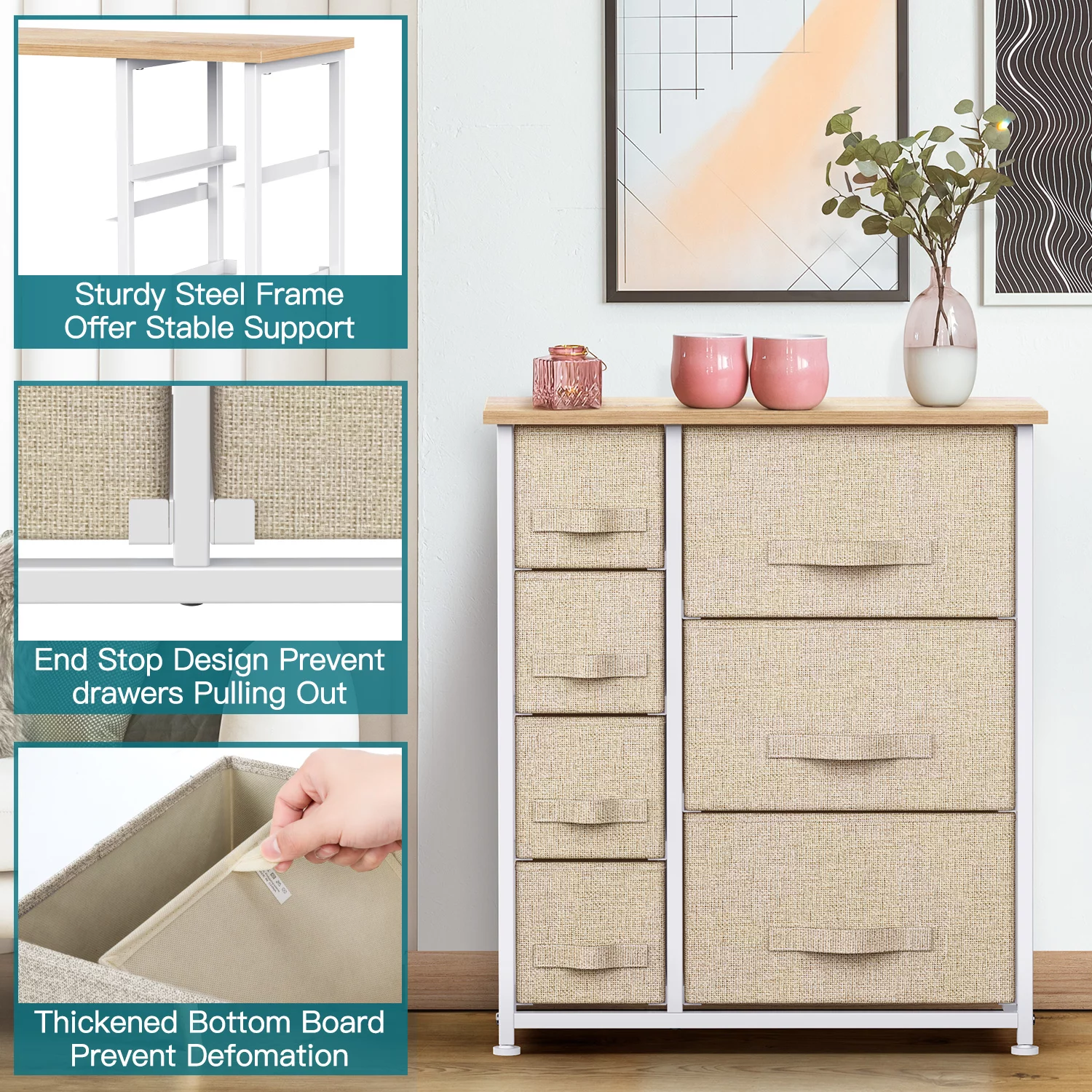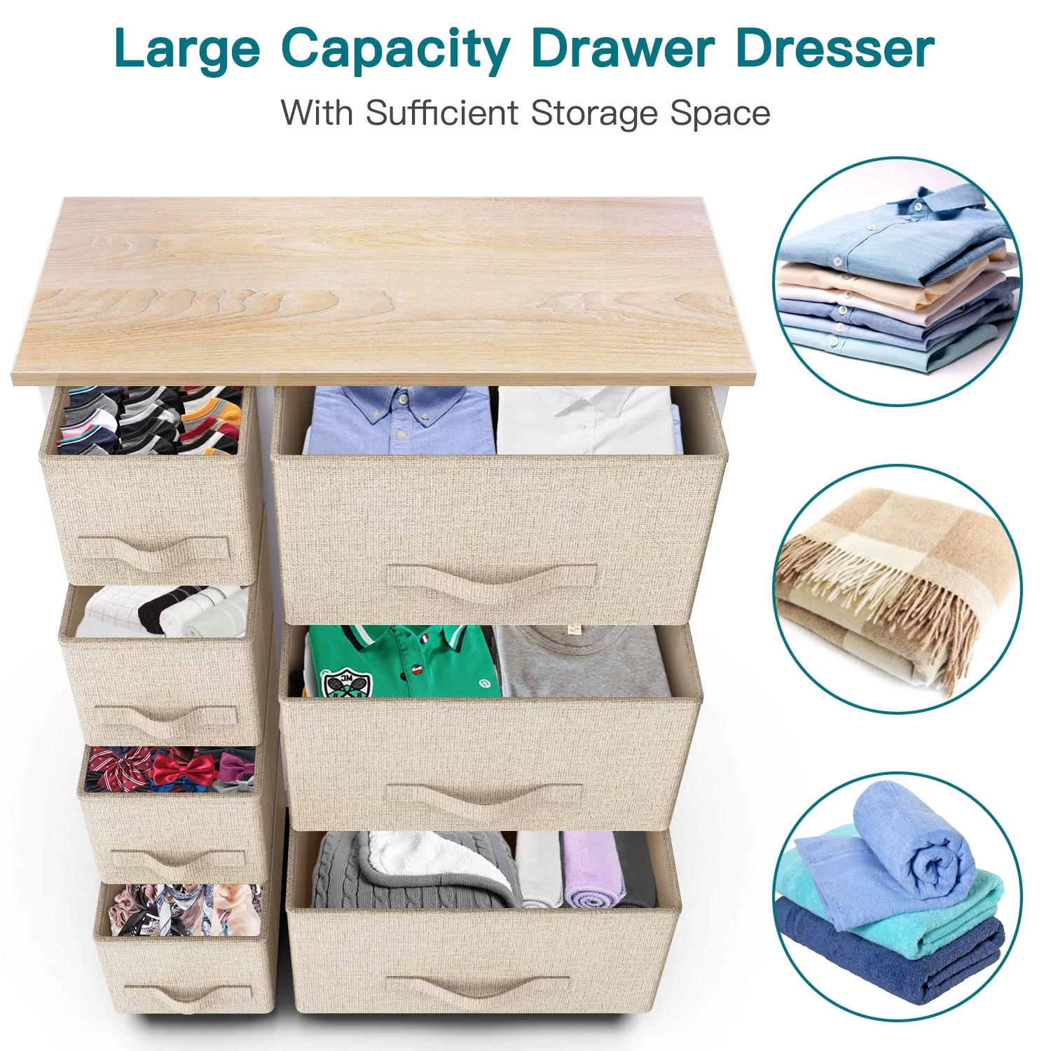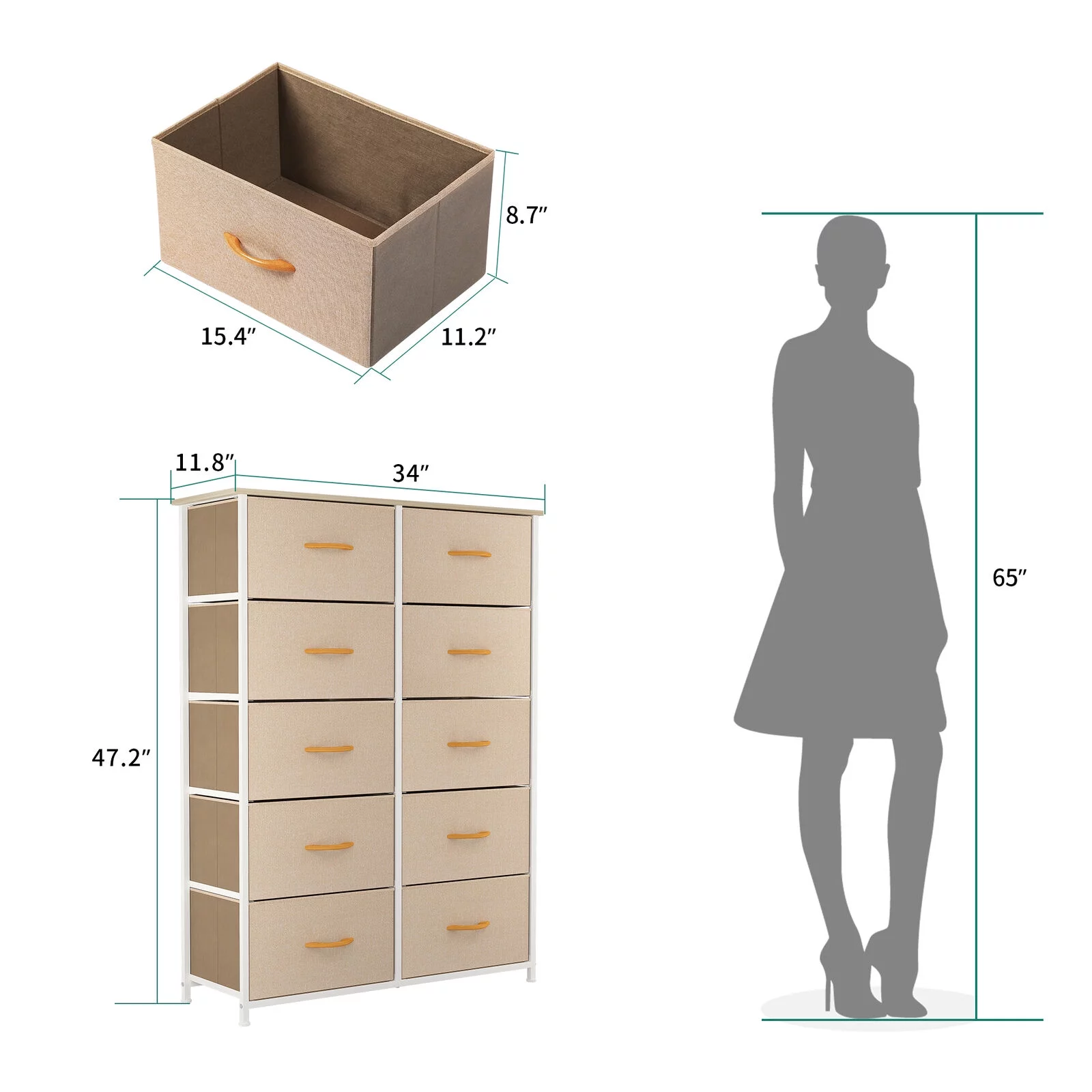 Dextrus 10 Drawers Dresser Fabric Storage Tower Cabinet Bin Storage Organizer for Closets Bedrooms Kids Room, Beige