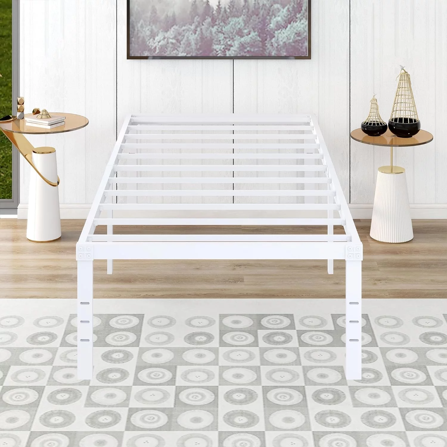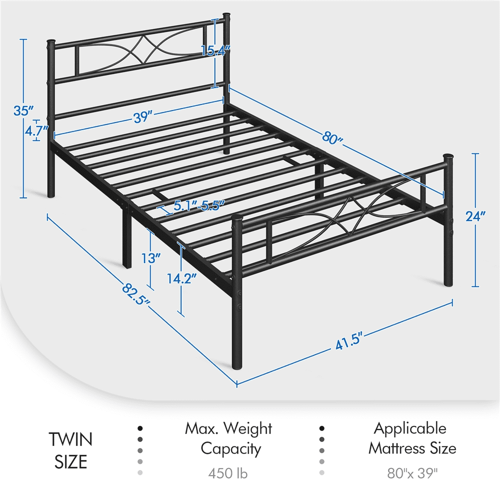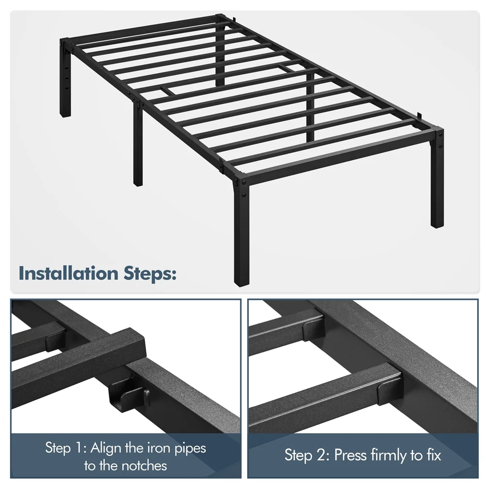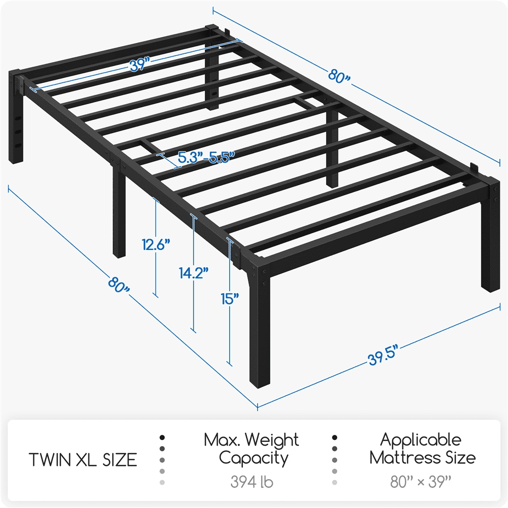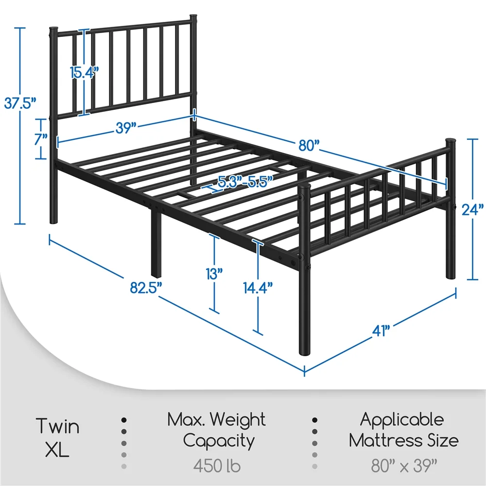 Smile Mart Jasper Twin XL Metal Platform Bed Frame with Heavy Duty Steel Slat Support, Black