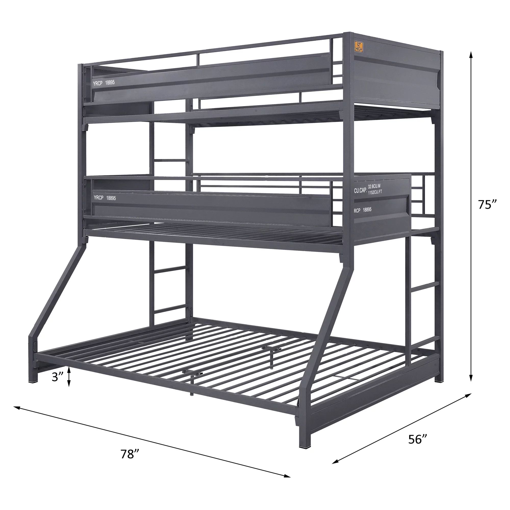 ACME Furniture 78 x 56 x 65 in. Cargo Bunk Bed, Gunmetal - Full Size