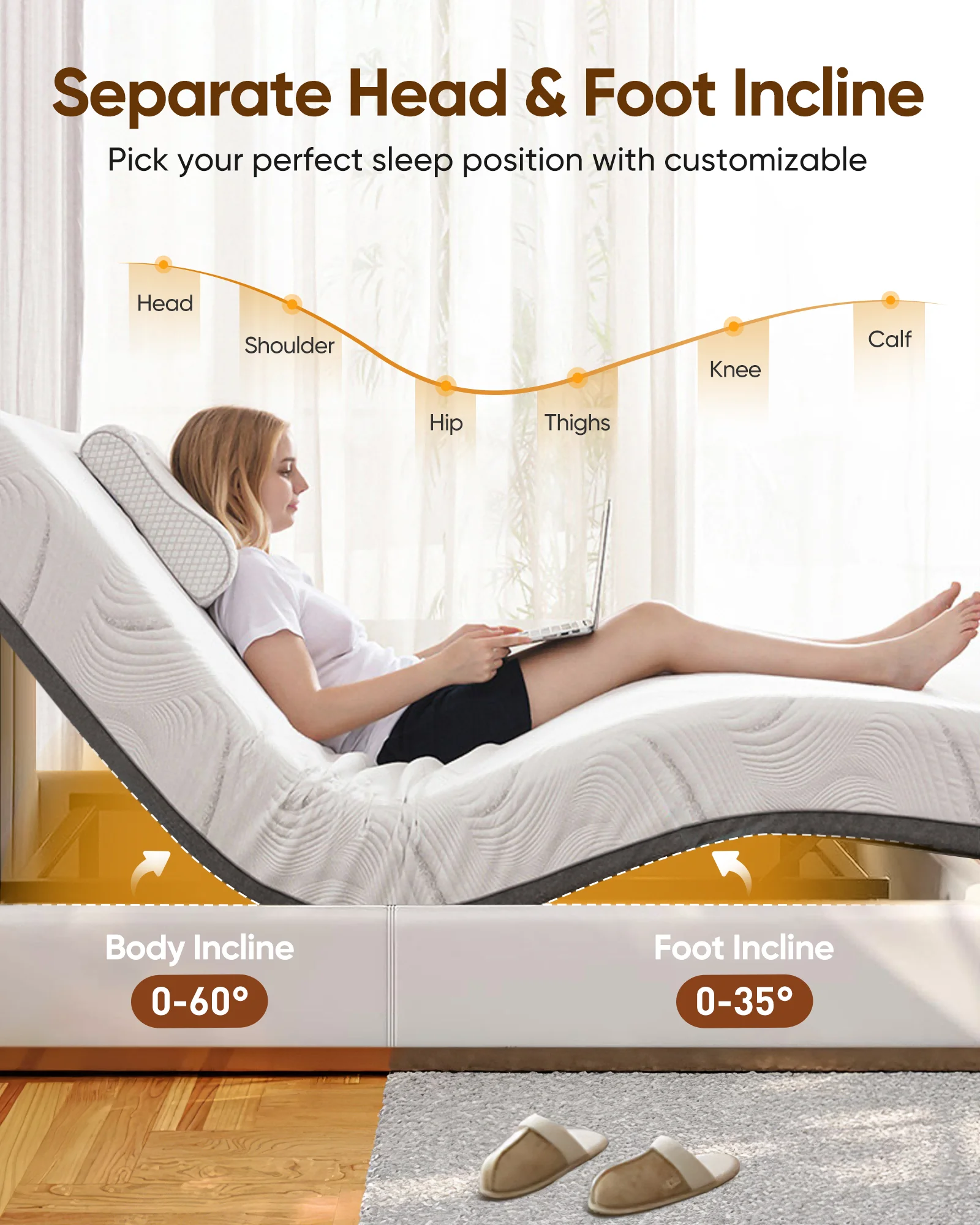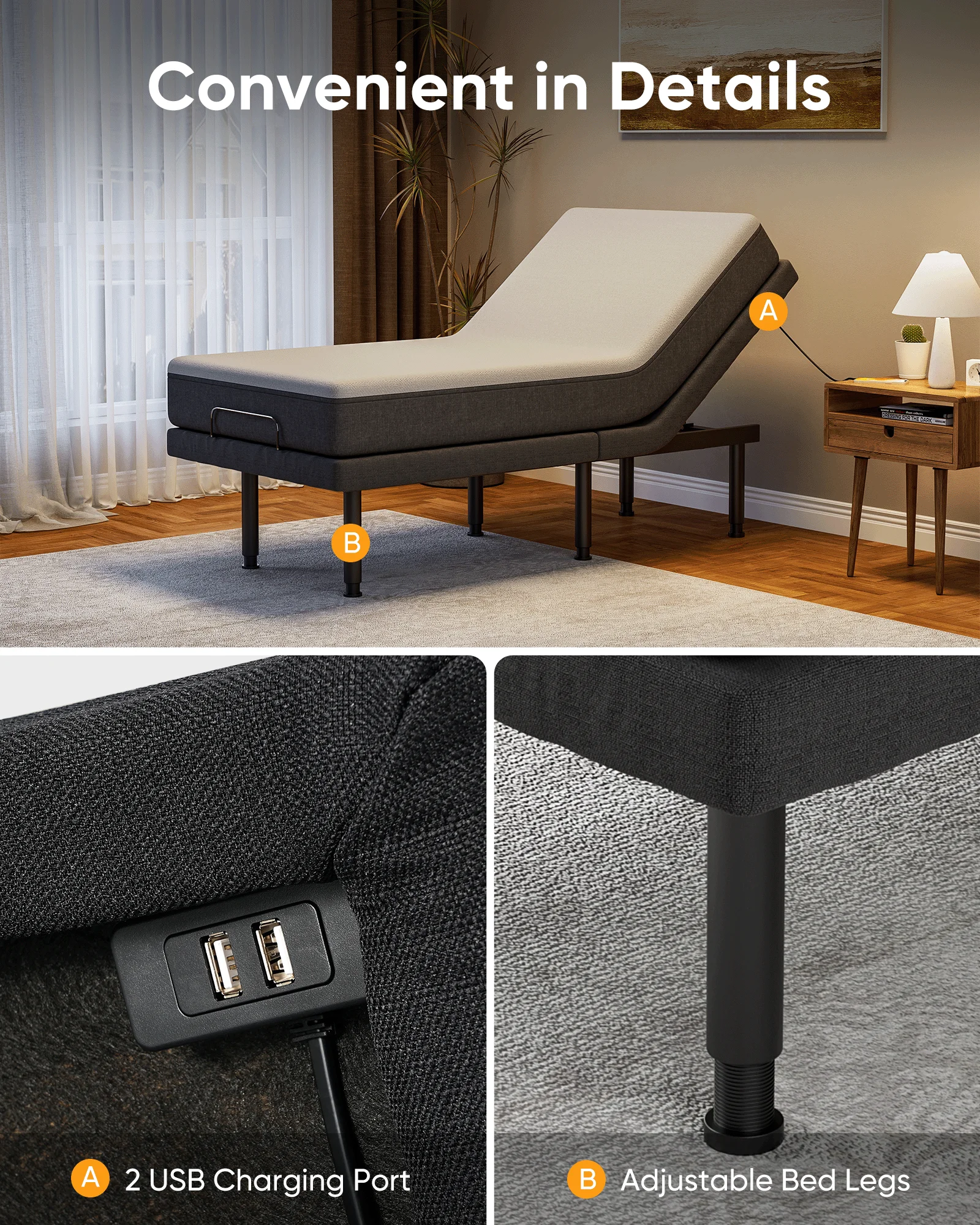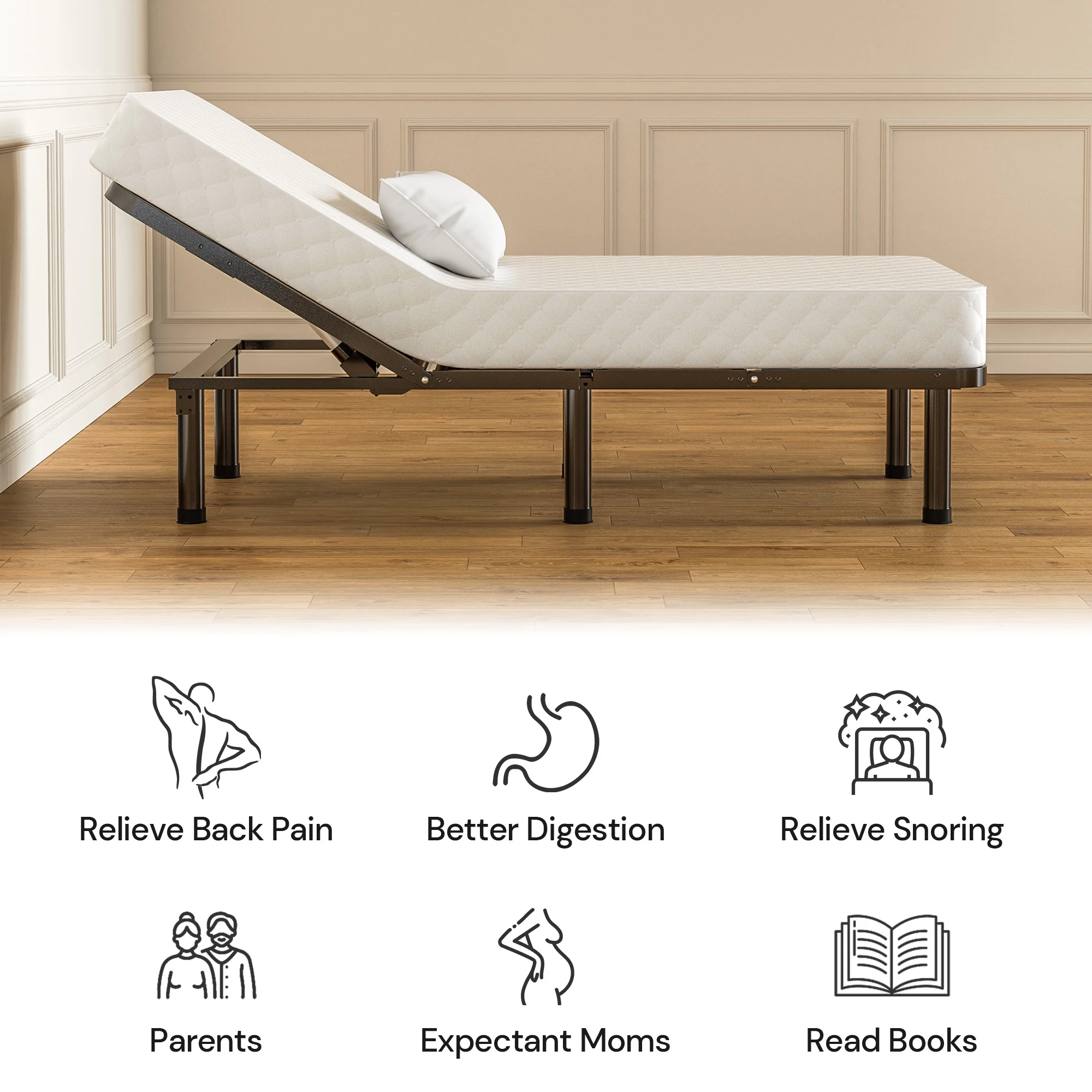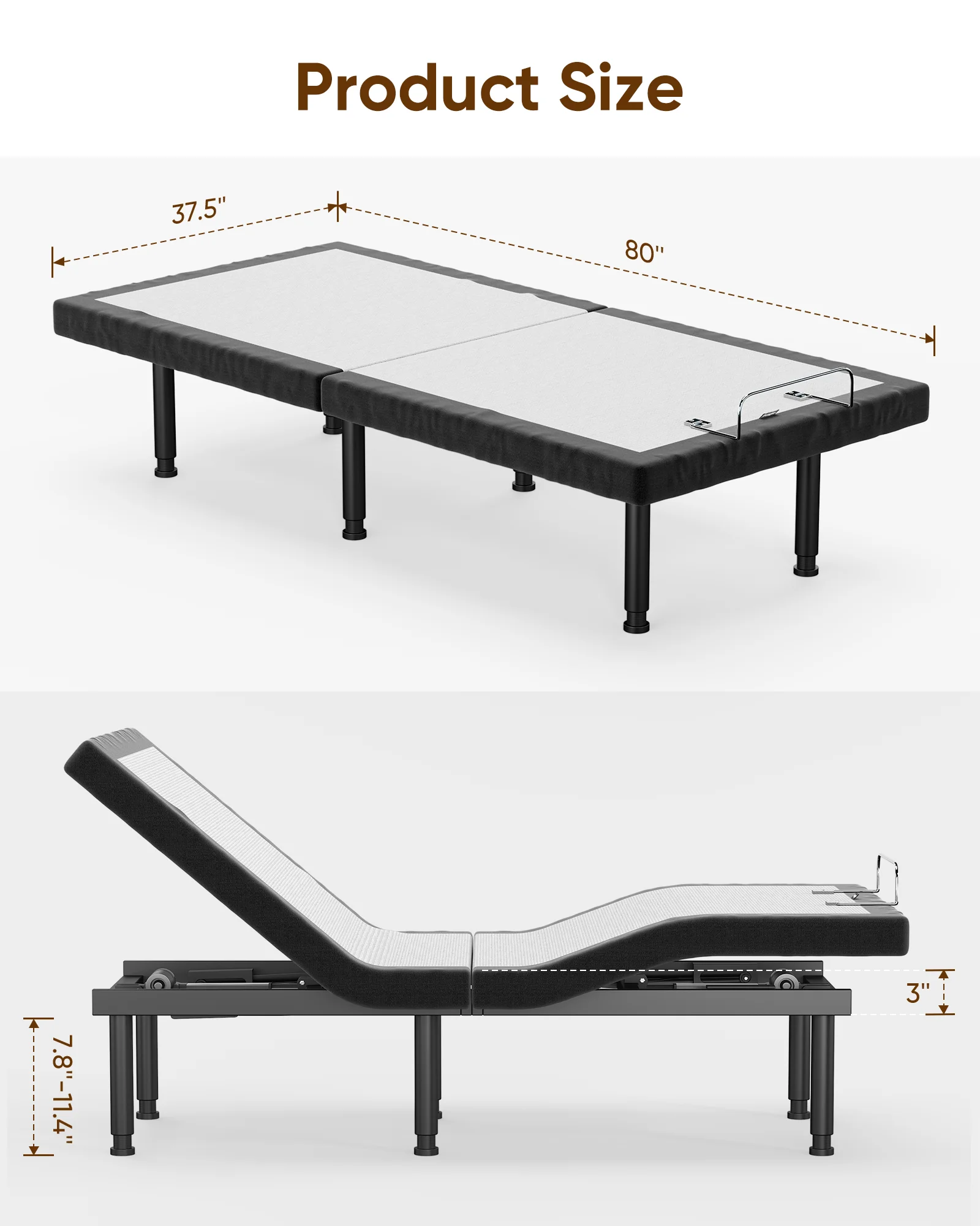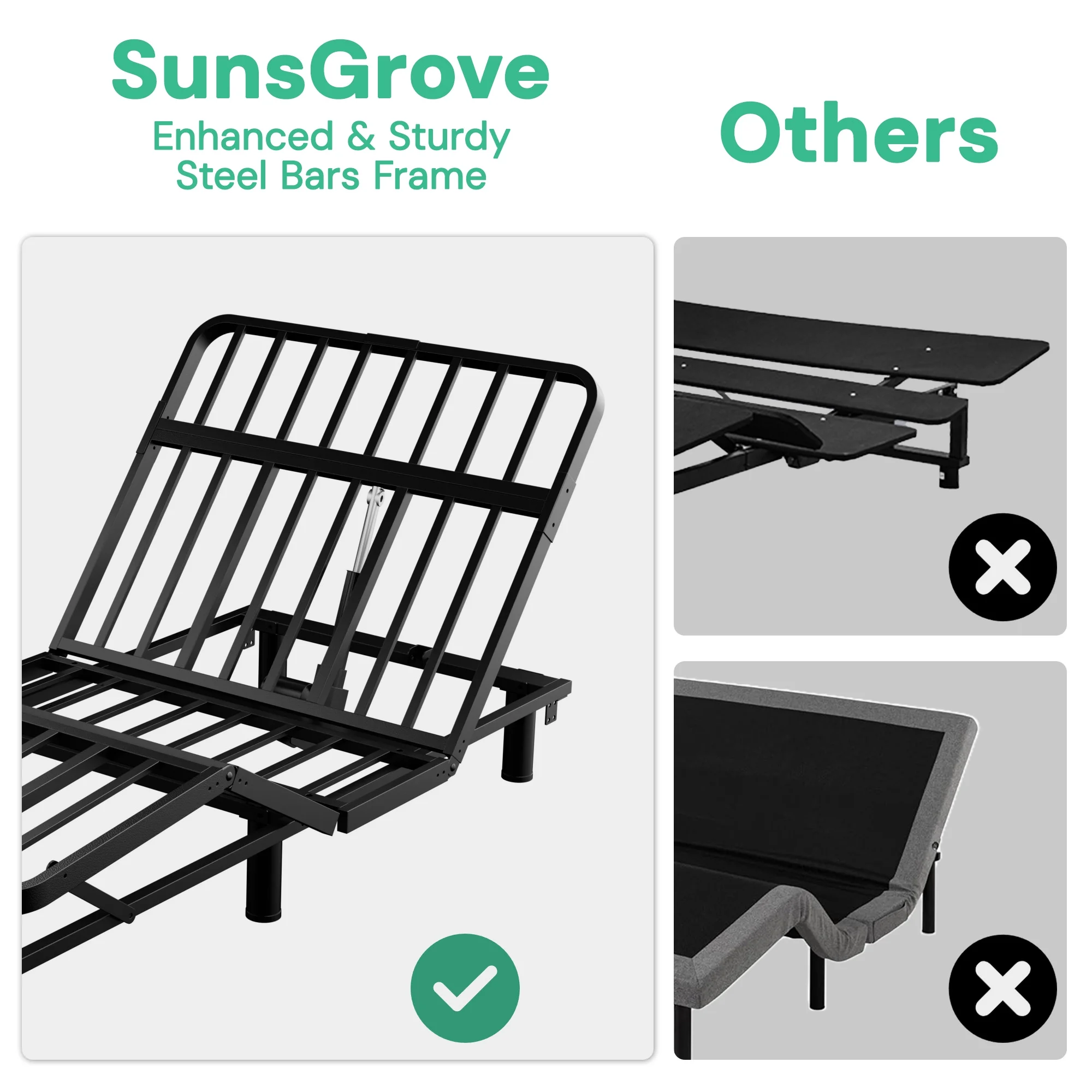 SunsGrove Motorized Metal Twin XL Adjustable Bed Base with Head and Foot Incline, Wired Remote - Quick and Easy Assembly